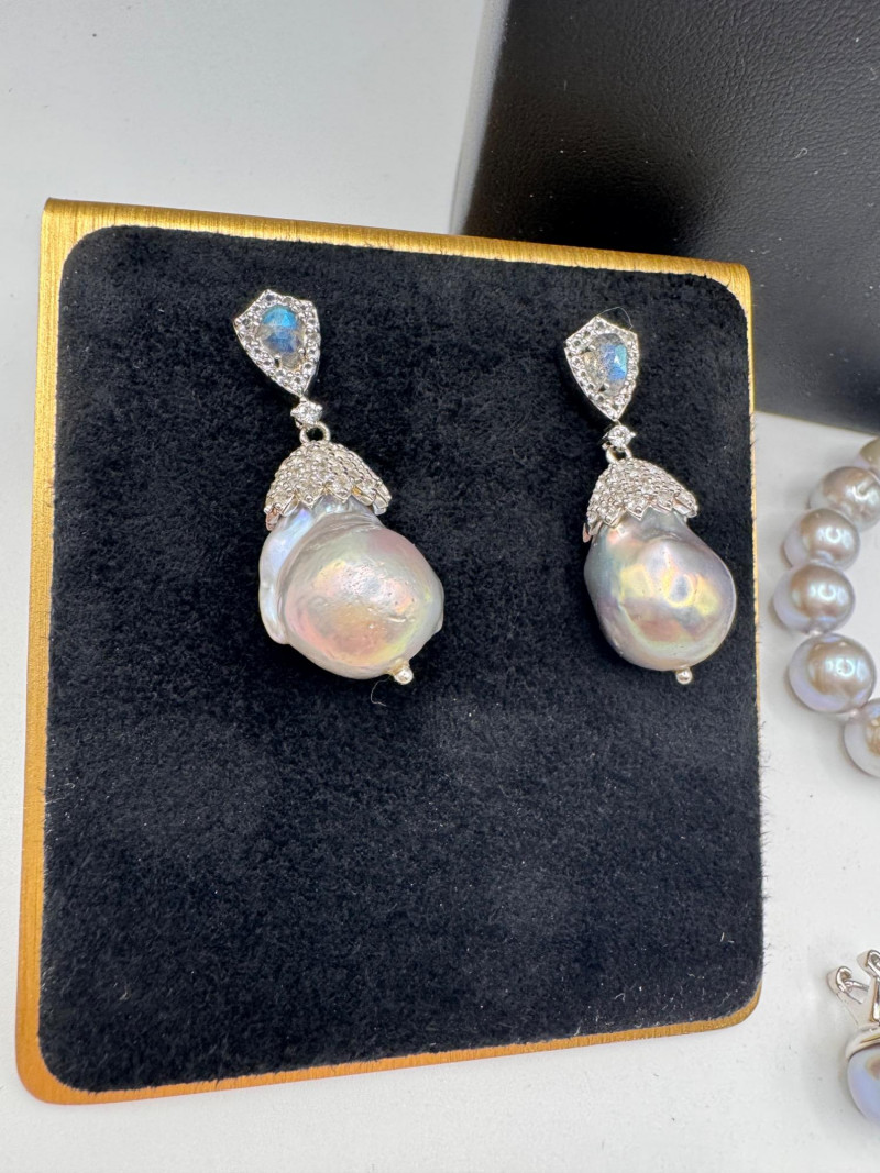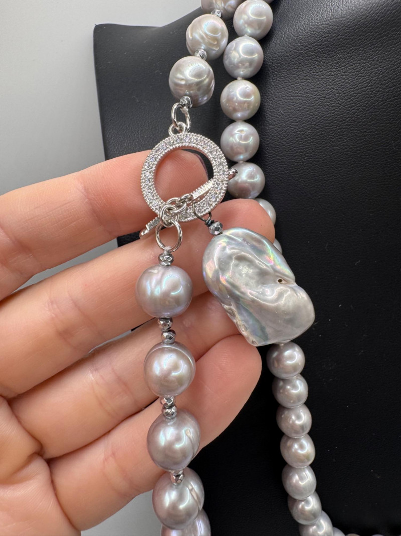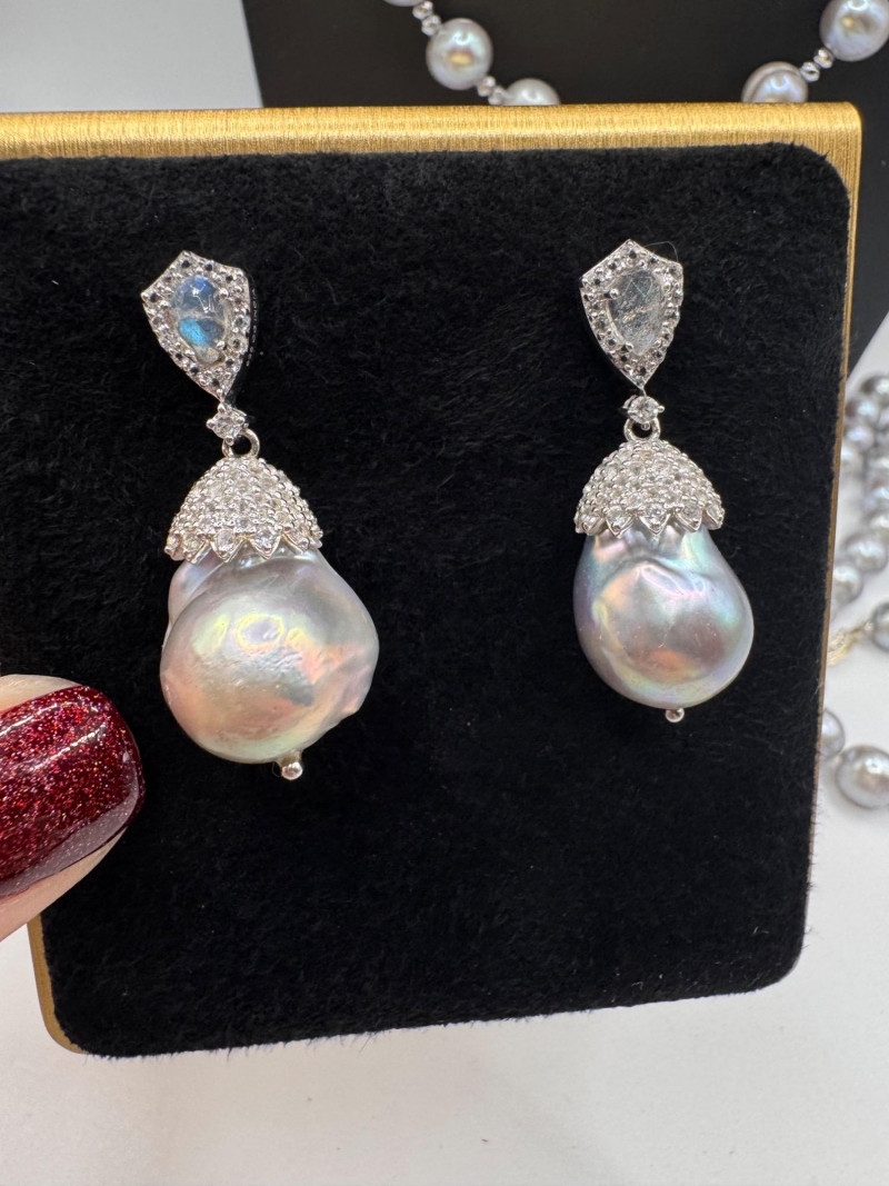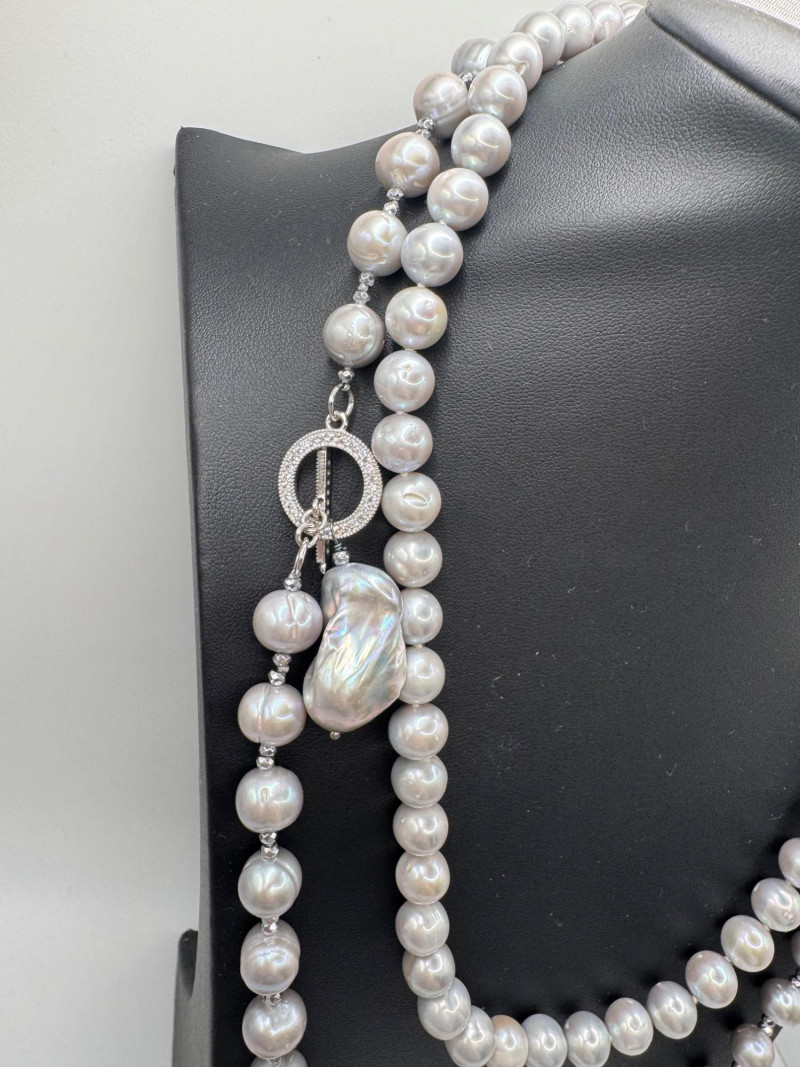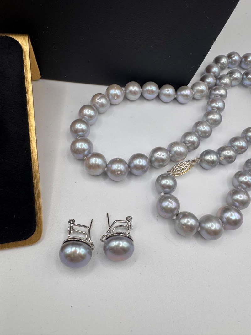 Silver Freshwater Pearl Jewelry Set – Necklaces, Earrings & Pendant. JTV pieces with tags: PWP324B-22 – 9–10mm silver cultured freshwater pearls, 22" sterling silver strand CPL967D – 11–12mm silver cultured freshwater pearl earrings, rhodium over sterling, made in Canada One long strand with silver-gray round pearls and decorative clasp Pair of dangle earrings with large baroque pearls and crystal accents Pendant features a large baroque pearl with crystal-set bail General Disclaimer:All items are sold as-is. Jewelry, metals, gemstones, and other minerals have not been tested unless specifically noted. No guarantees are made regarding metal content, gemstone type, or origin. Refunds will not be issued based on identification, classification, or perceived quality.