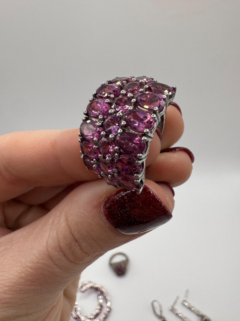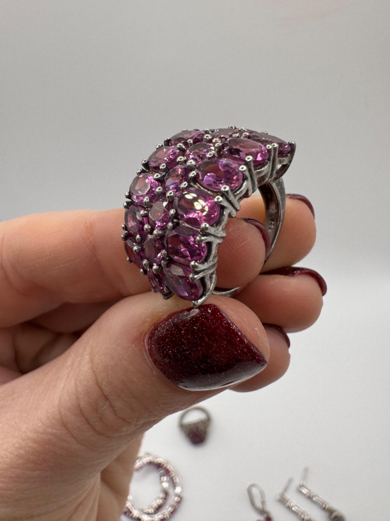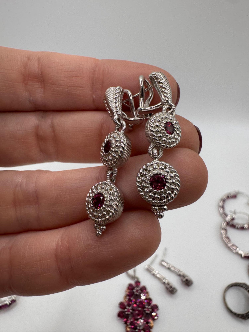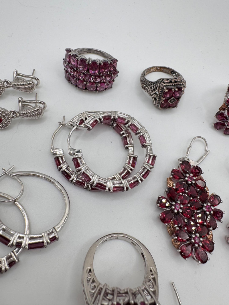 Lot # 41 - Sterling Garnet & CZ Jewelry Collection – Rings & Earrings, 107.56g
