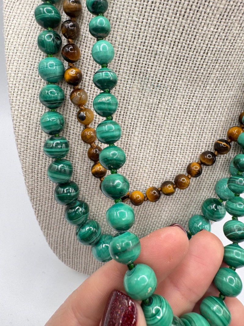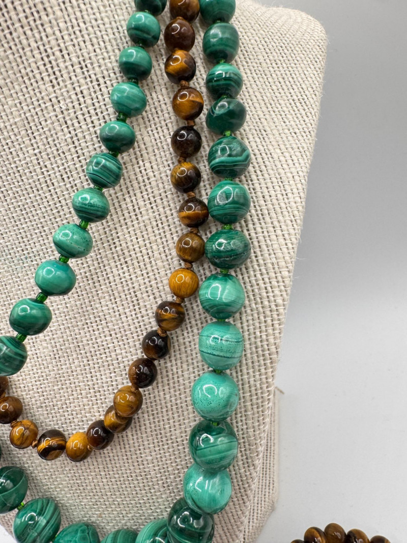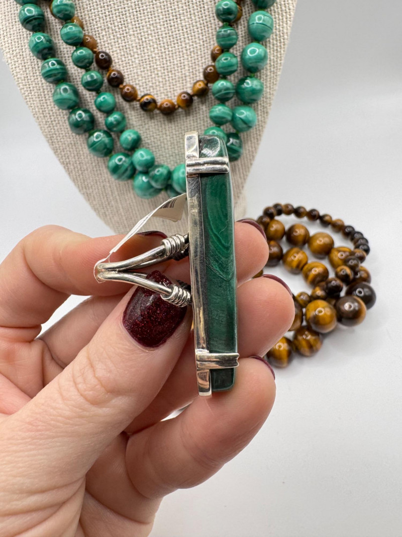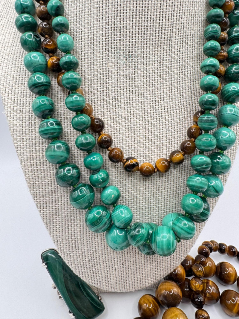 Malachite & Tiger’s Eye Necklaces w/ Sterling Pendant & Ring + General Disclaimer:All items are sold as-is. Jewelry, metals, gemstones, and other minerals have not been tested unless specifically noted. No guarantees are made regarding metal content, gemstone type, or origin. Refunds will not be issued based on identification, classification, or perceived quality.