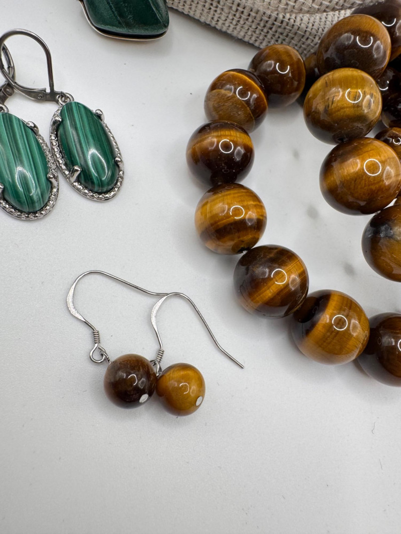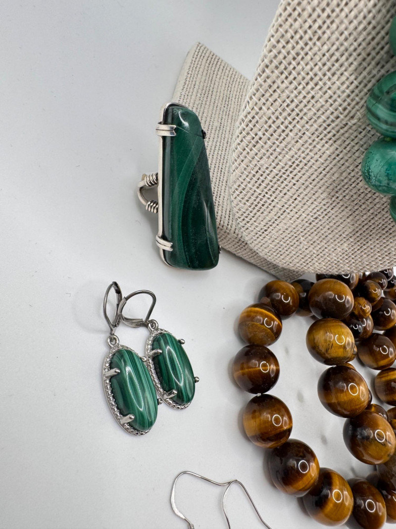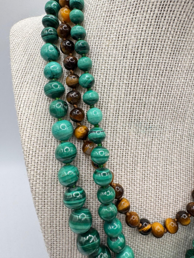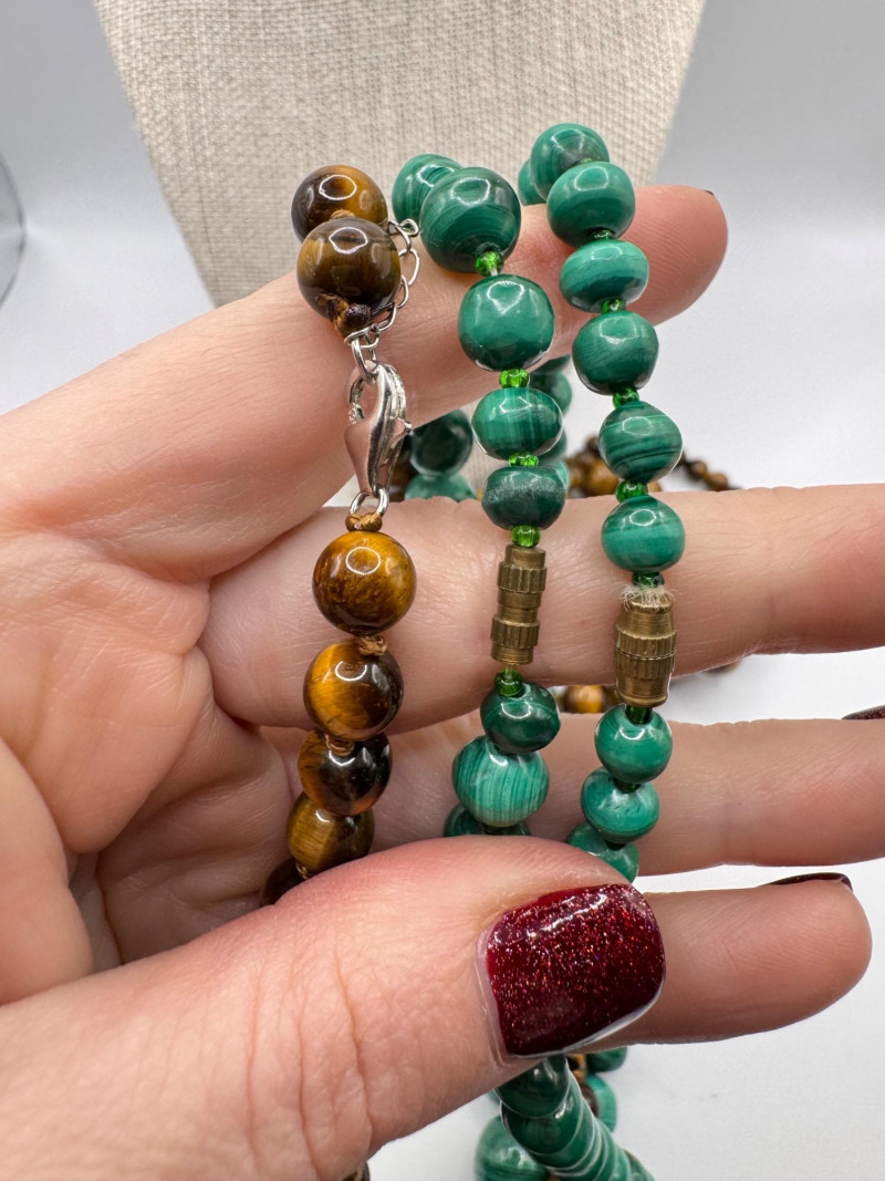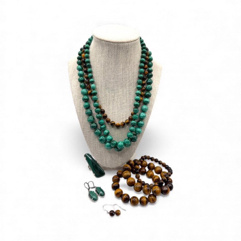 Malachite & Tiger’s Eye Necklaces w/ Sterling Pendant & Ring + General Disclaimer:All items are sold as-is. Jewelry, metals, gemstones, and other minerals have not been tested unless specifically noted. No guarantees are made regarding metal content, gemstone type, or origin. Refunds will not be issued based on identification, classification, or perceived quality.