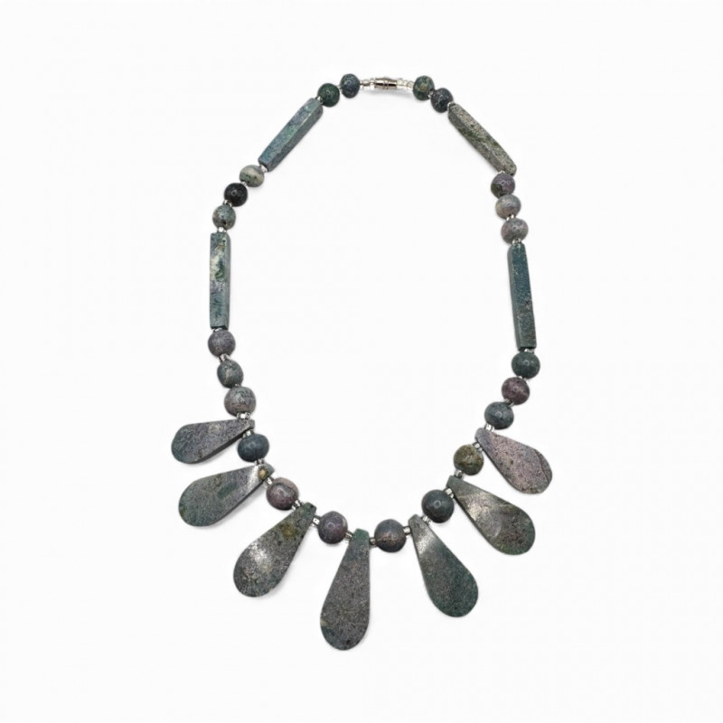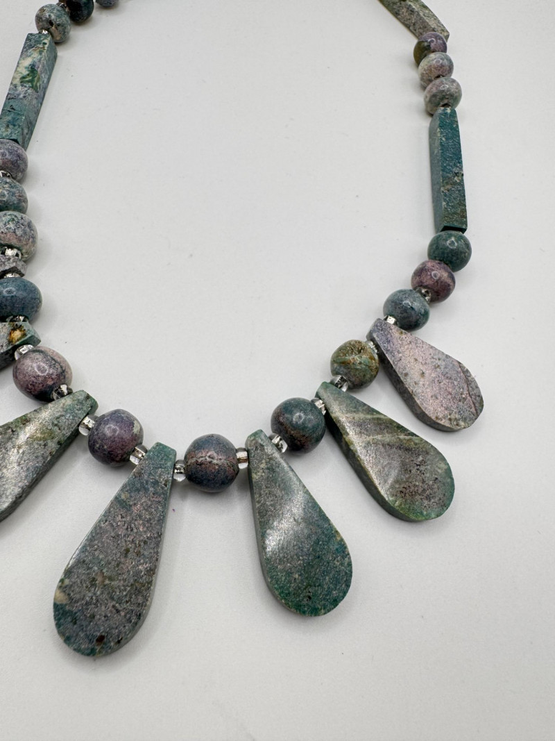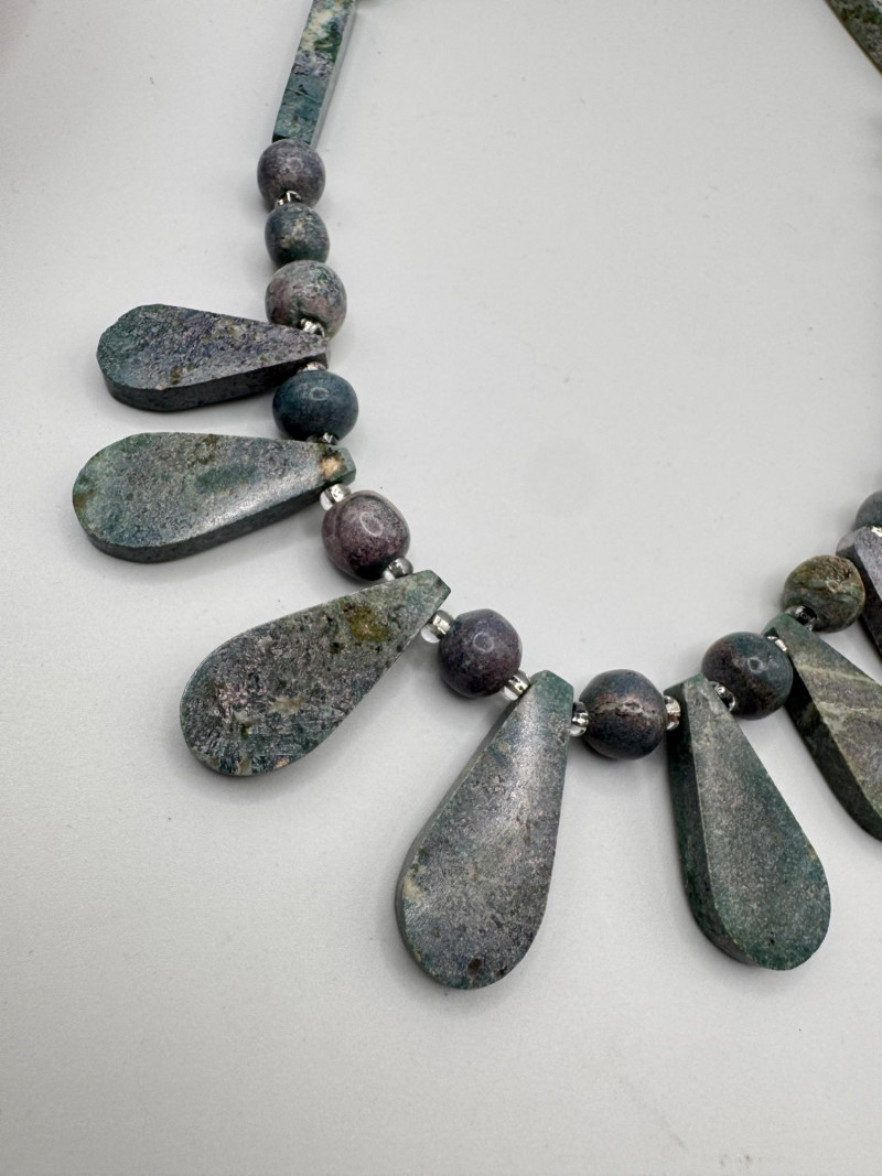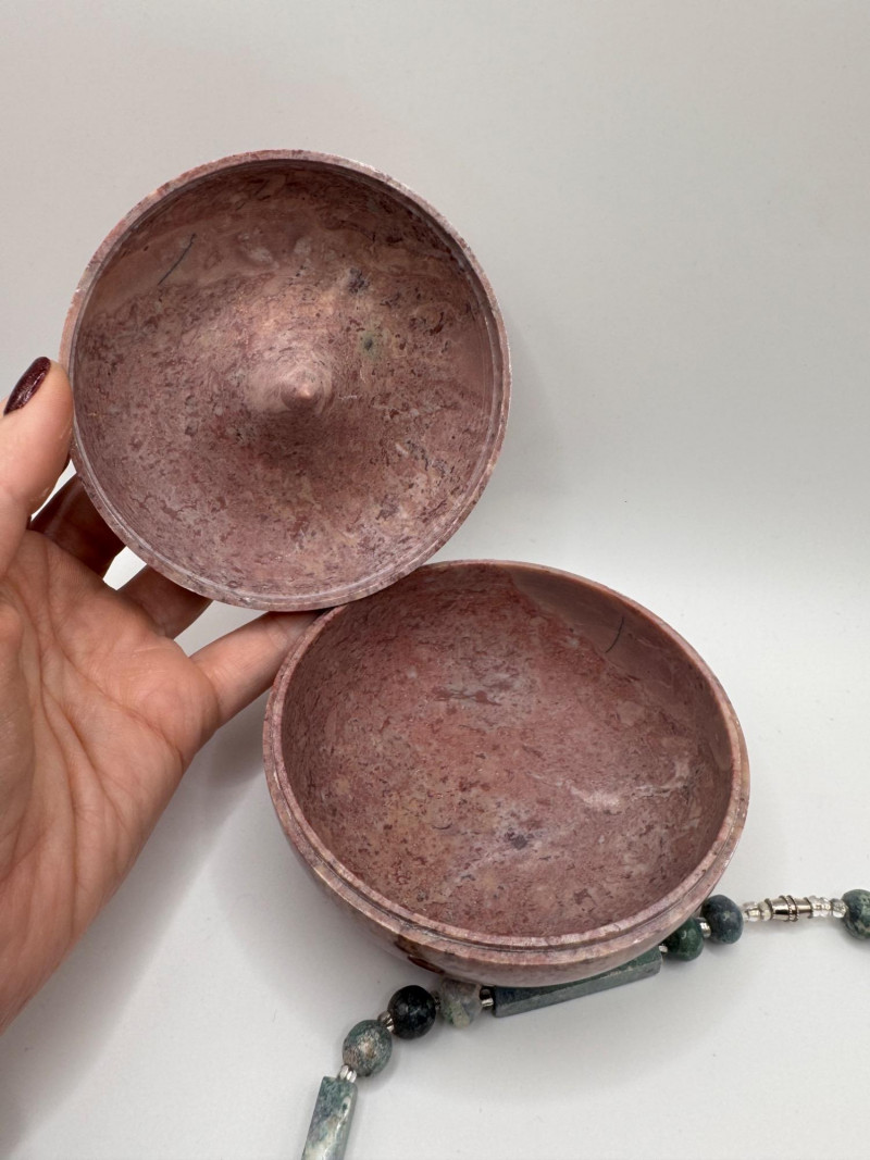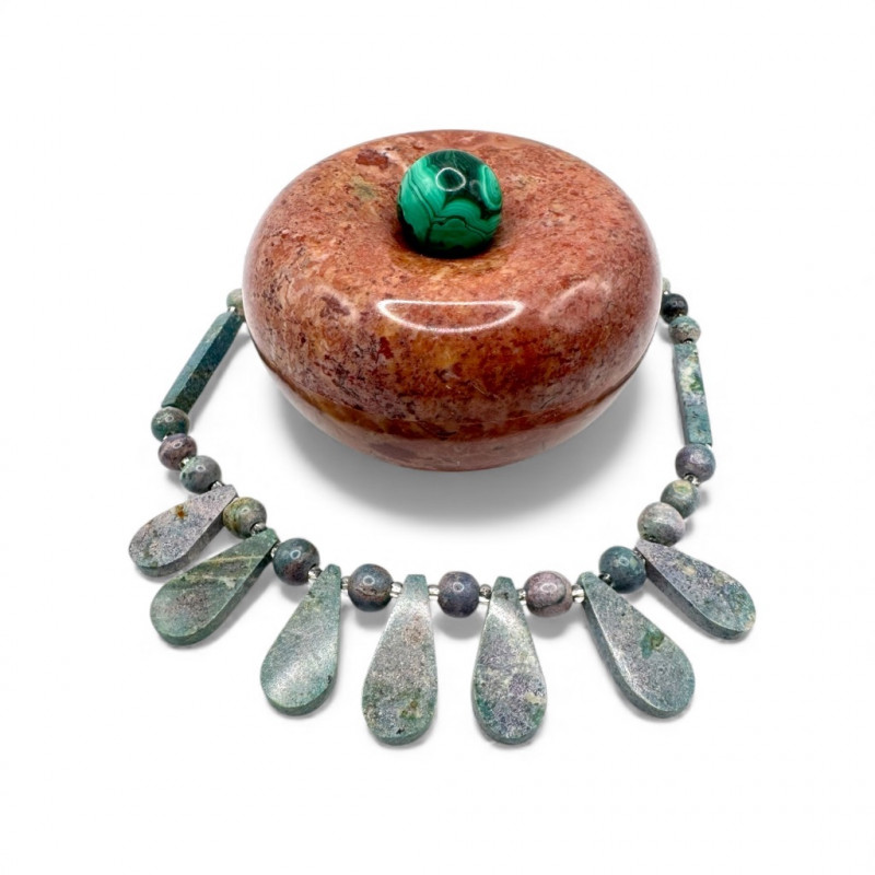 Stone Trinket Box w/ Green Sphere Lapis & Chunky Stone Necklace.