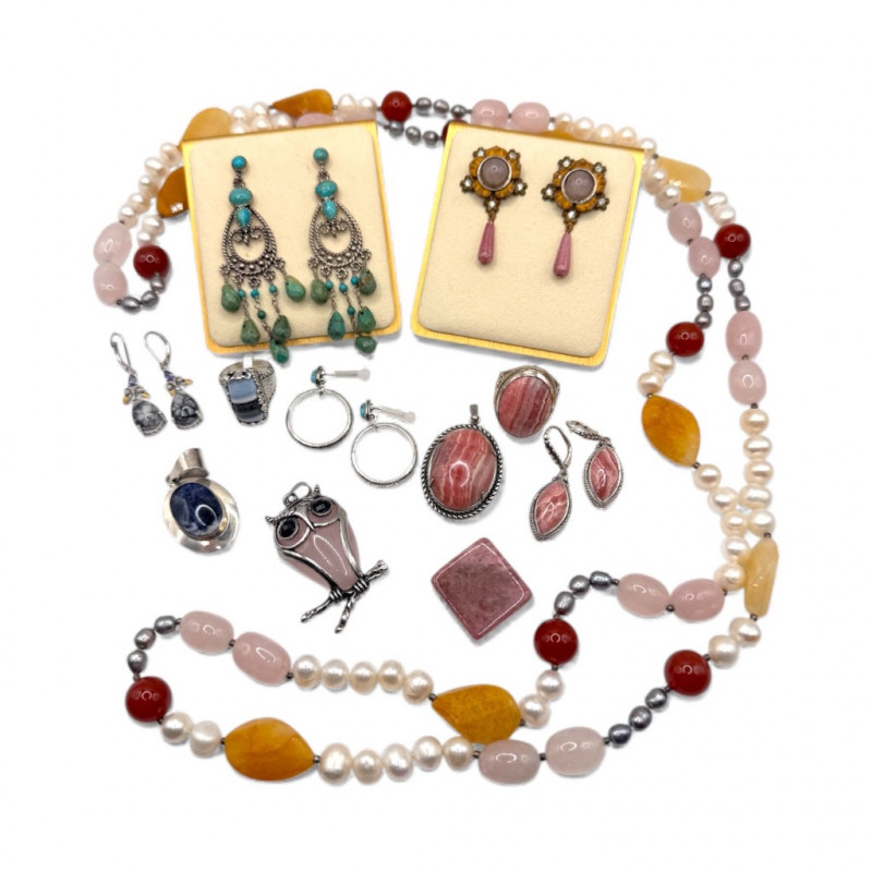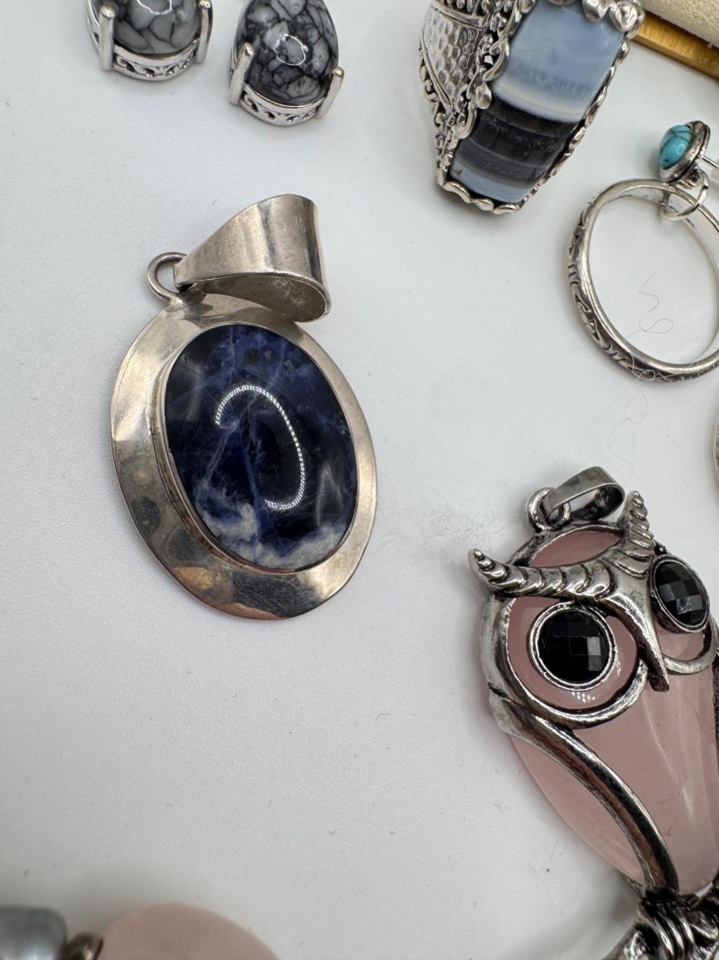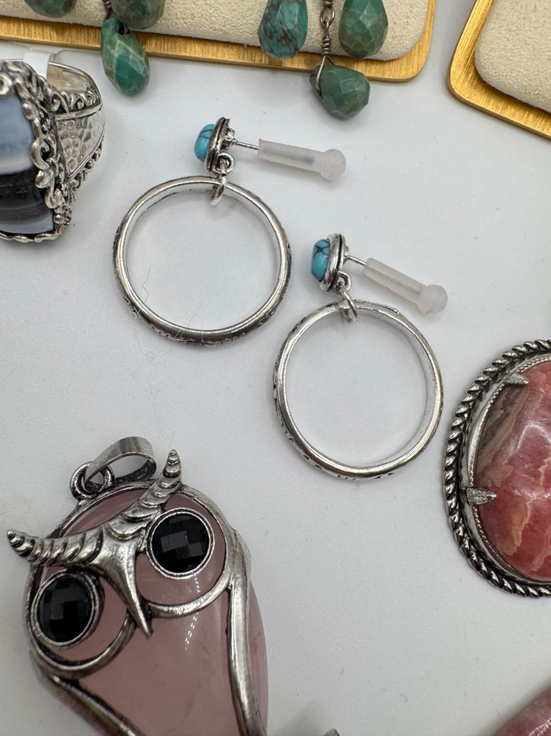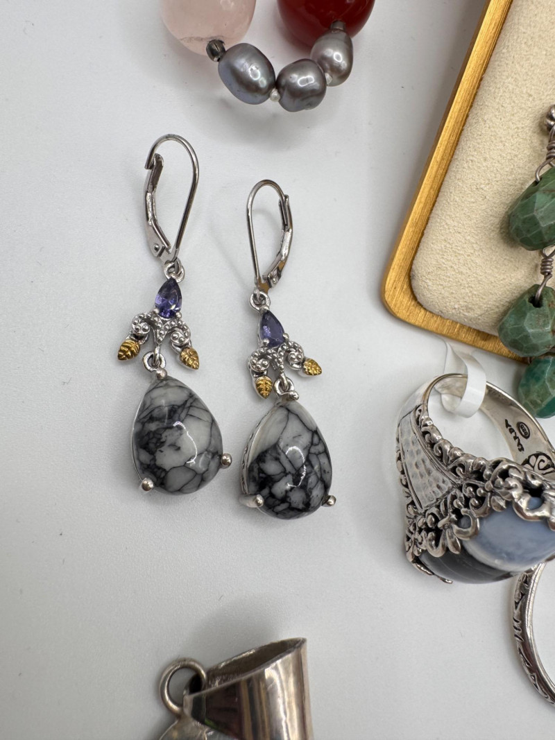 Lot # 52 - Sterling & Natural Stone Jewelry - Extra Long Necklace, Earrings +