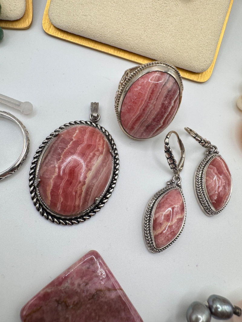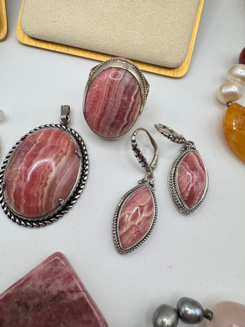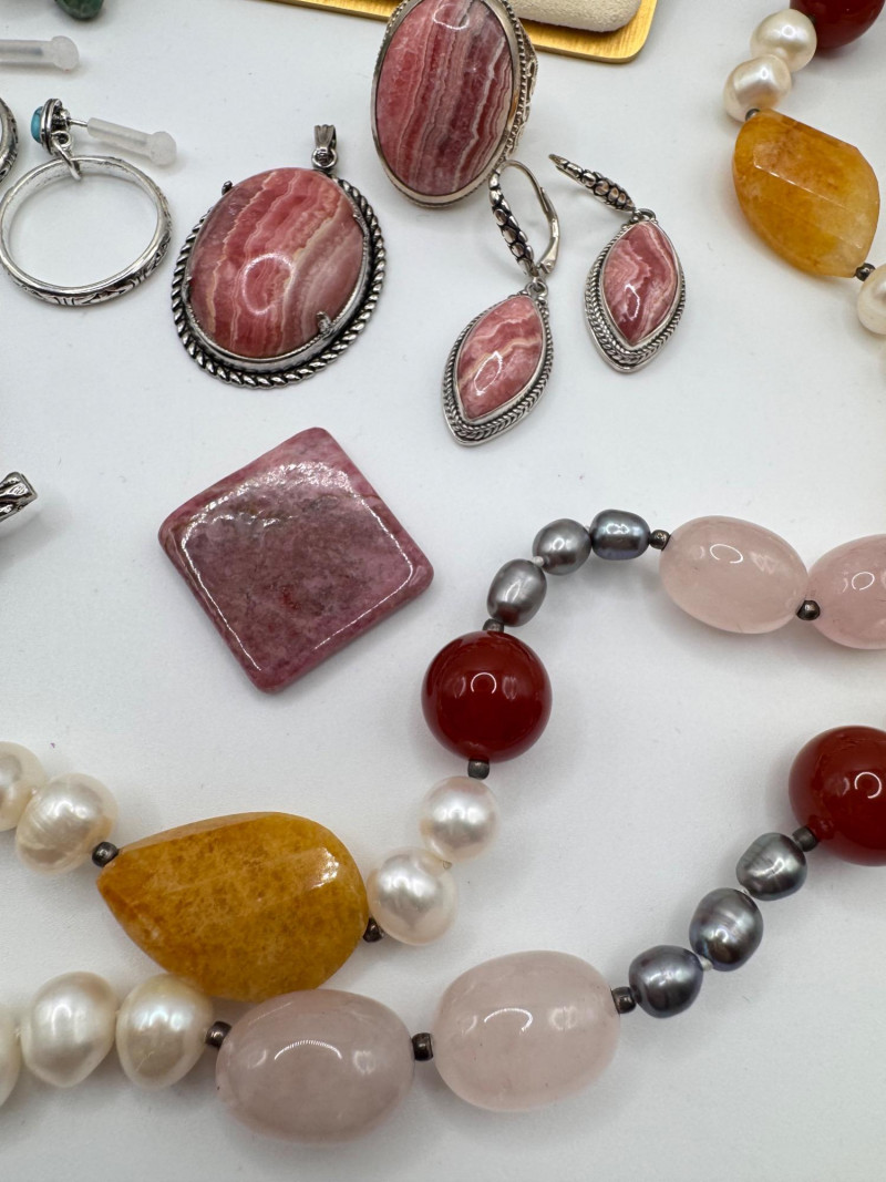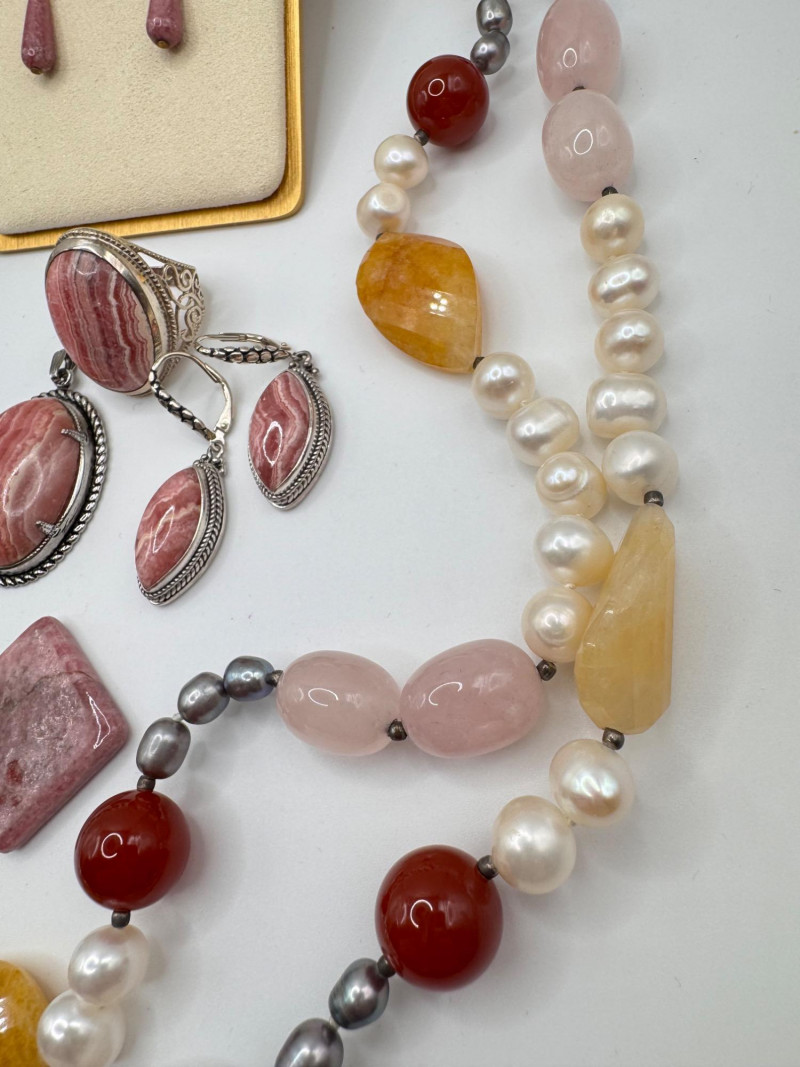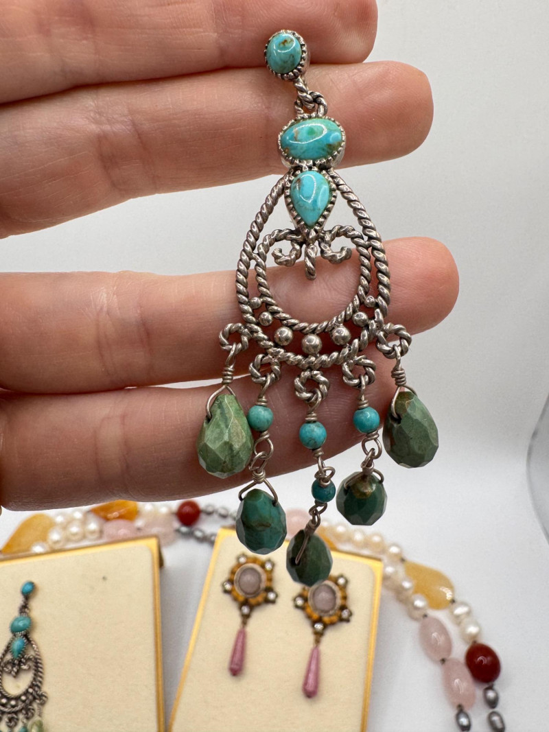 Sterling & Natural Stone Jewelry - Extra Long Necklace, Earrings +