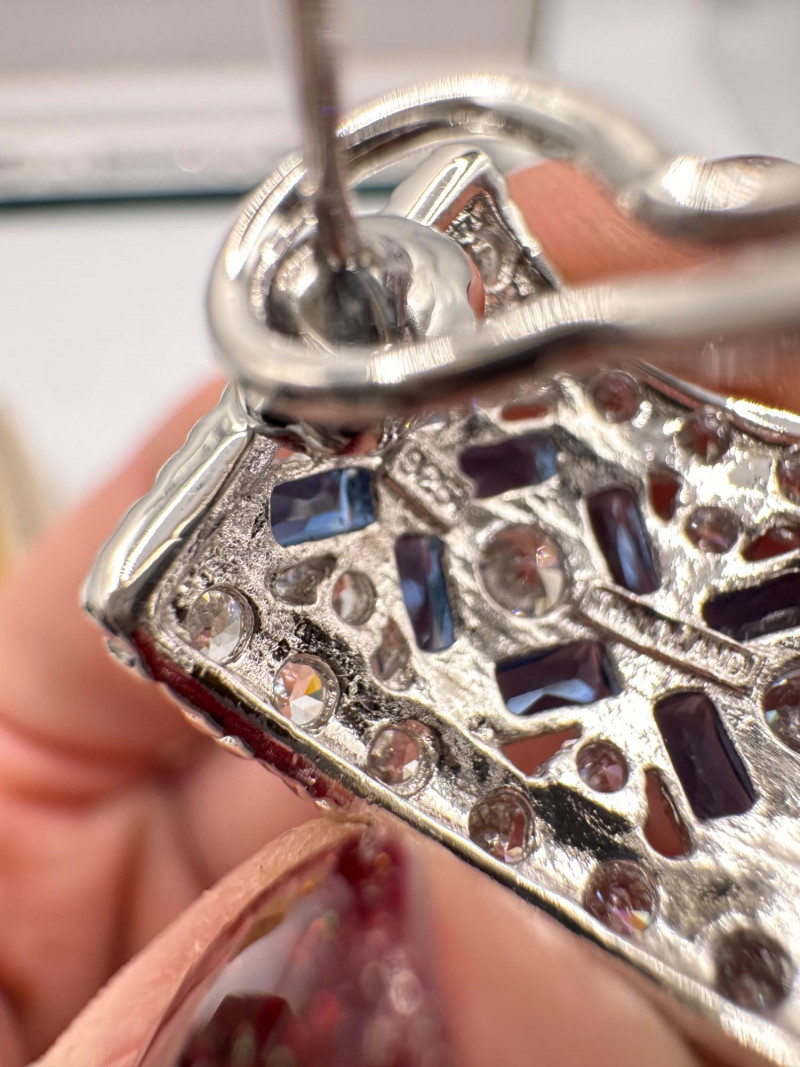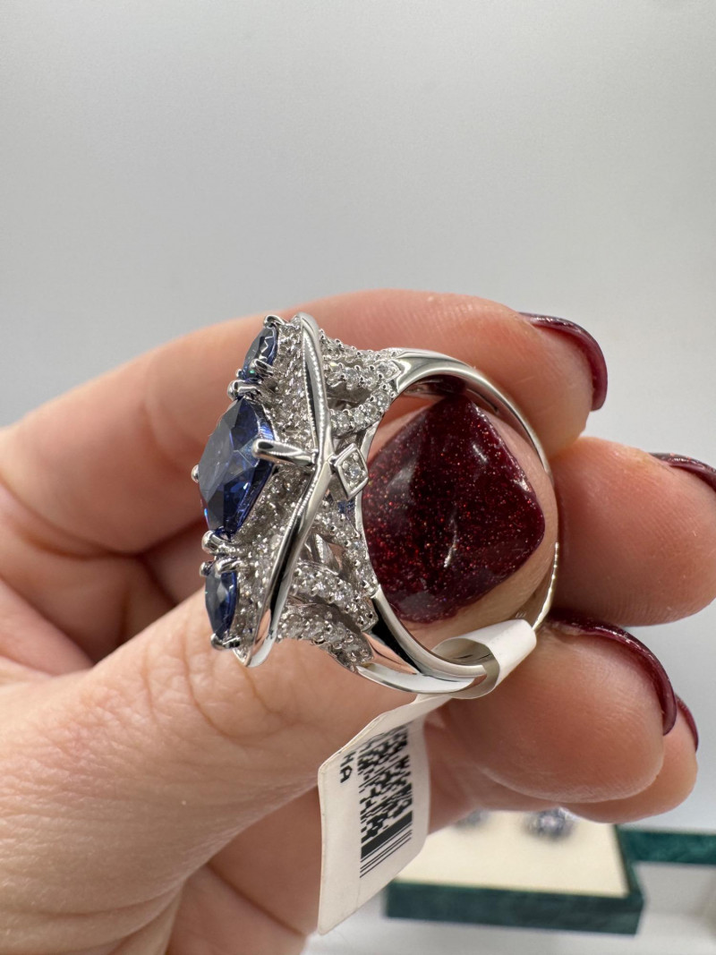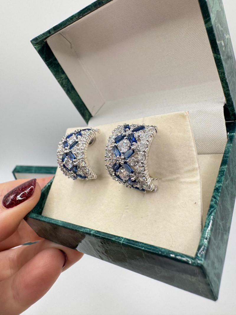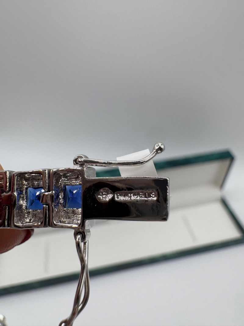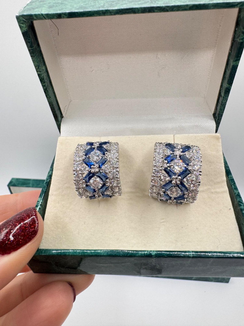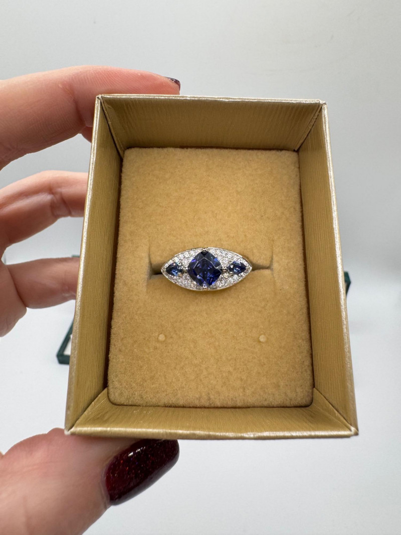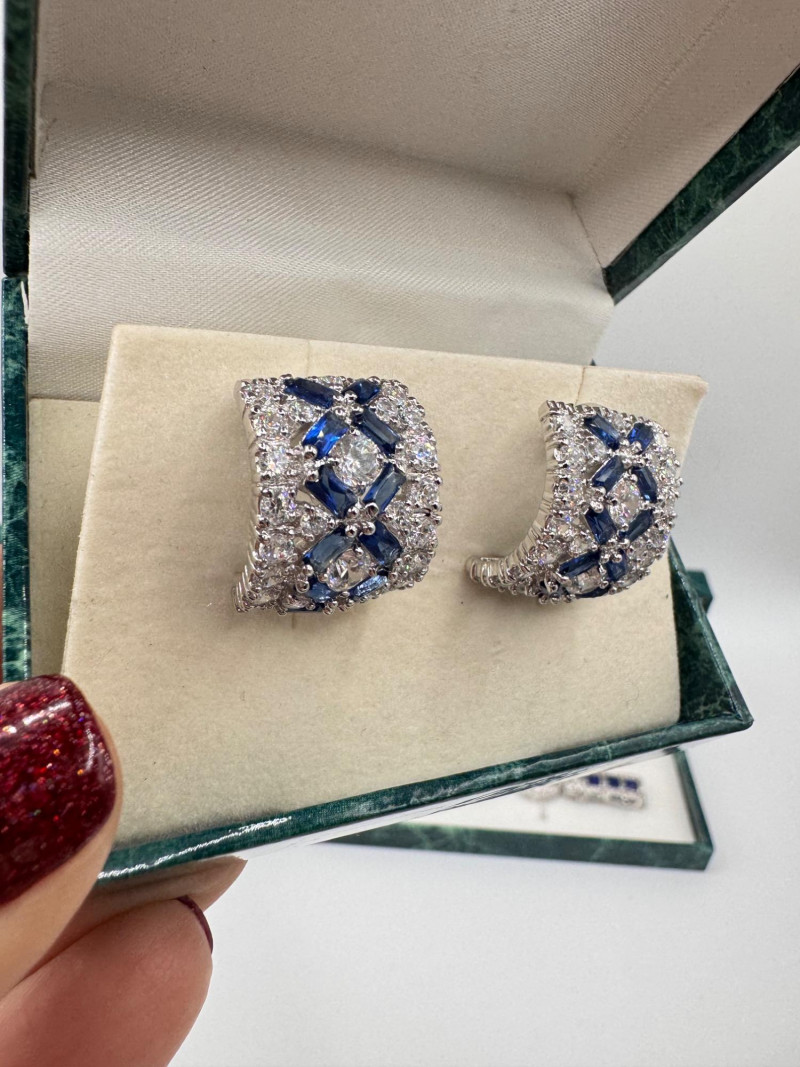 Suzanne Somers Bracelet, Ring & Earrings + Extra Sterling Ring. Suzanne Somers pave sapphire-simulant bracelet Marked STERLING Approx. 7.5" long Blue sapphire-look stones with clear simulant accents Comes with original Suzanne Somers box Suzanne Somers matching ring & earrings set Sapphire-simulant stones Ring size 6 Earrings are wide band-style with matching simulants Both marked .925 Additional sterling ring (not Suzanne Somers) Sapphire-look simulant center stone Size 7 Marked .925