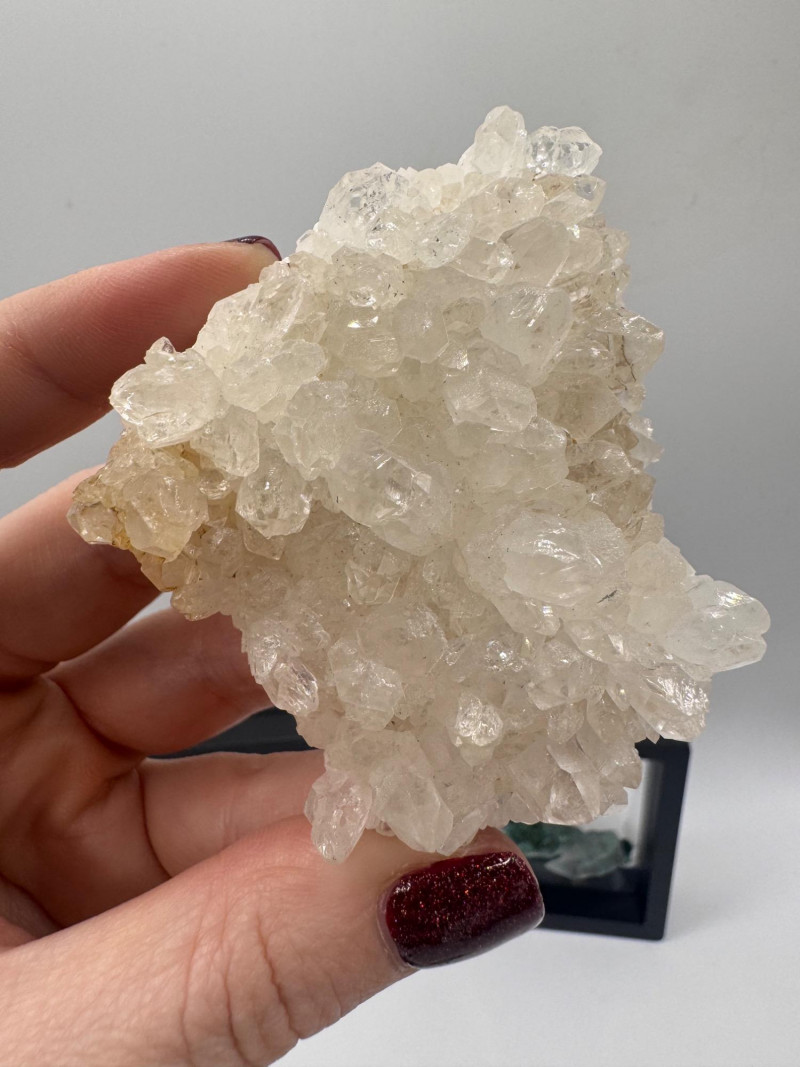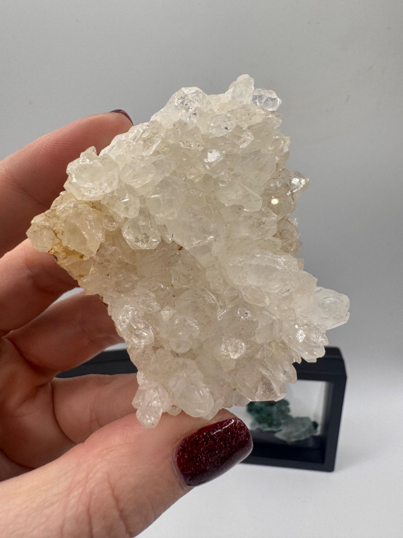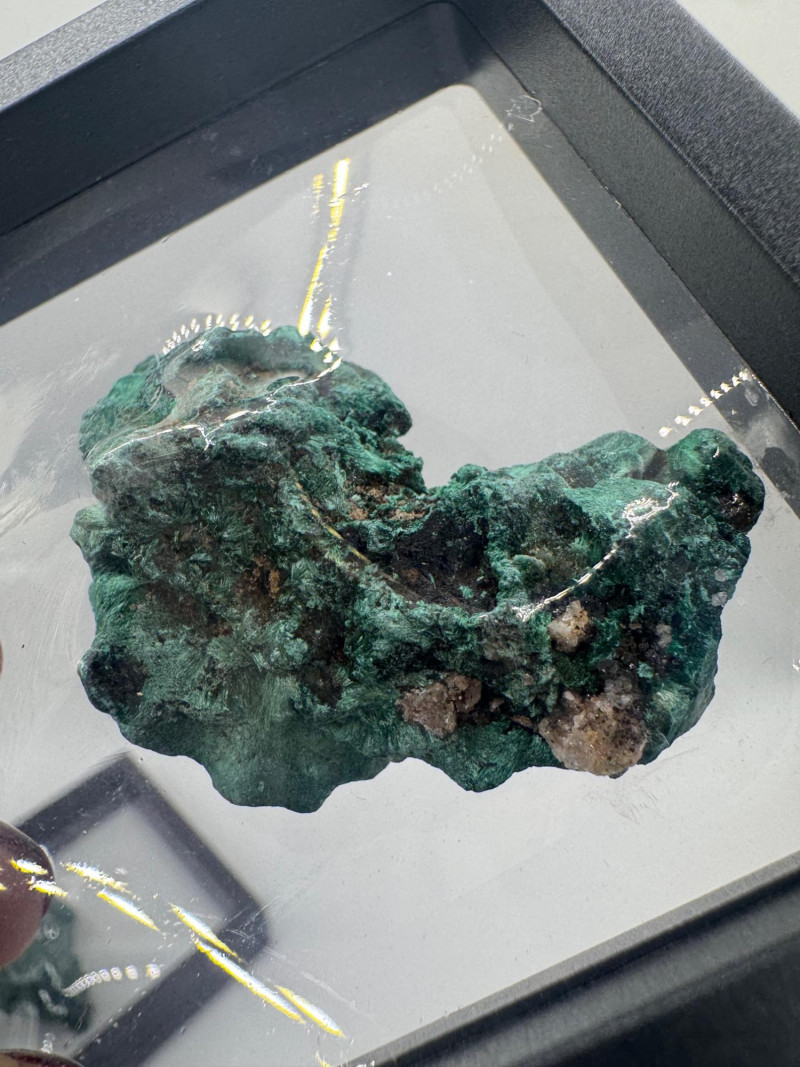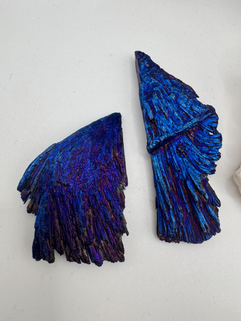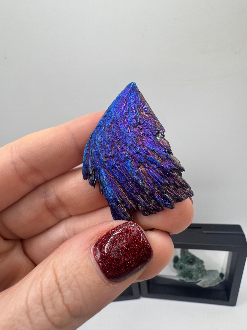 Black Tourmaline, Celestite, Calcite, Malachite & Pyrite Specimens Black Tourmaline (Iridescent “feather-like” pieces) — metallic blue/purple sheen Celestite cluster — light blue crystals, approx. 2.5" Calcite cluster — clear/white crystals, approx. 3" Green malachite specimens — 2 pieces, approx. 1.75"–2", each in display frame Pyrite nuggets — assorted small natural pieces General Disclaimer: All items are sold as-is. Jewelry, metals, gemstones, and other minerals have not been tested unless specifically noted. No guarantees are made regarding metal content, gemstone type, or origin. Refunds will not be issued based on identification, classification, or perceived quality.