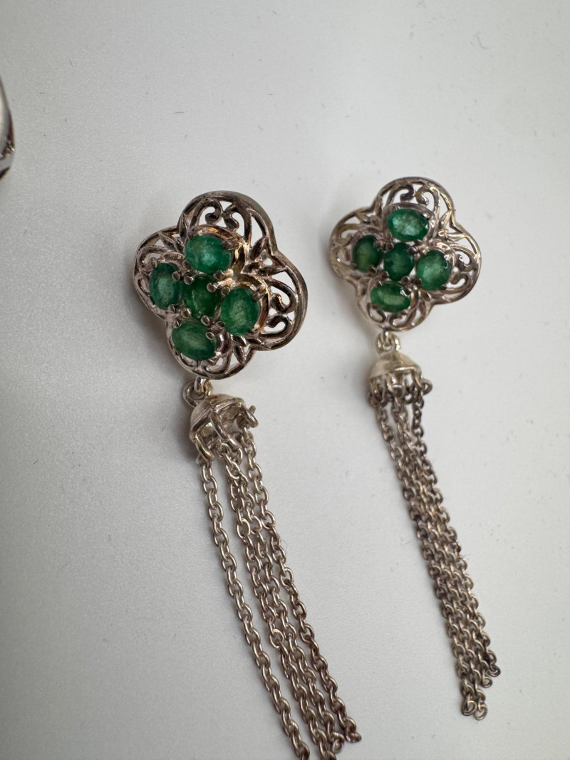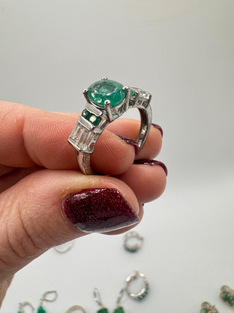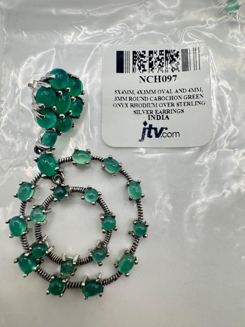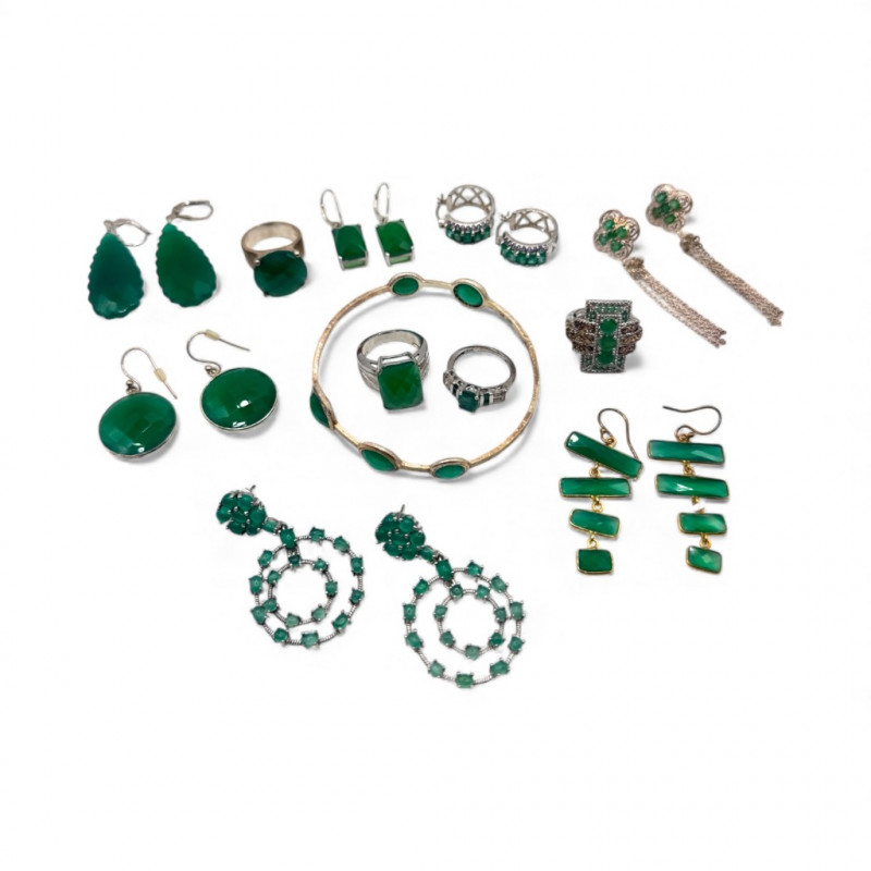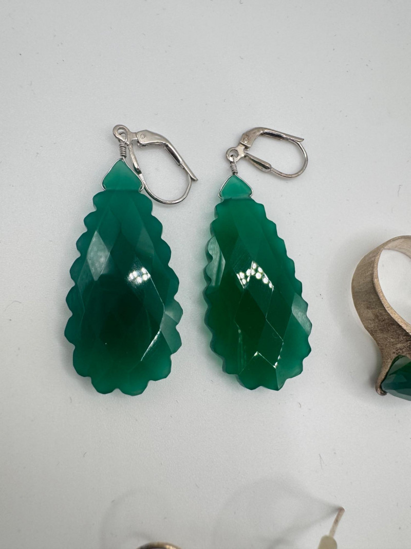 Lot # 61 - Mixed Sterling & Green Stone Jewelry – Green Onyx, Emerald-Look Pieces