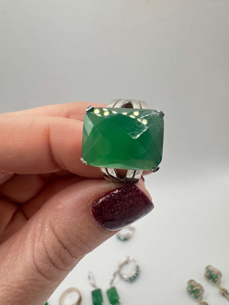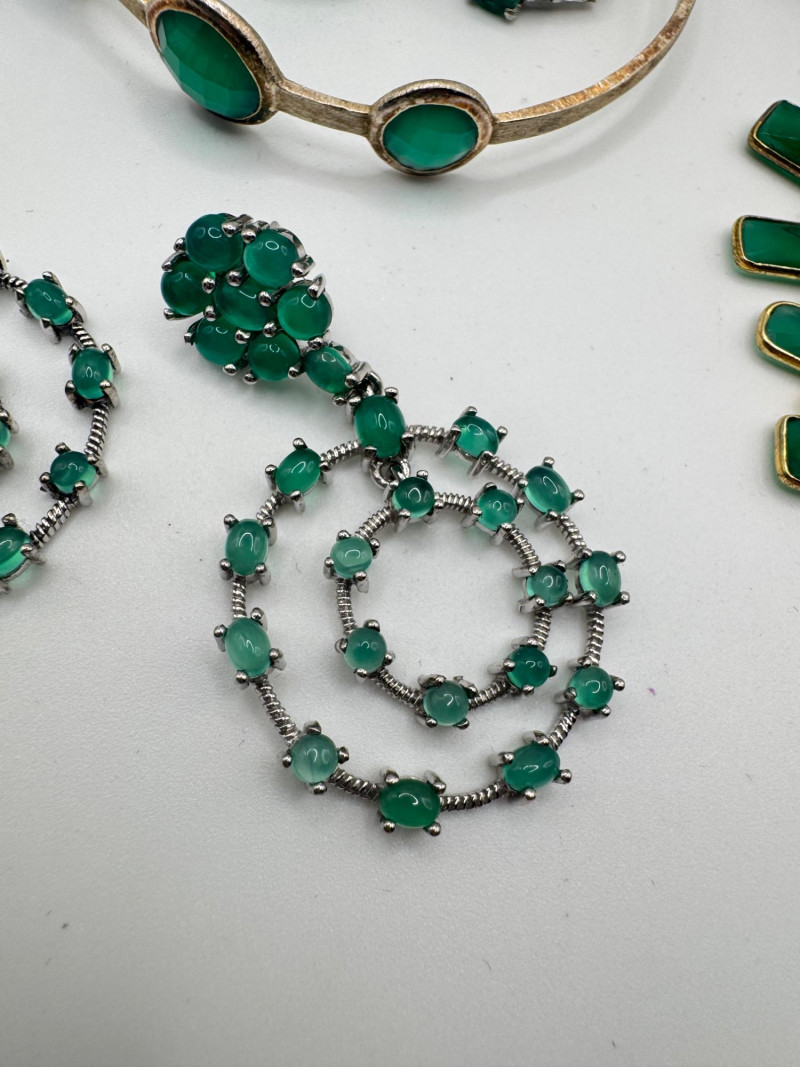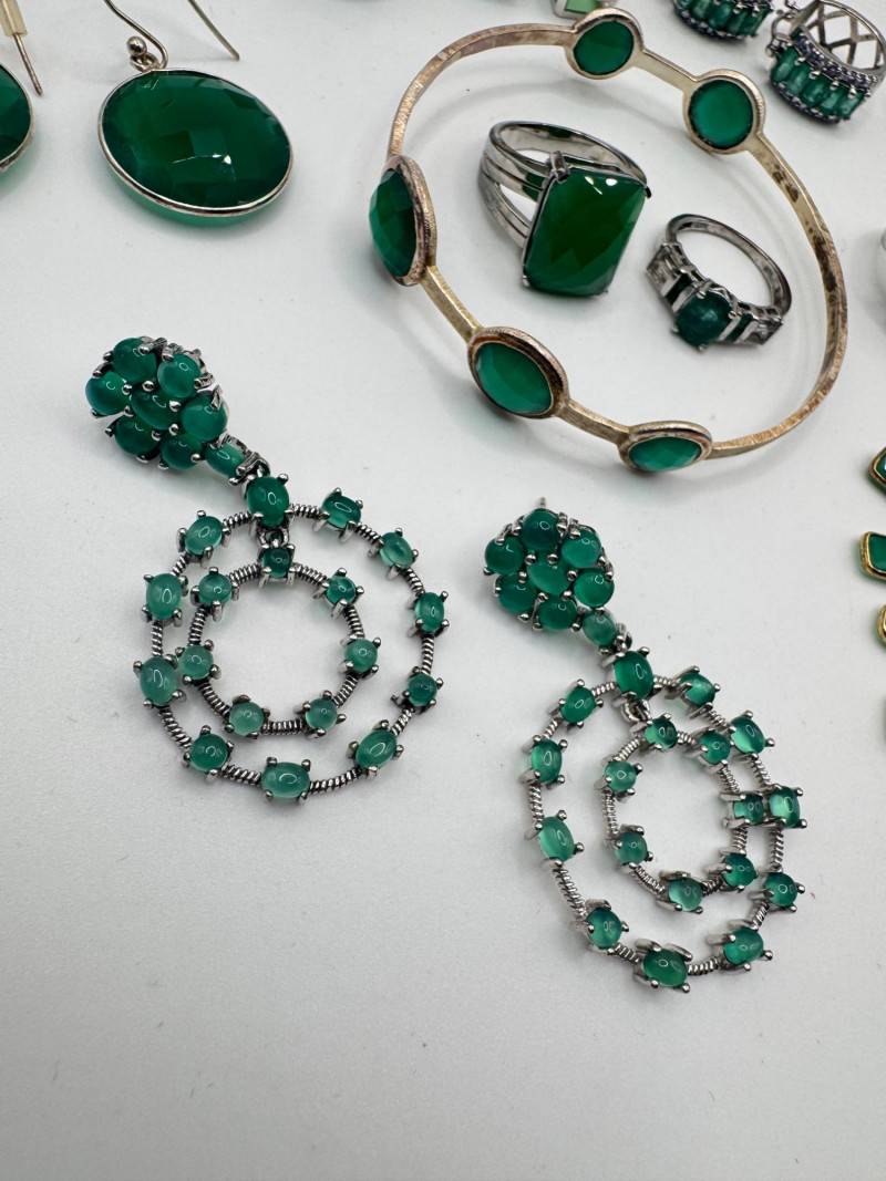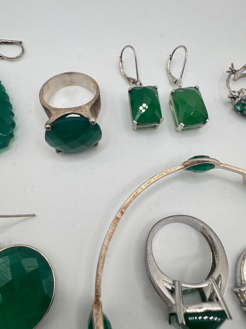 Mixed Sterling & Green Stone Jewelry – Green Onyx, Emerald-Look Pieces.