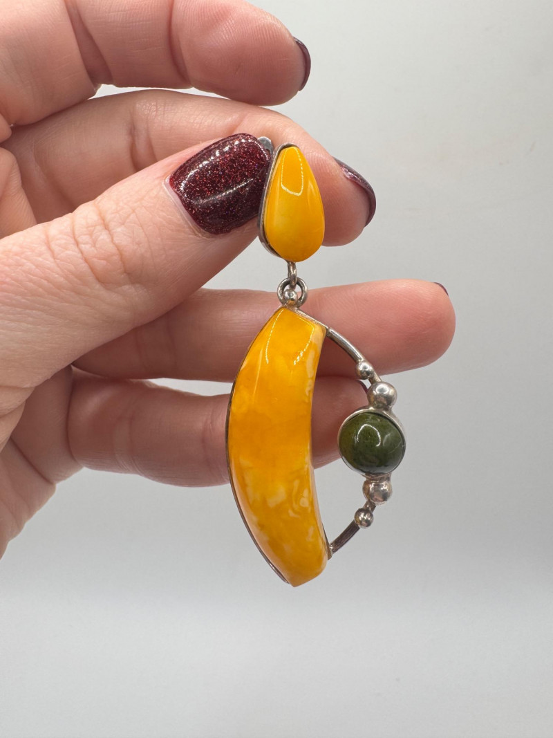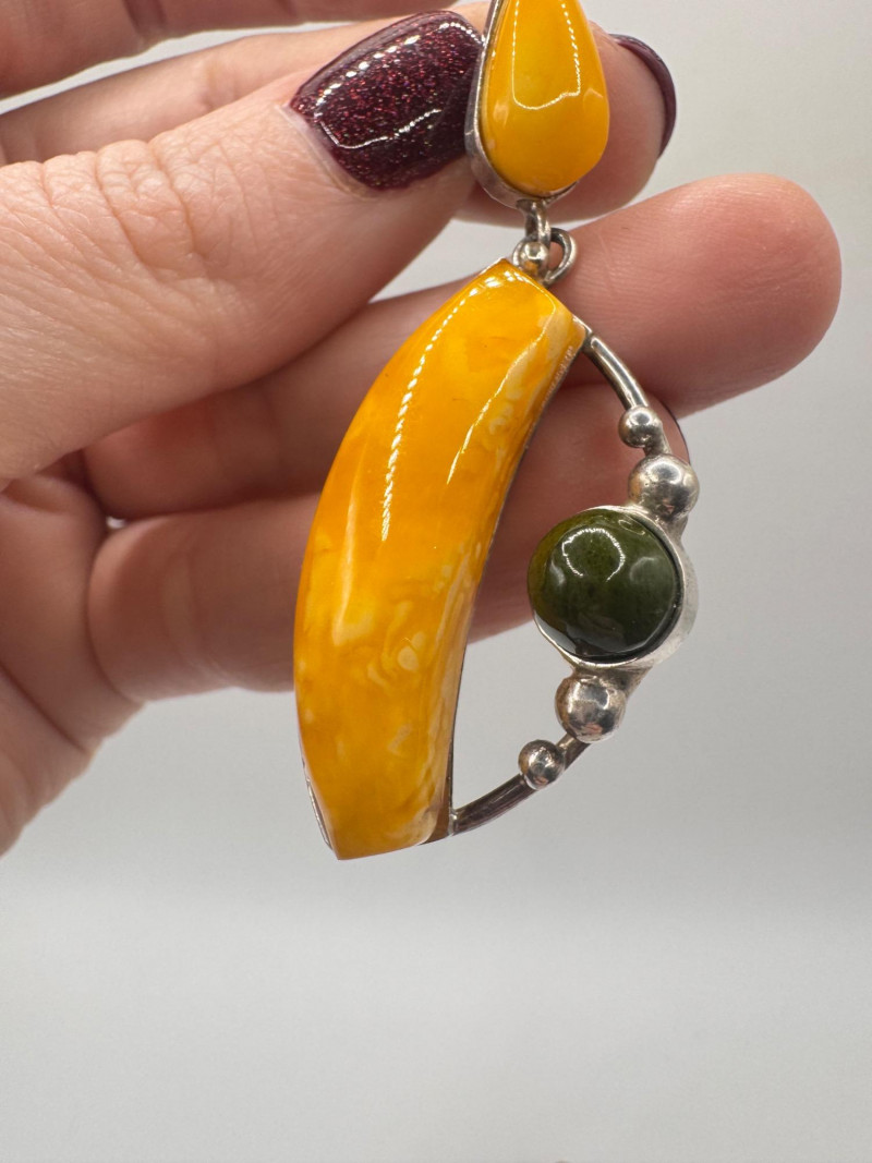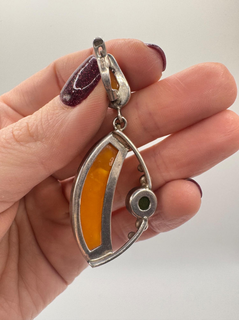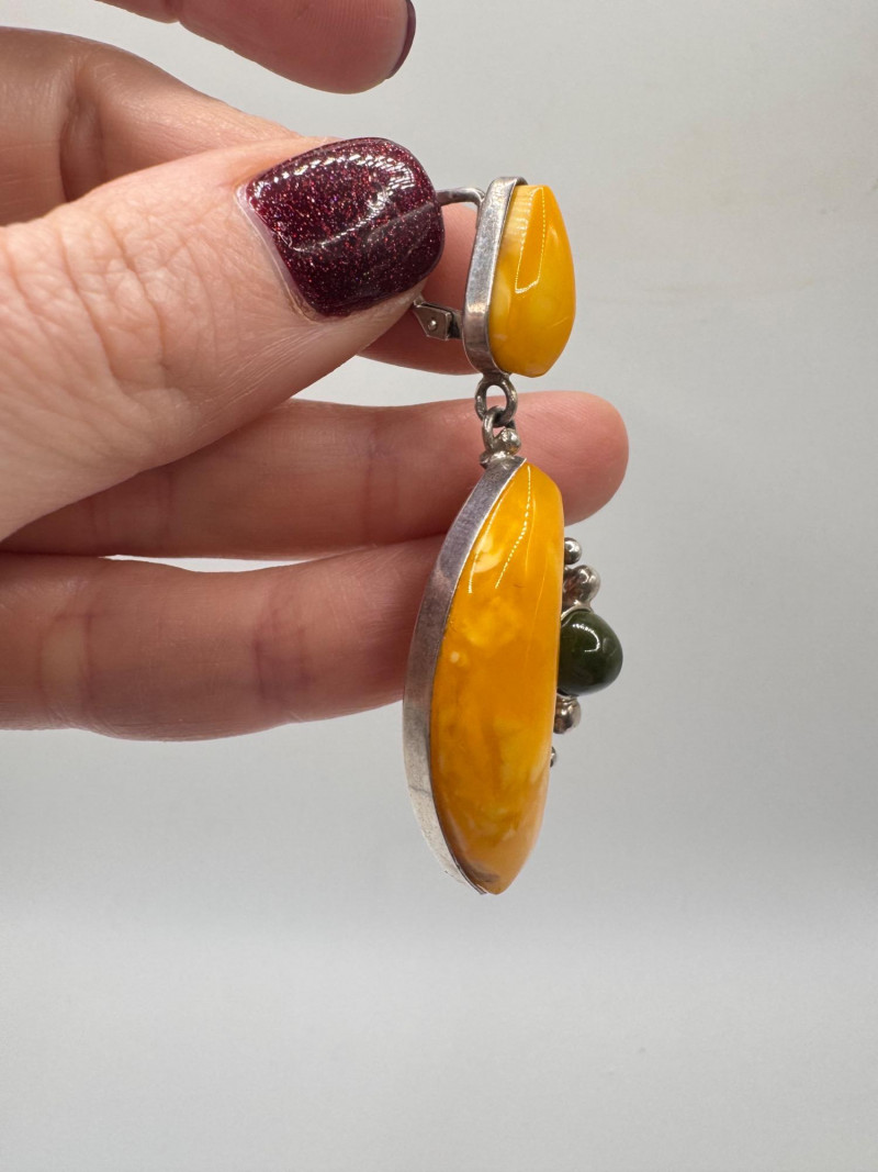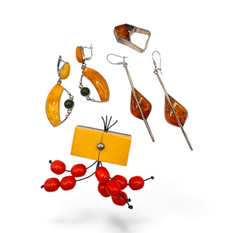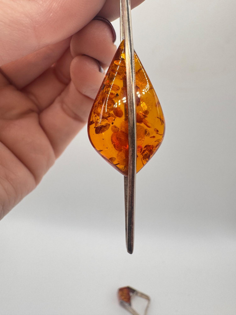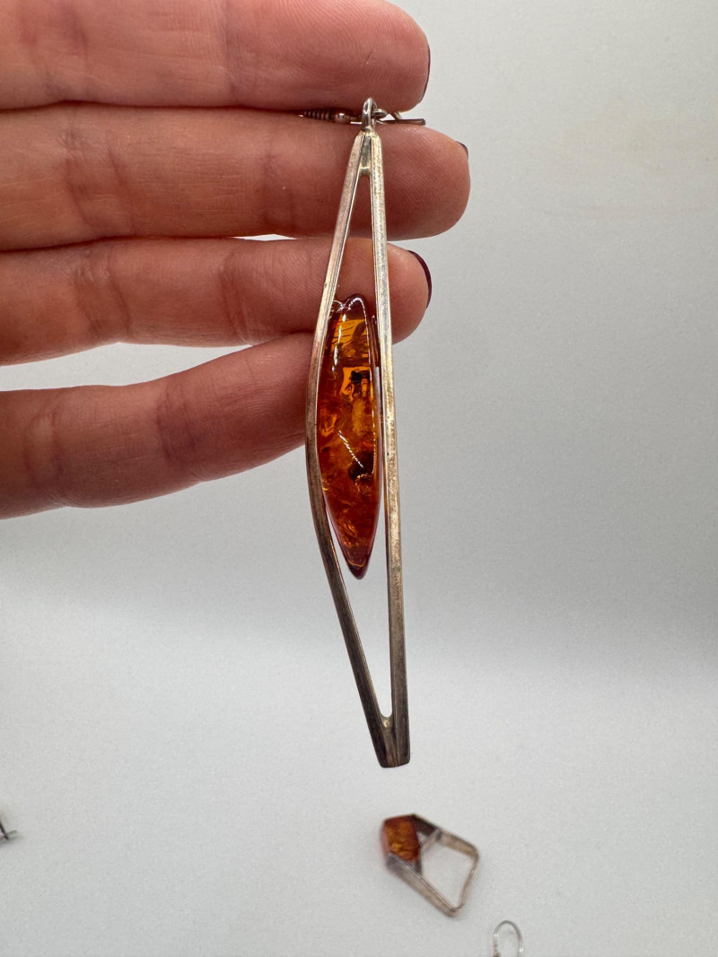 Lot # 66 - Sterling Silver & Amber Earrings & Ring + Signed Brooch