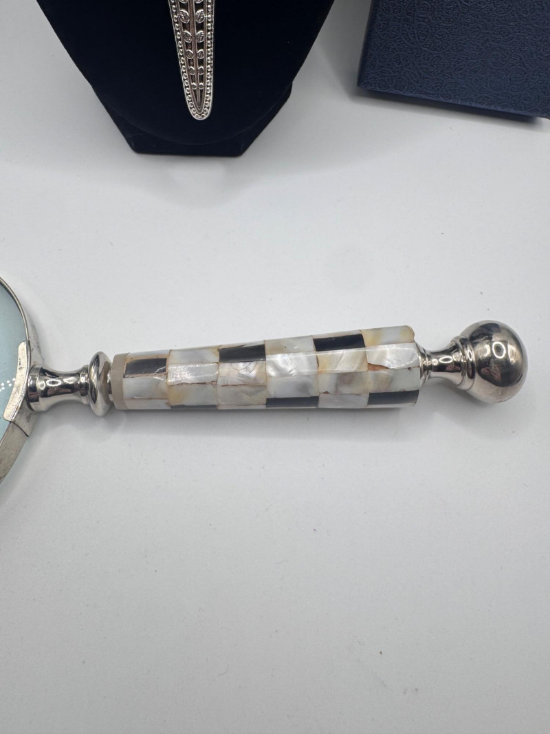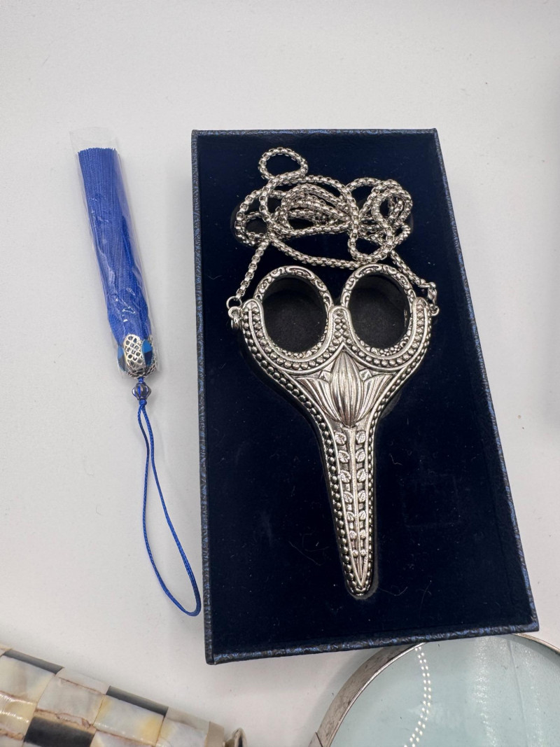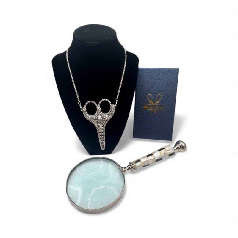 Lot # 67 - New Shwakk Scissor Pendant Necklace + Vintage Shell-Handle Magnifier