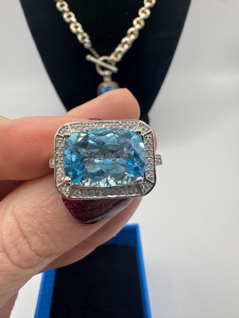 Lot # 68 - Sky Blue Topaz & Sterling Necklace, Ring & Bracelet 75.44g