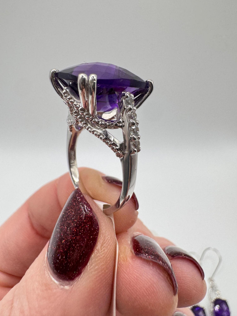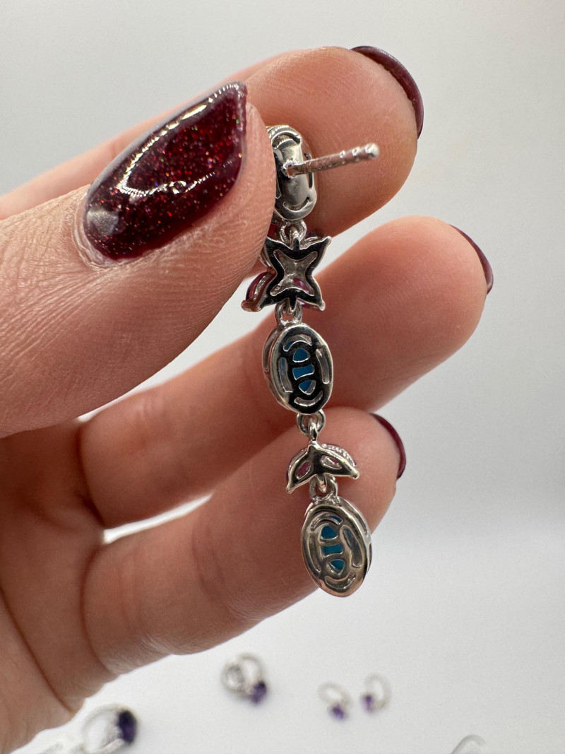 Sterling Earrings & Rings w/ Amethyst, CZ & Turquoise Stones.