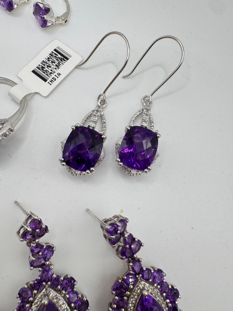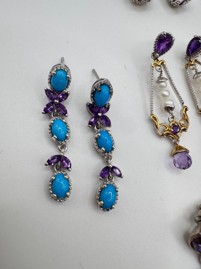 Lot # 70 - Sterling Earrings & Rings w/ Amethyst, CZ & Turquoise Stones