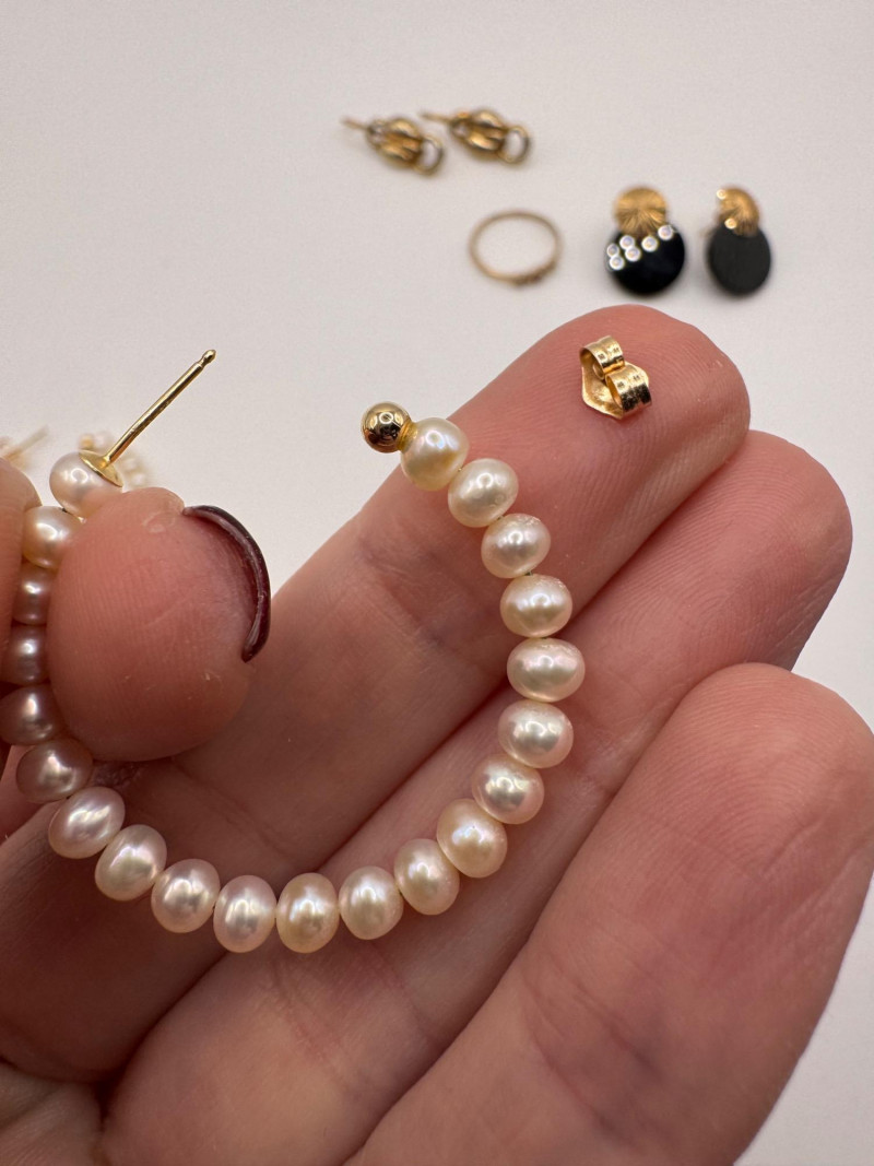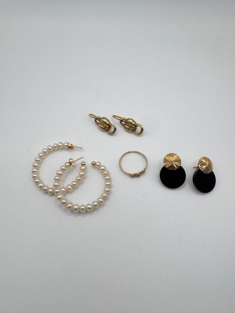 10k & 14k Gold Jewelry Set: Earrings + Pearl Hoops & Diamond/Ruby Ring.