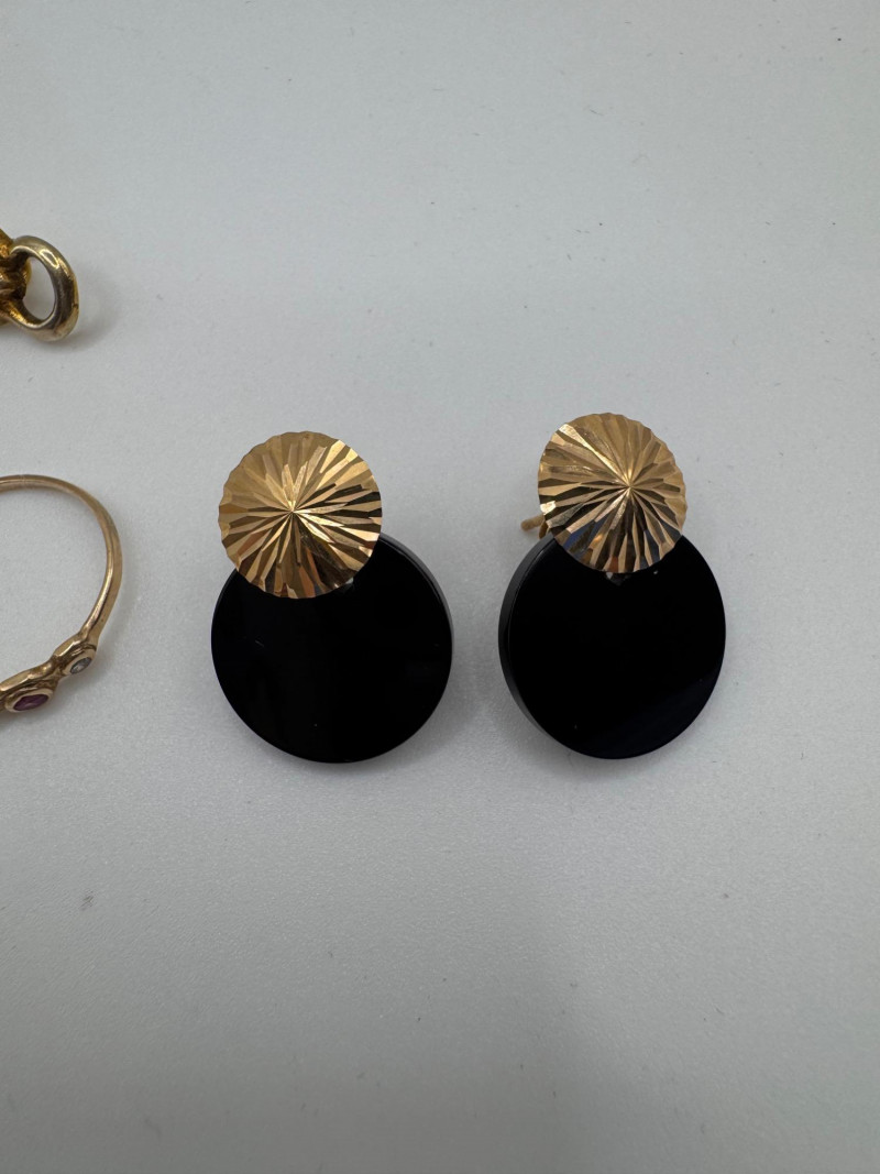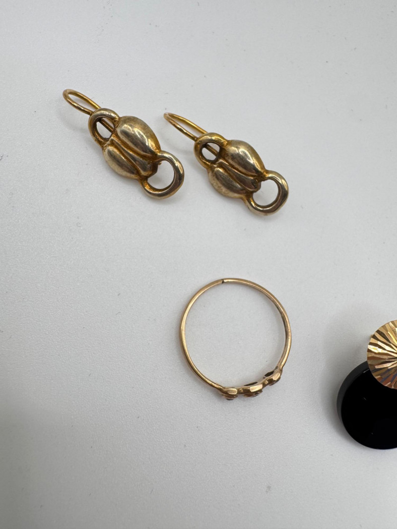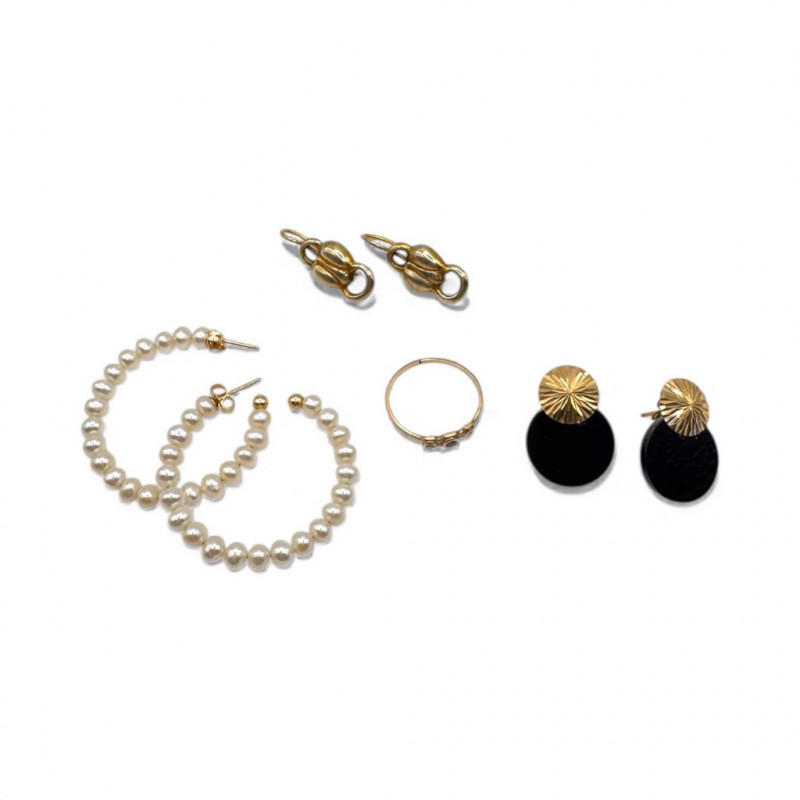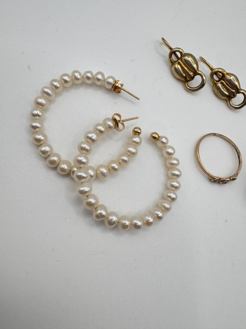 Lot # 78 - 10k & 14k Gold Jewelry Set: Earrings + Pearl Hoops & Diamond/Ruby Ring