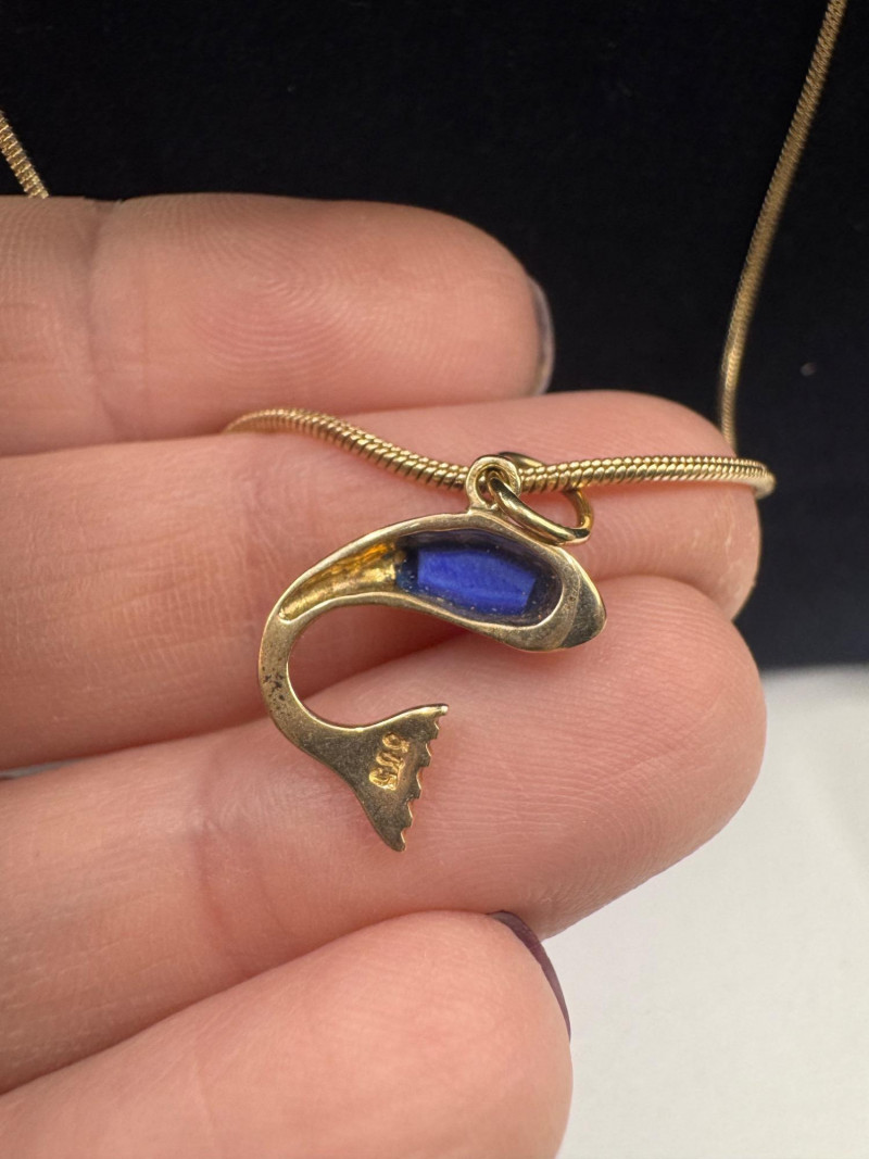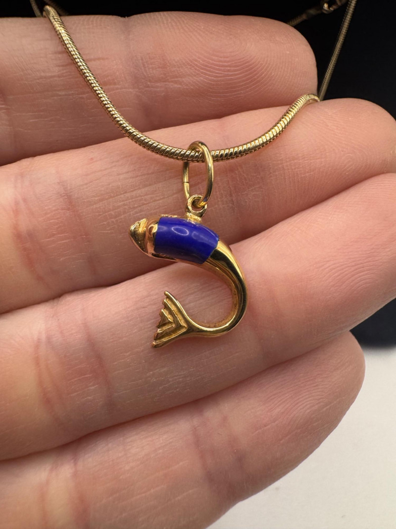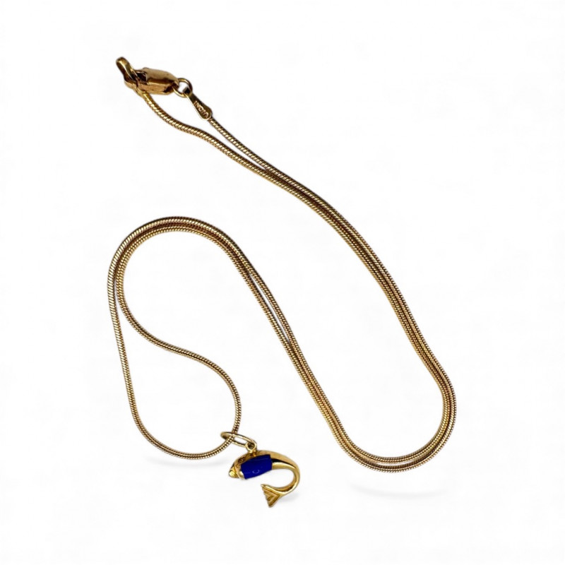 14K Gold Snake Chain Necklace w/ 14K Fish Pendant – 7.66g.