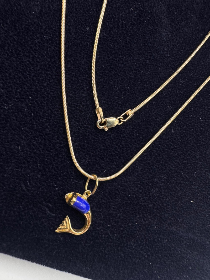 Lot # 13 - 14K Gold Snake Chain Necklace w/ 14K Fish Pendant – 7.66g
