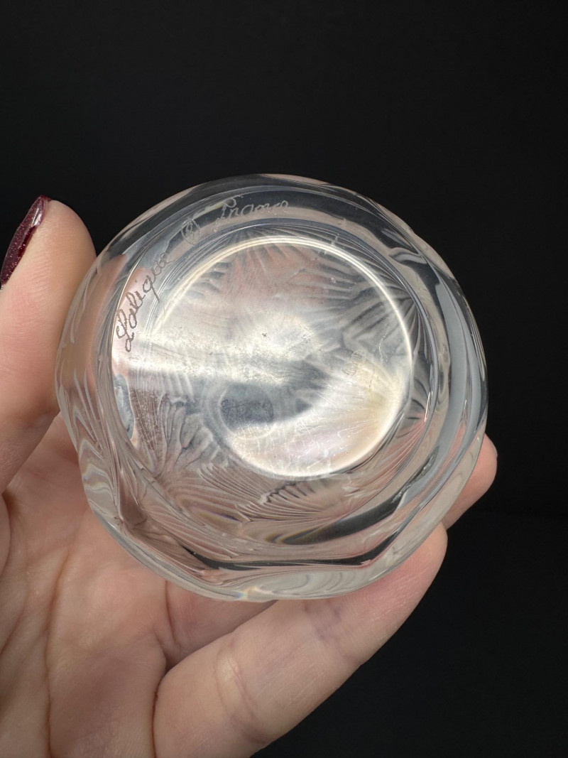 Signed Lalique “Palmette” Frosted Crystal Perfume Bottle – Est. $250