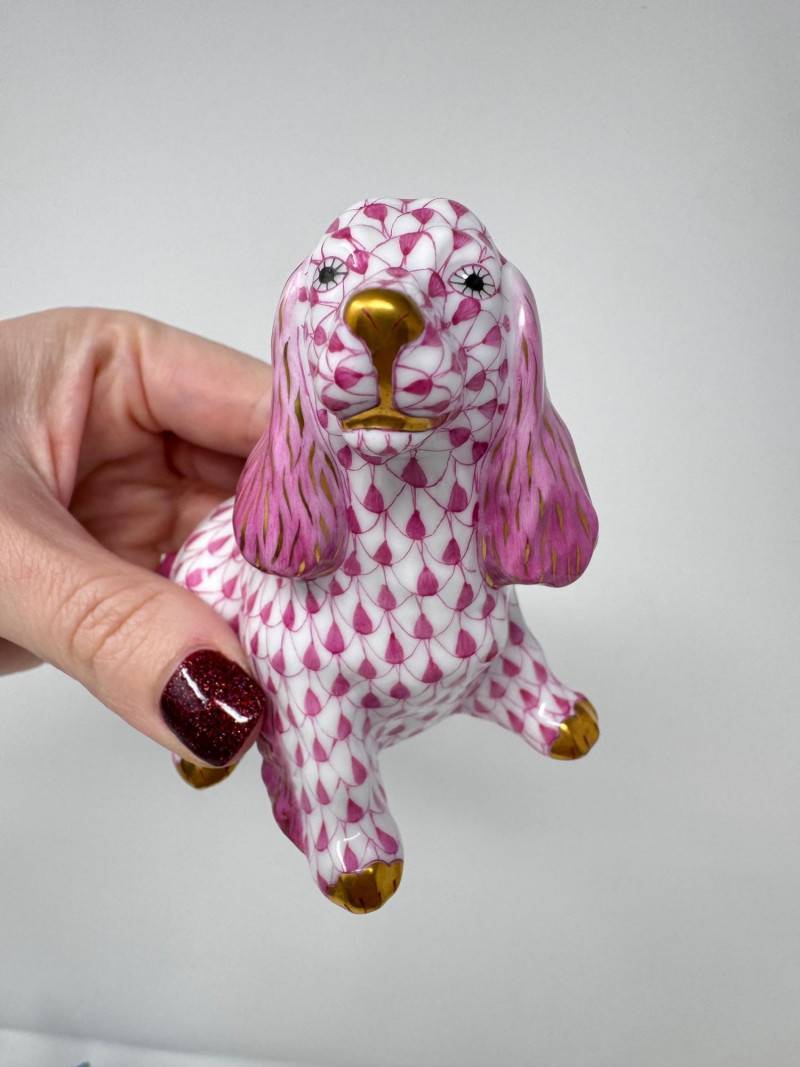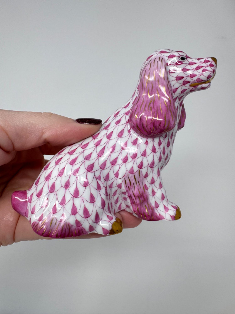Herend Spaniel – Pink FishnetSize: ~4–4.5"