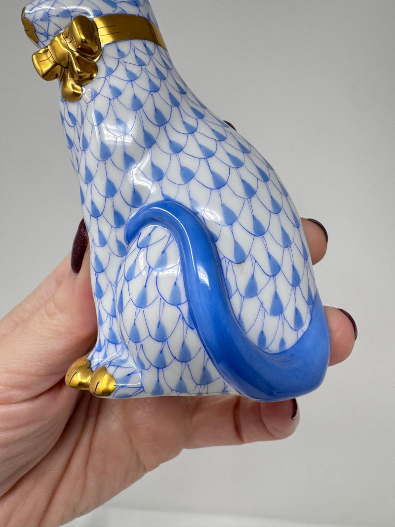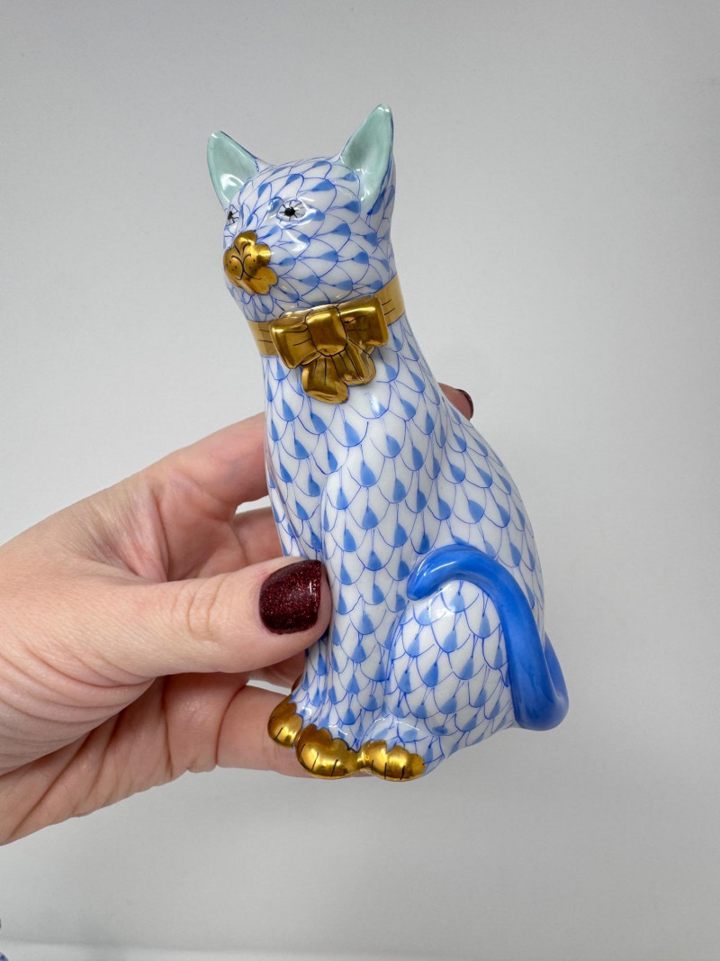 Herend Cat With Bow – Blue Fishnet