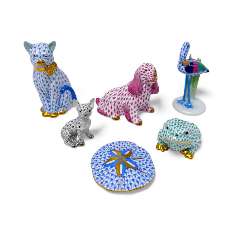 Herend Porcelain Figurine – Fishnet Animals & Sand Dollar Est $1500+ Herend Frog – Key Lime Fishnet