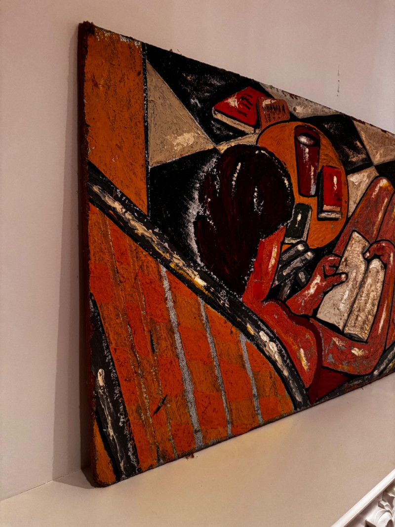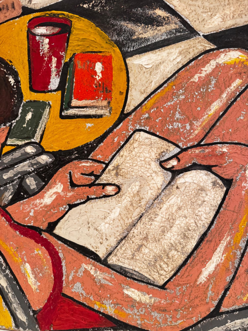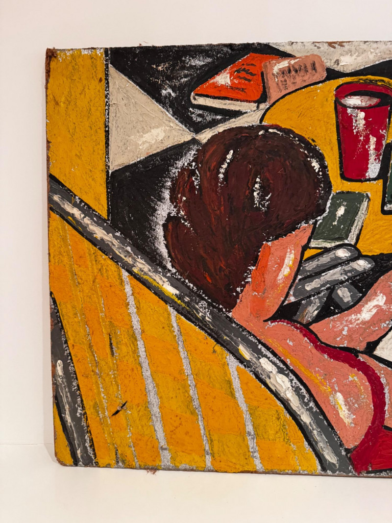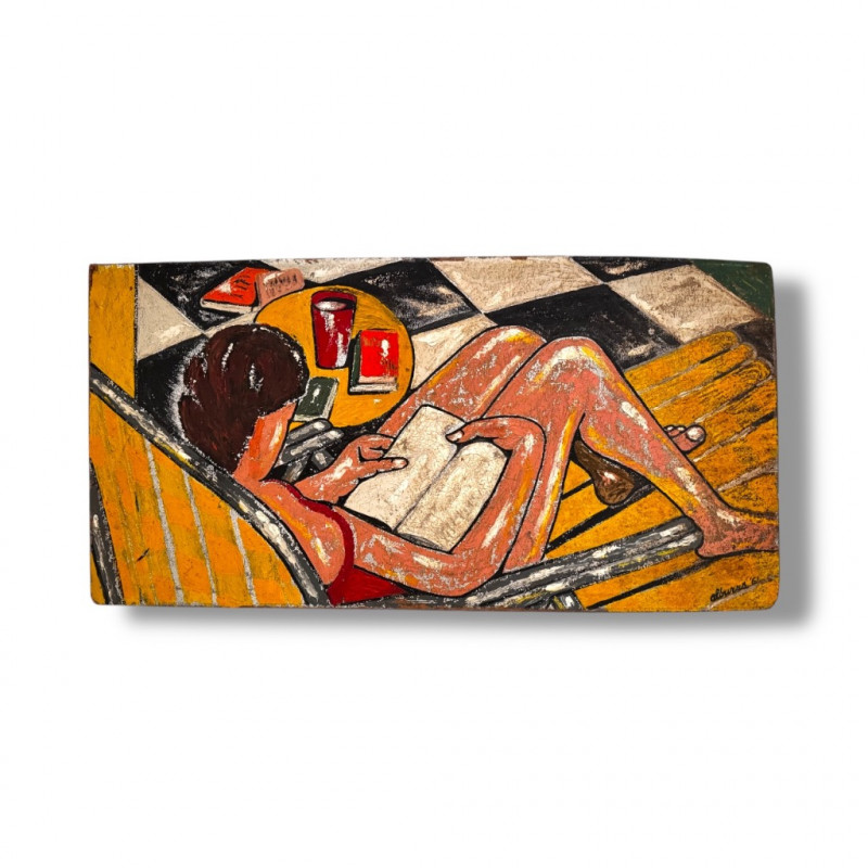 Lot # 24 - Signed Original Painting on Pressed Board – Woman Reading Scene