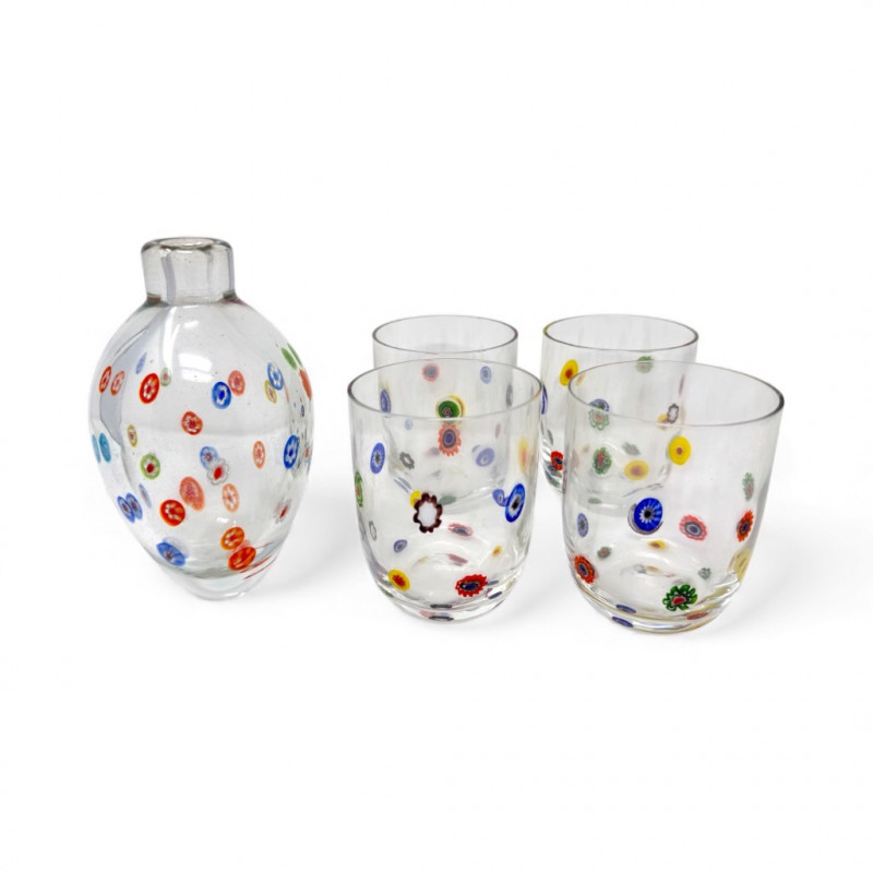 Lot # 17 - Murano Style Clear Millefiori Vase w/ 4 Matching Glasses – 5 Pc Set