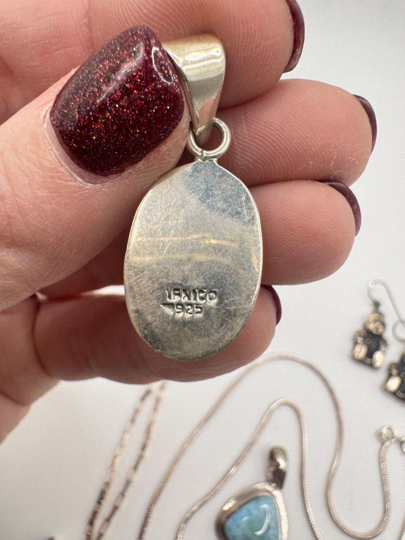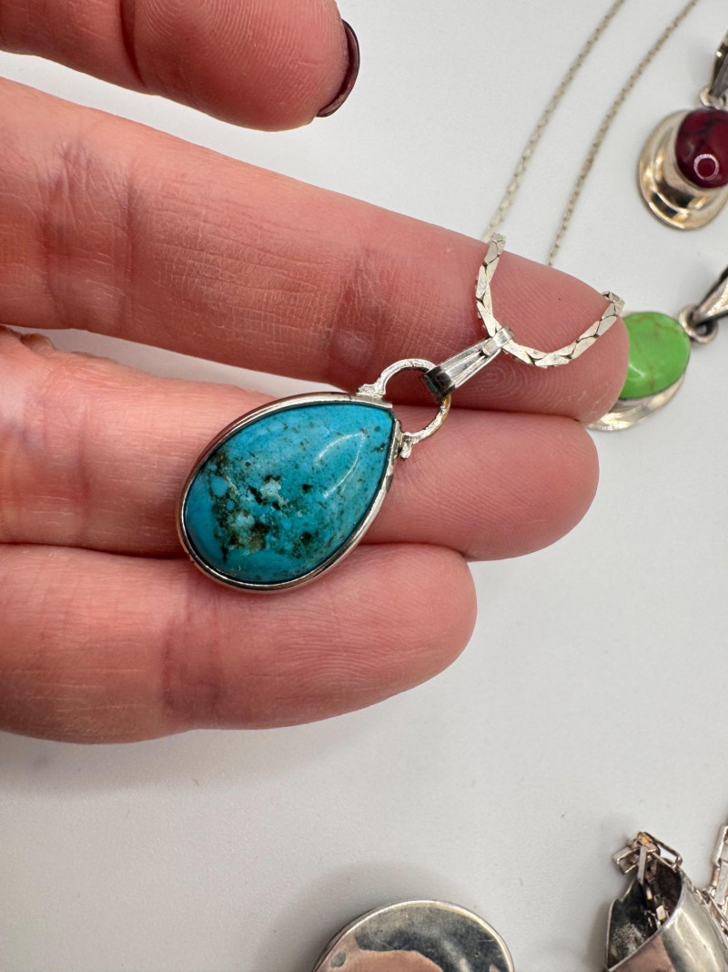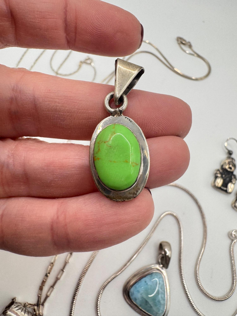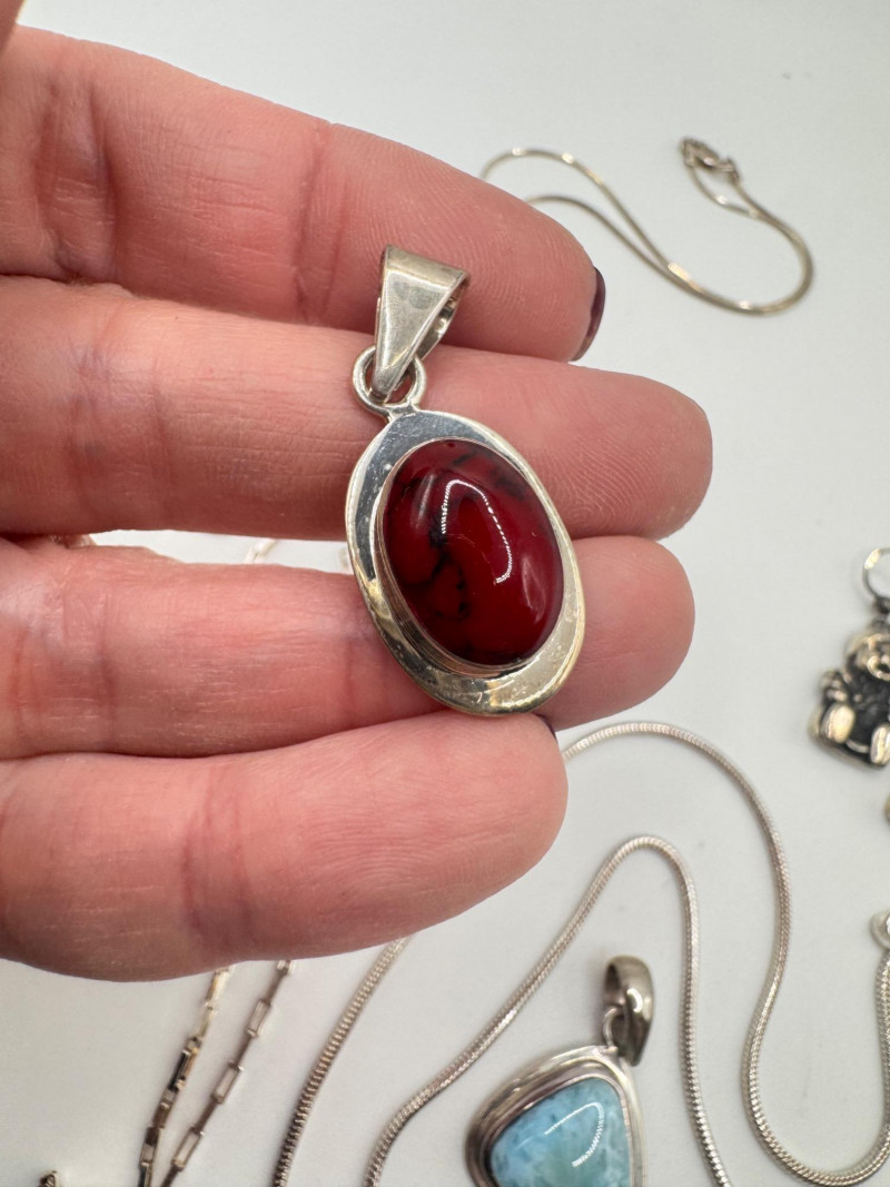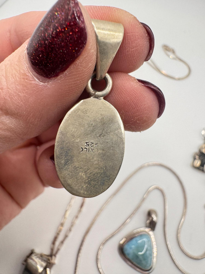 Sterling Silver Pendants & Chains w/ Polished Stone Cabochons - 54.08g.