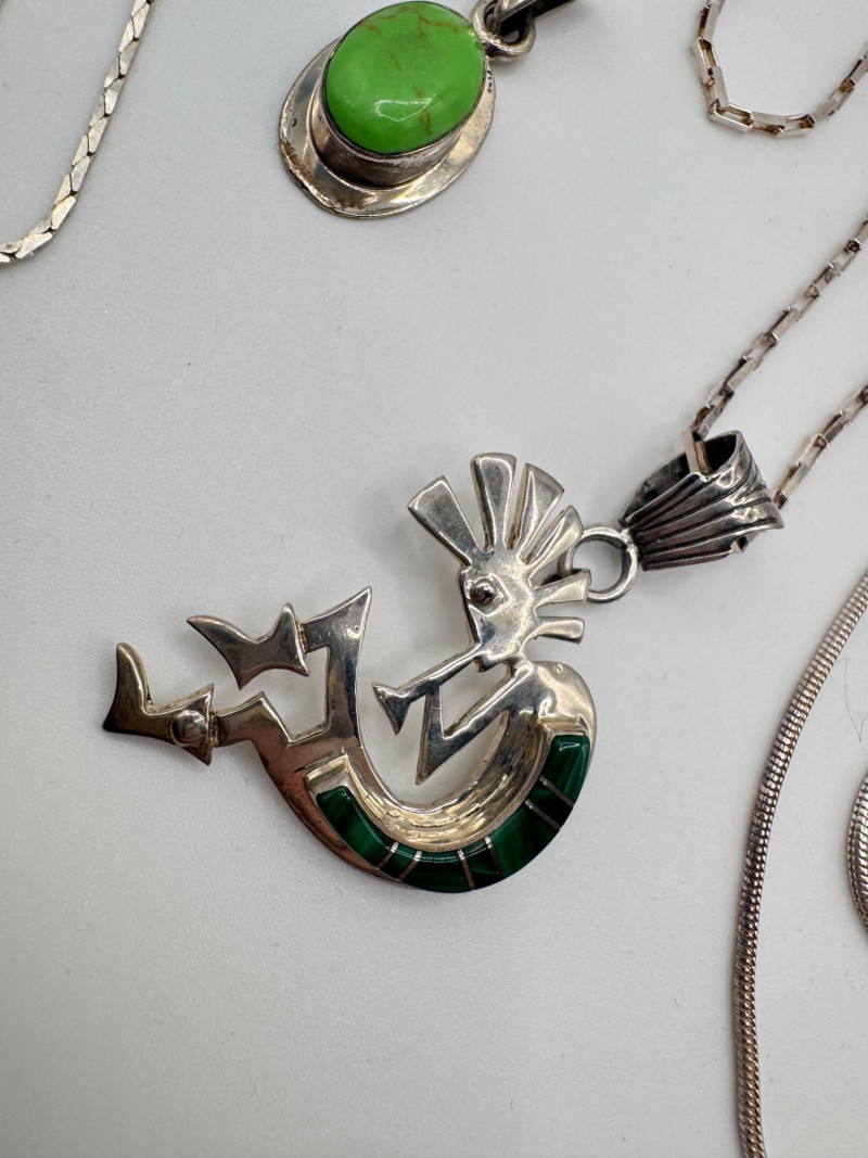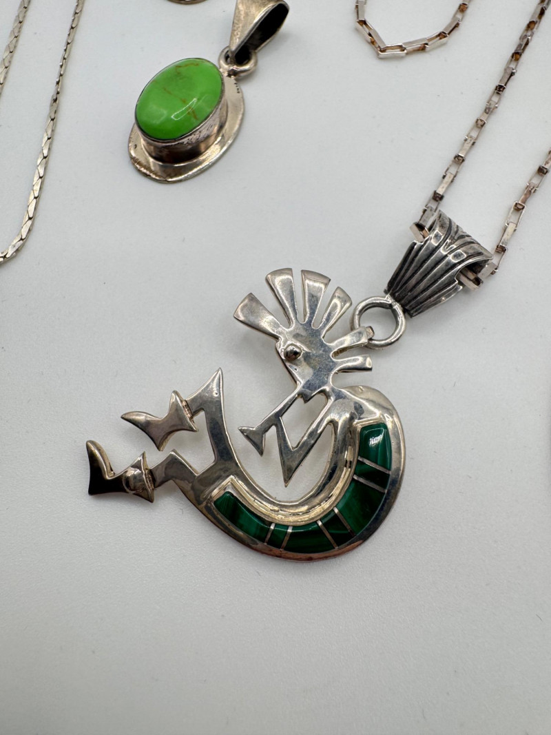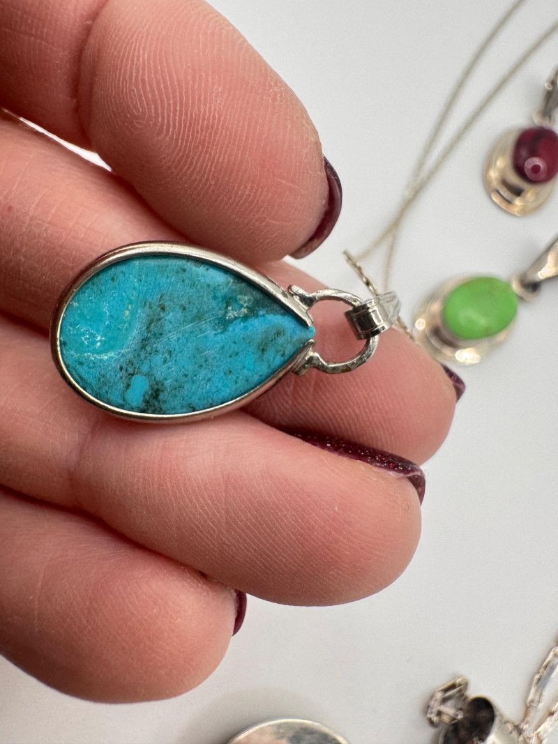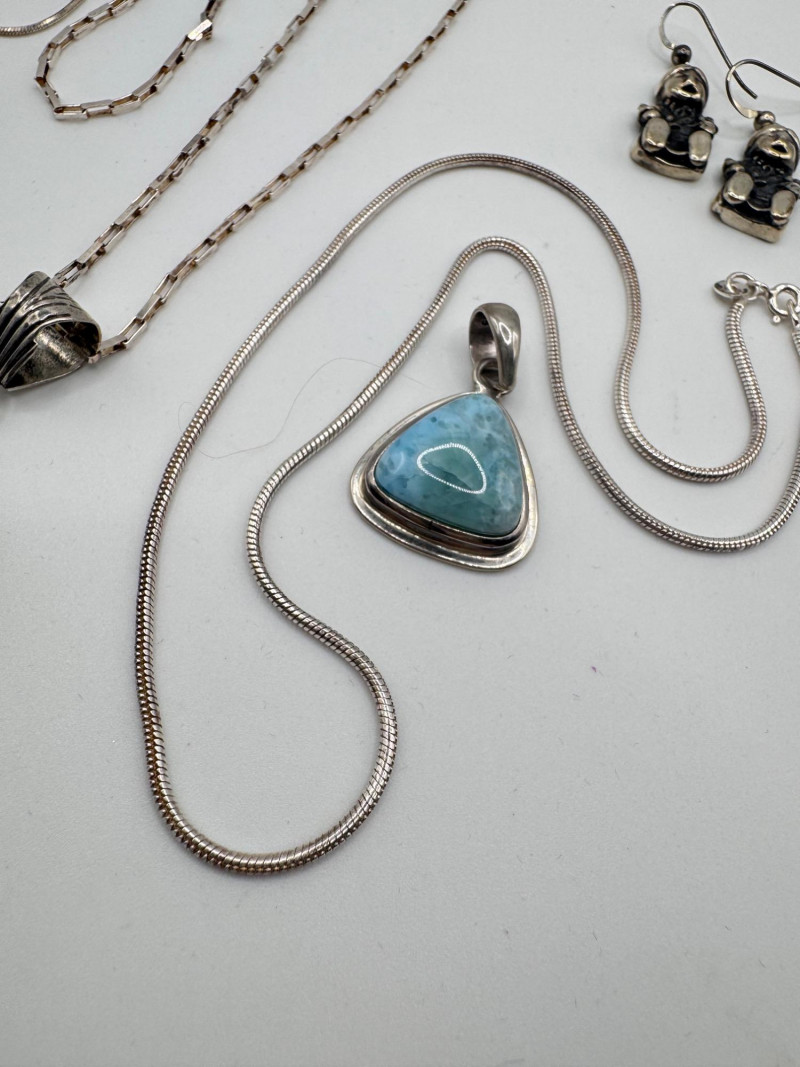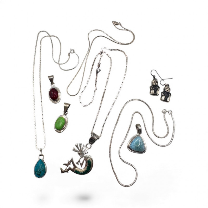 Sterling Silver Pendants & Chains w/ Polished Stone Cabochons - 54.08g.