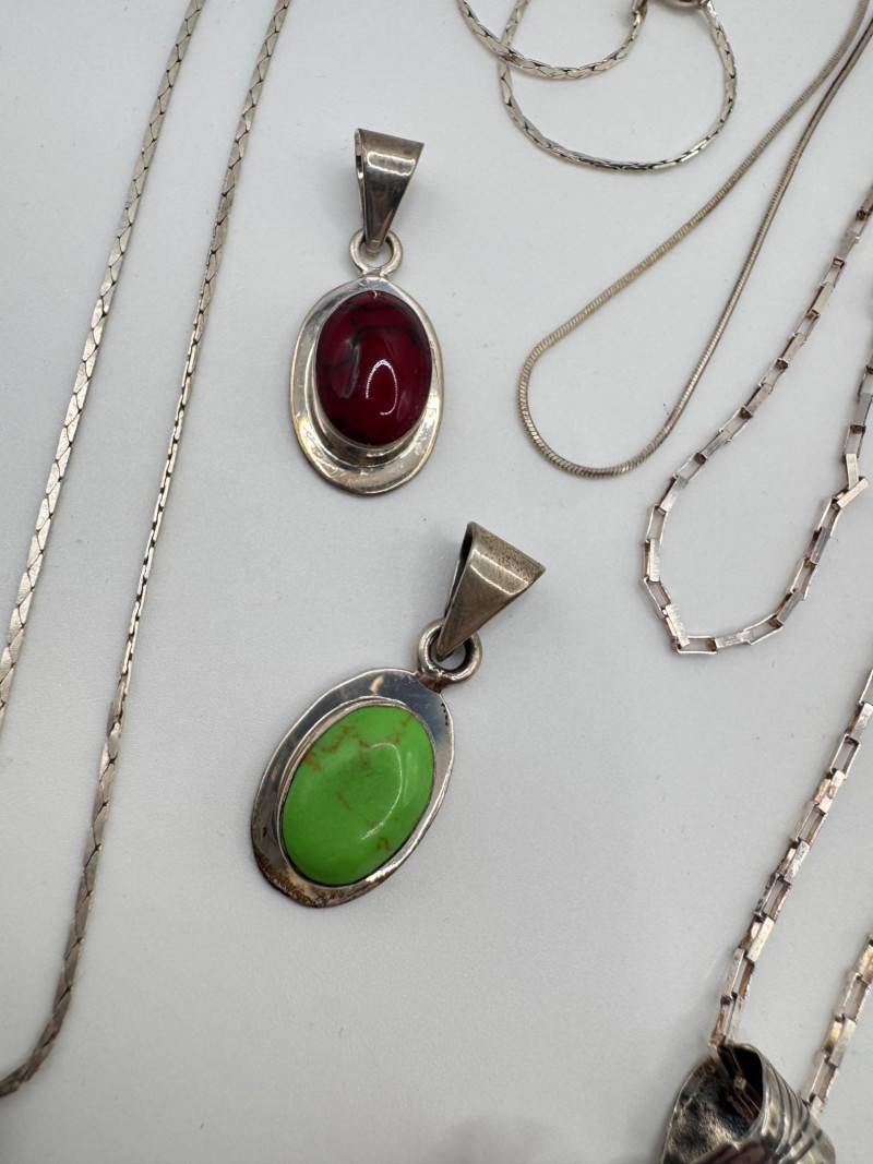 Lot # 29 - Sterling Silver Pendants & Chains w/ Polished Stone Cabochons - 54.08g
