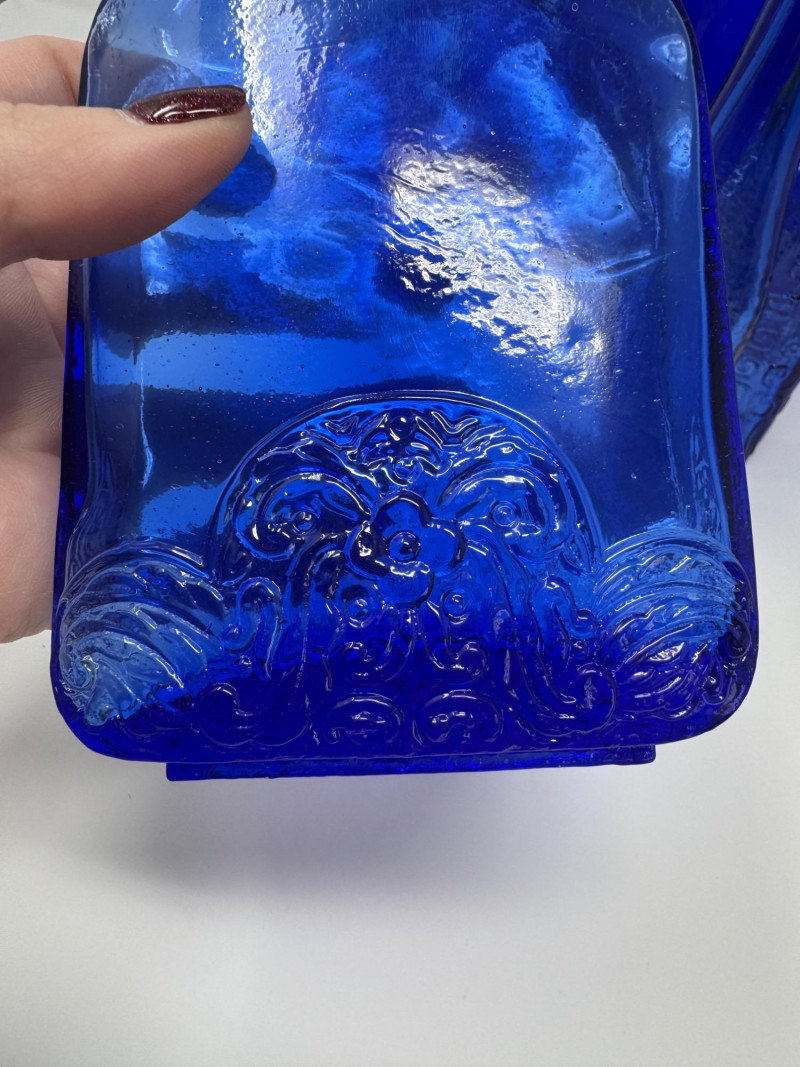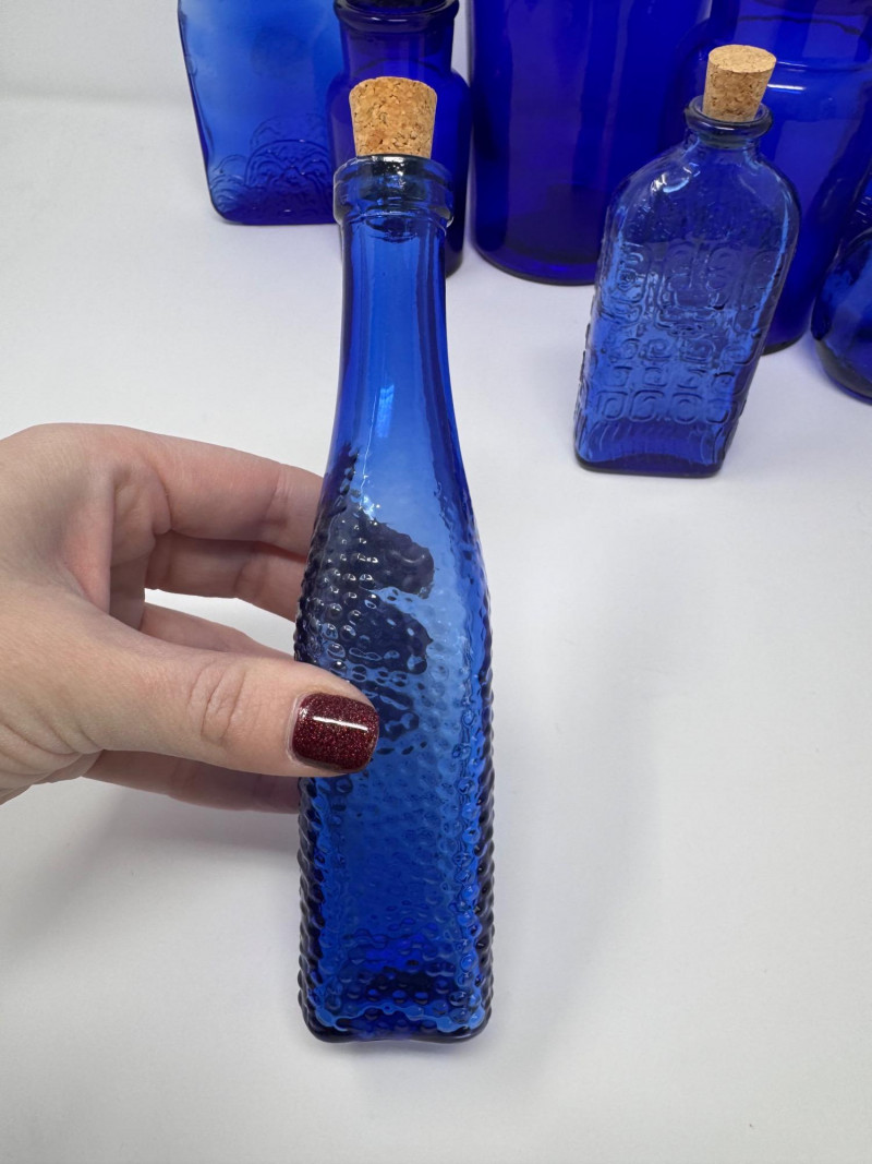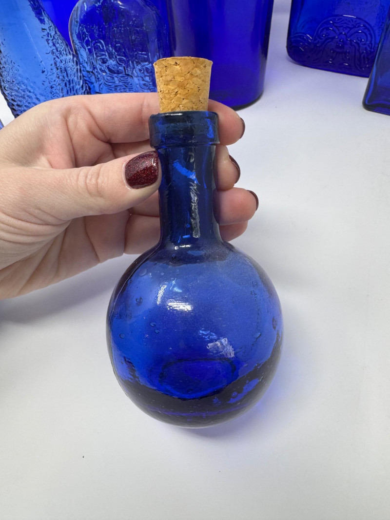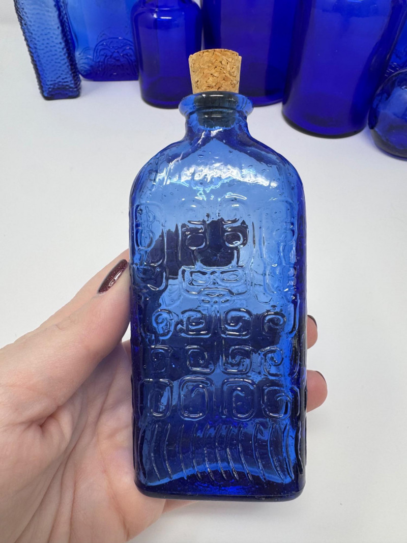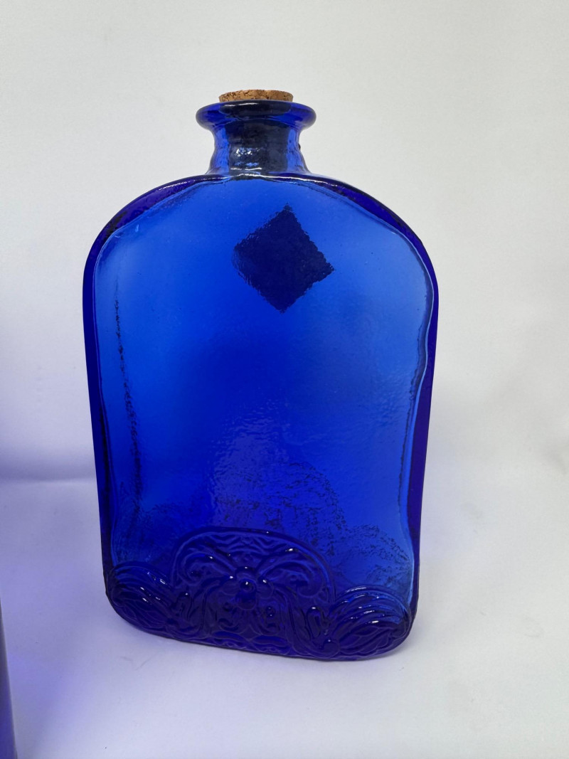 Vintage Cobalt Blue Glass Bottle & Canister Lot – 9 Pieces. Set of 9 vintage cobalt blue glass bottles & canisters