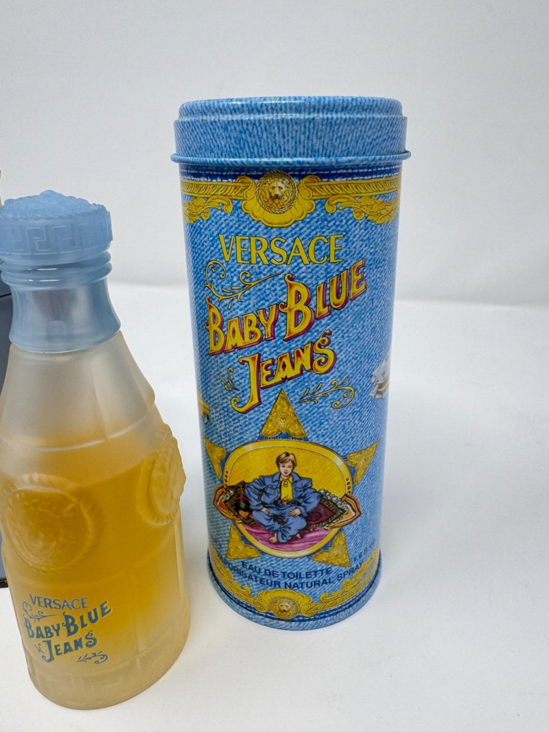 Lot # 41 - Vintage Penhaligon’s Bluebell Talc (NEW) + Versace Baby Blue Jeans EDT