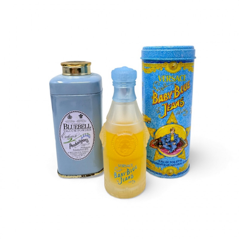 Vintage Penhaligon’s Bluebell Talc (NEW) + Versace Baby Blue Jeans EDT.