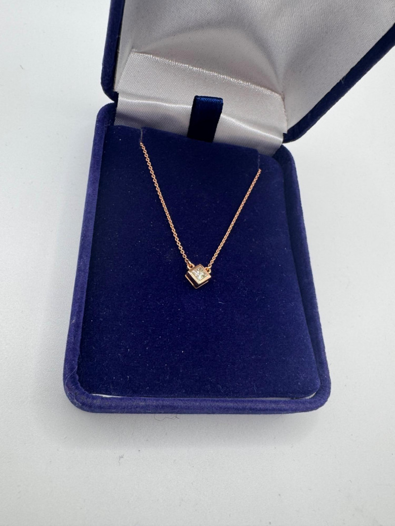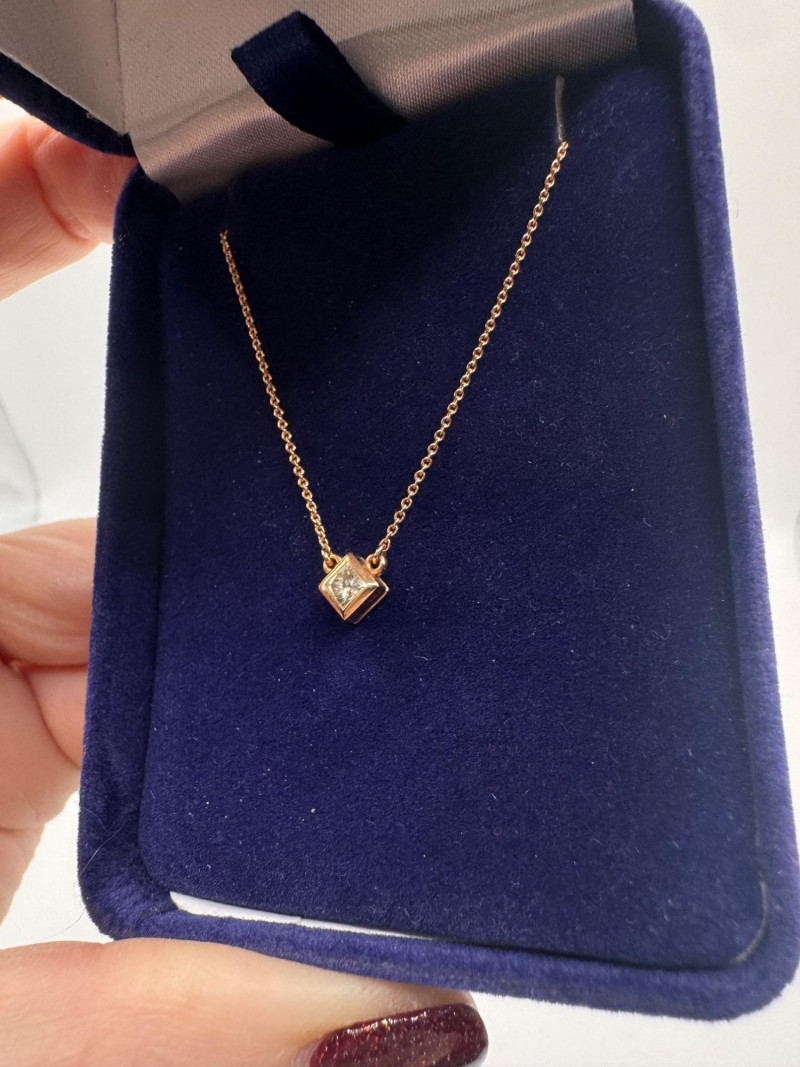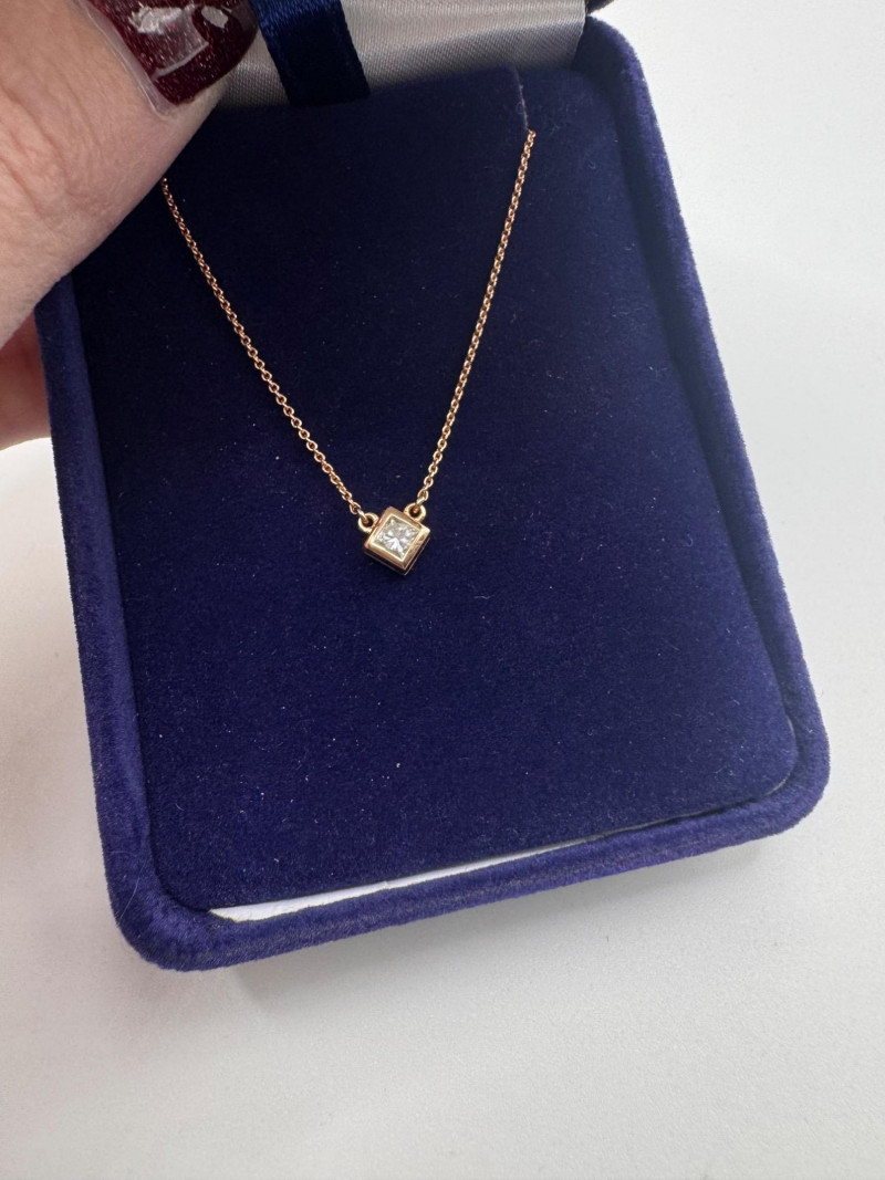 Lot # 43 - 14K Rose Gold Fabri Princess-Cut Diamond Pendant Necklace