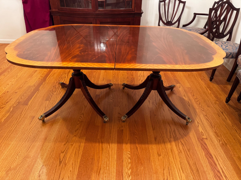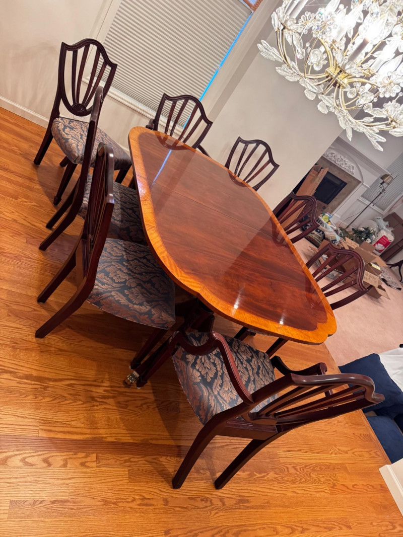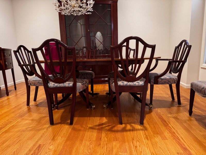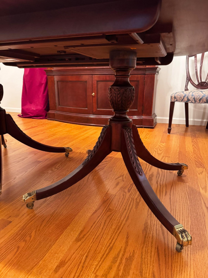 Baker Furniture Historic Charleston Dining Table Set – Est. $7,000+ Bidding on this lot is an agreement that: (1.) You will have at least 2 capable, able bodied persons to lift and load at a minimum. (2.) You will bring a hand truck and/or any other tools needed to remove this item. If these steps are not followed your item will be forfeit and no refund given.