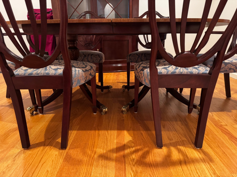 Comparable Sales: Similar Baker Historic Charleston dining tables sell $5,800+ (Link) ; chair sets valued around $1,200 (Link).