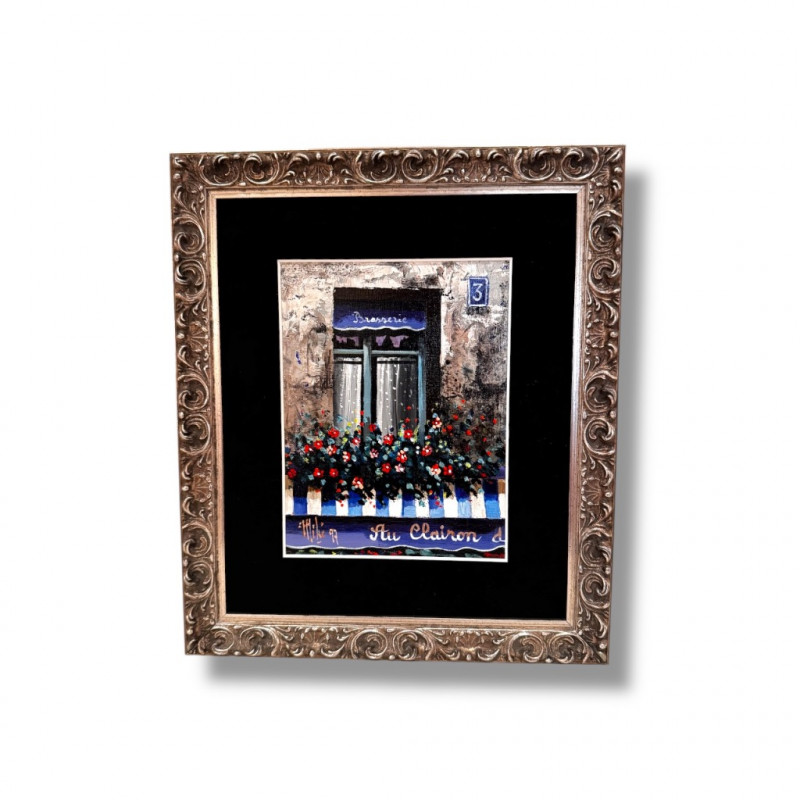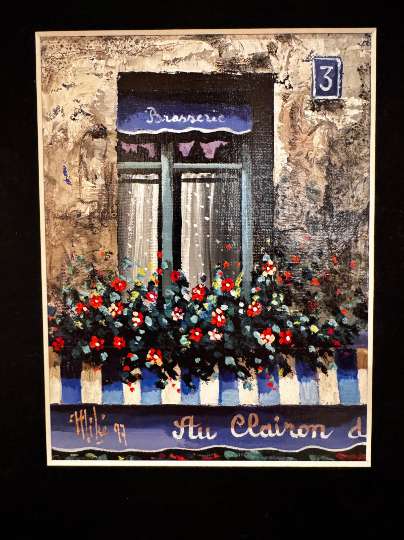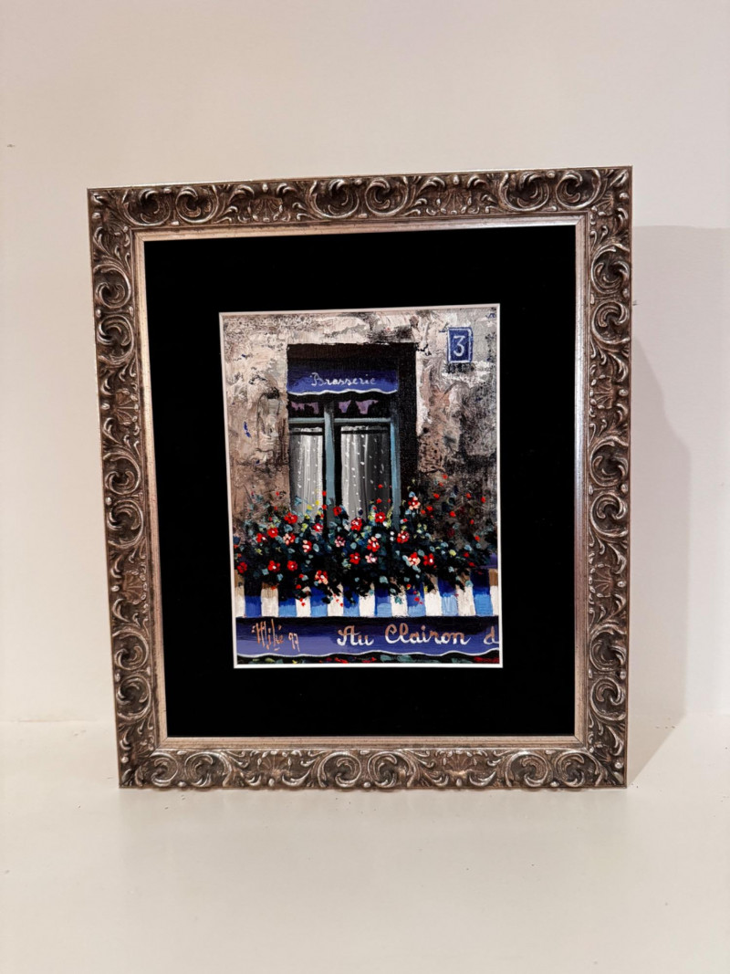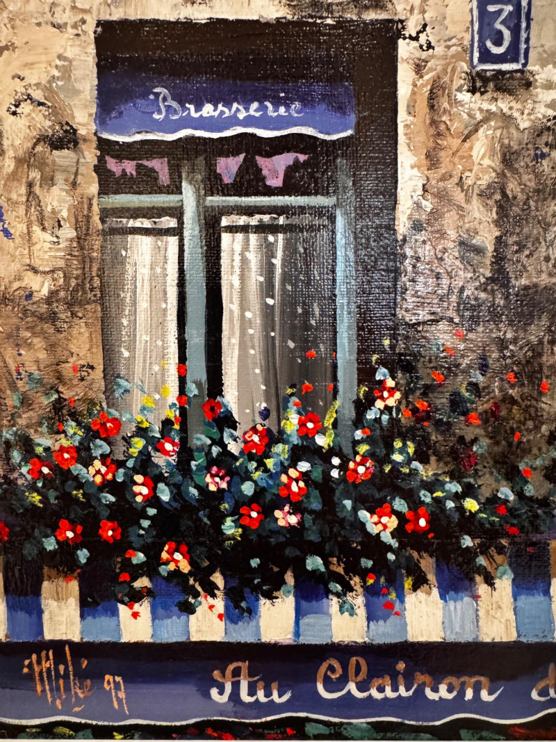 Framed Window & Flower Box Painting – Signed Mike ’97.