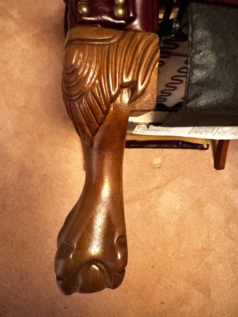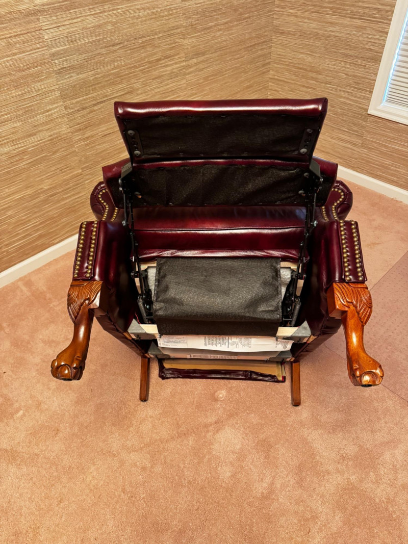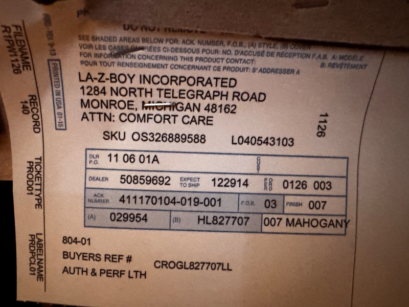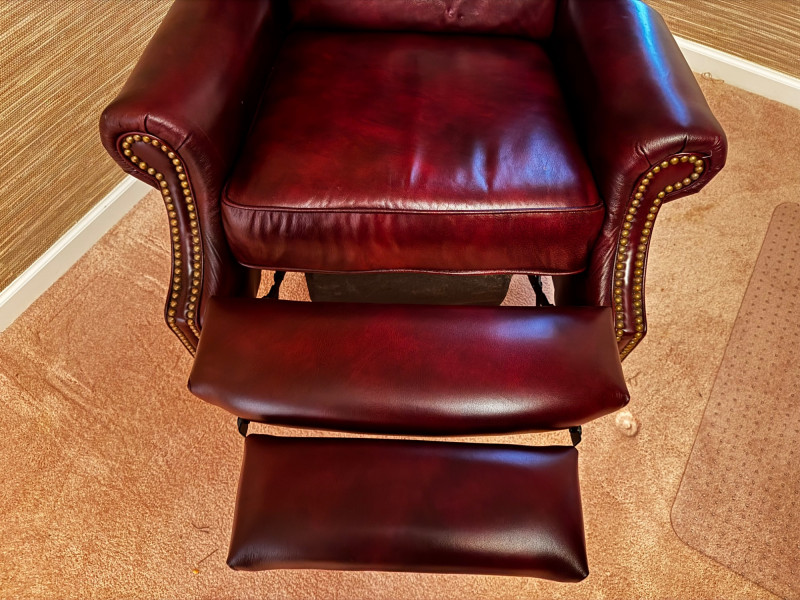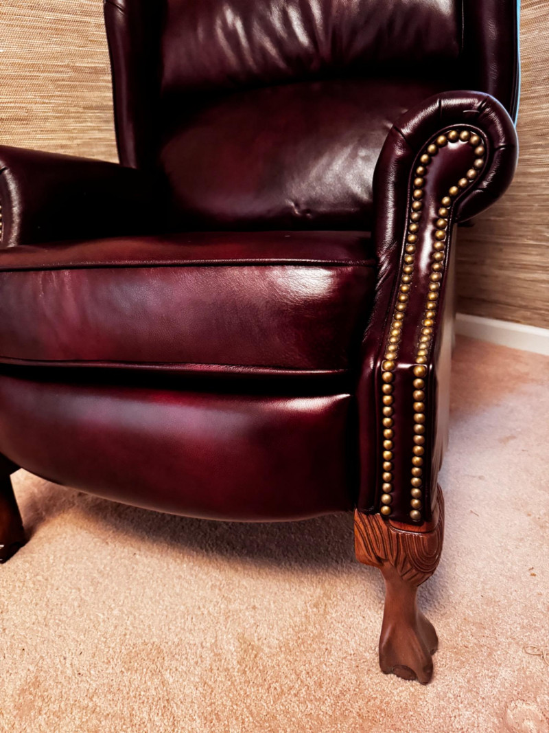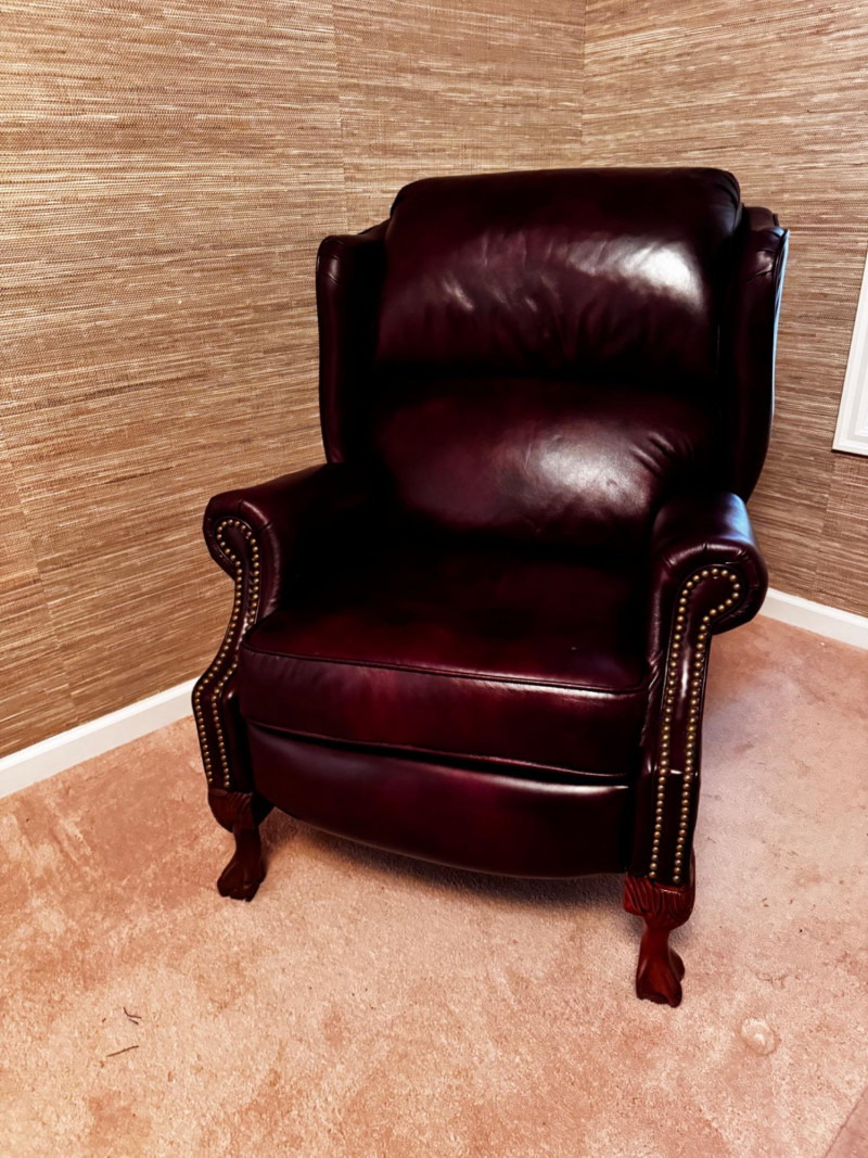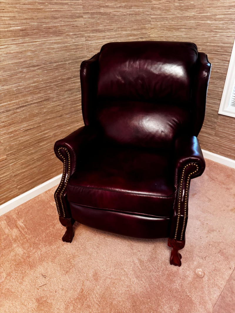 La-Z-Boy Mahogany Leather Wingback Recliner Bidding on this lot is an agreement that: (1.) You will have at least 2 capable, able bodied persons to lift and load at a minimum. (2.) You will bring a hand truck and/or any other tools needed to remove this item. If these steps are not followed your item will be forfeit and no refund given.