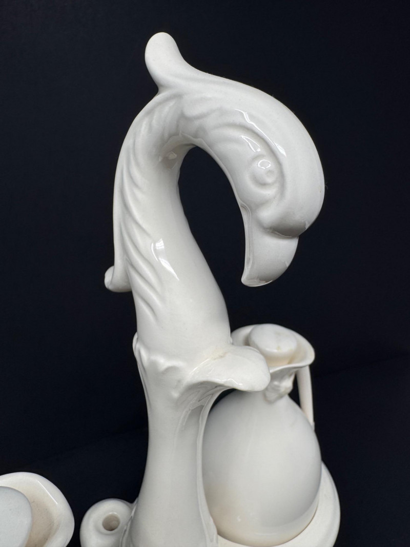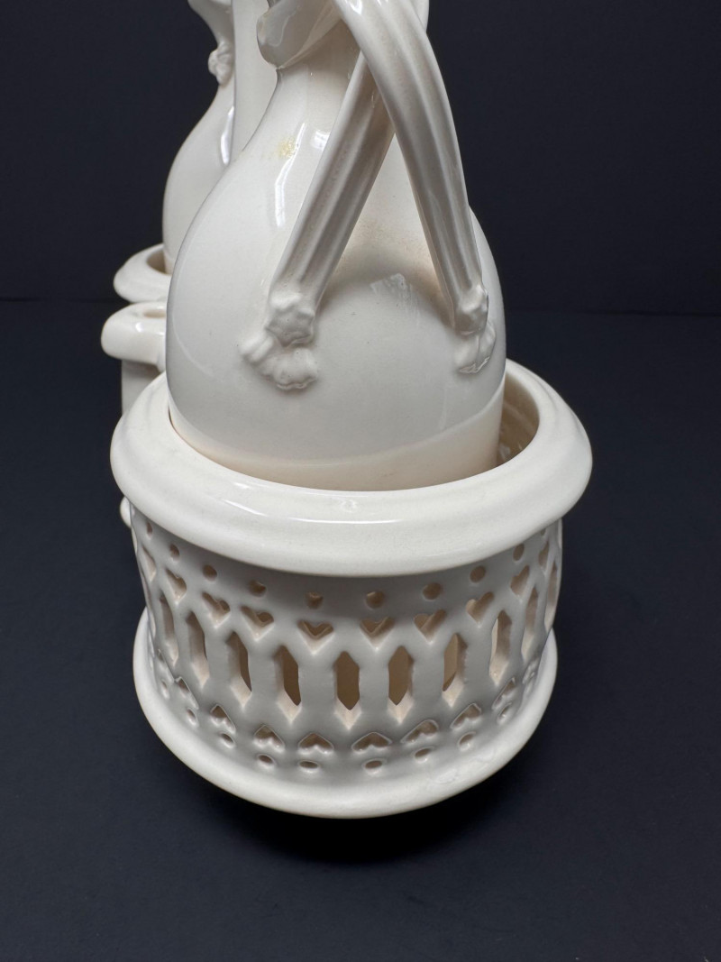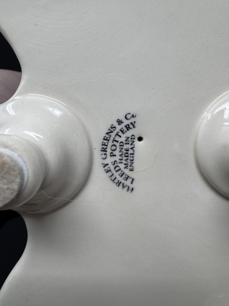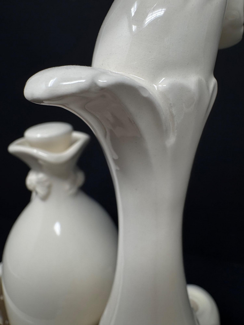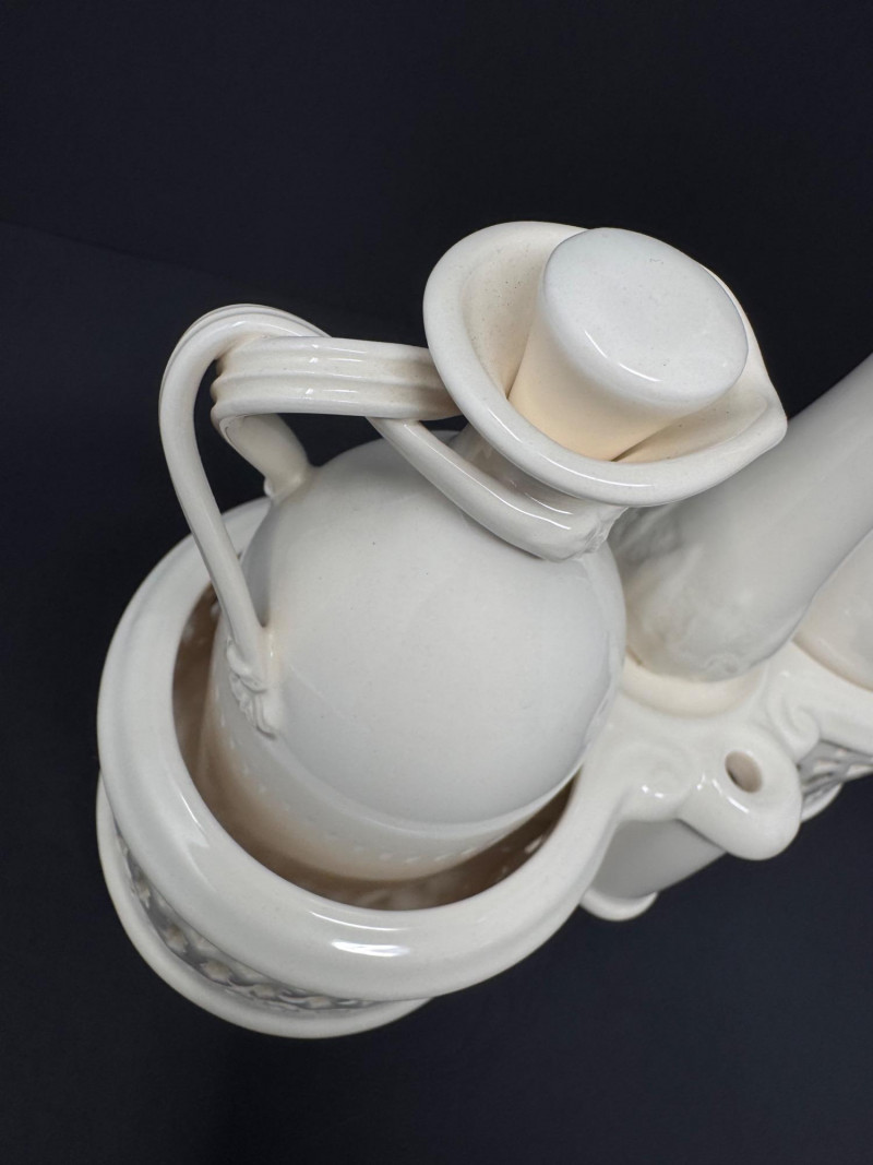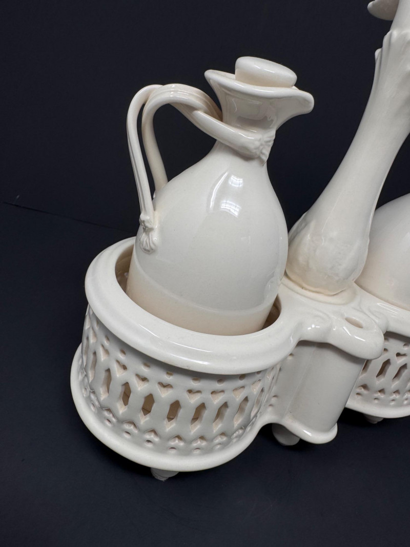 Vintage Leeds Pottery Creamware Oil & Vinegar Set w/ Stand – 3 Pieces,