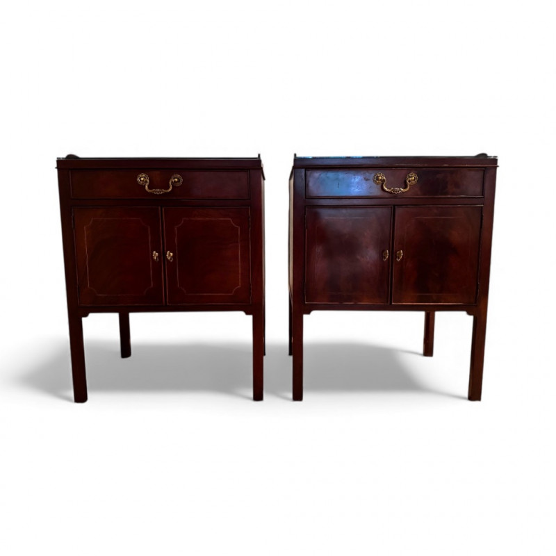 Lot # 62 - Baker Furniture Georgian-Style Nightstands w/ Glass Tops