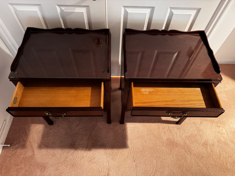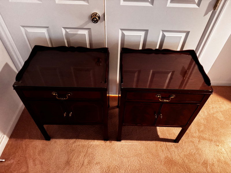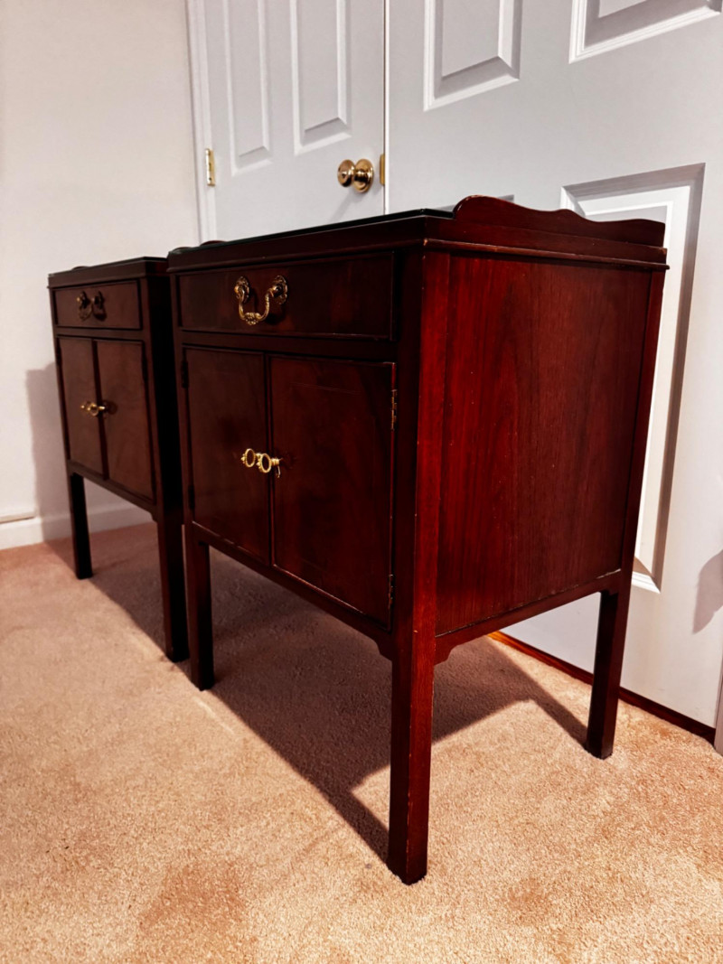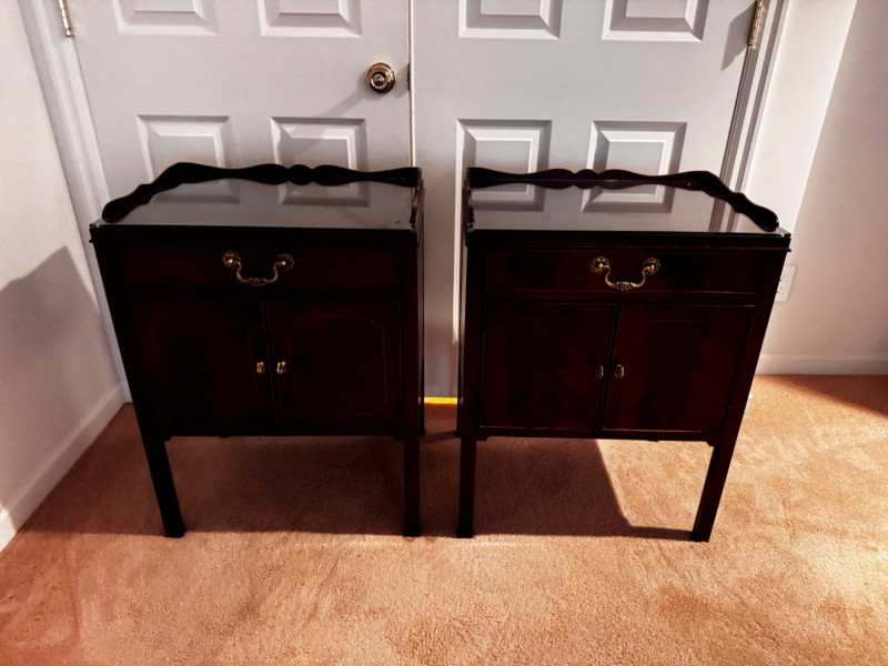 Baker Furniture Georgian-Style Nightstands w/ Glass Tops - Est. $500. 32” W x 22” D x 37” H