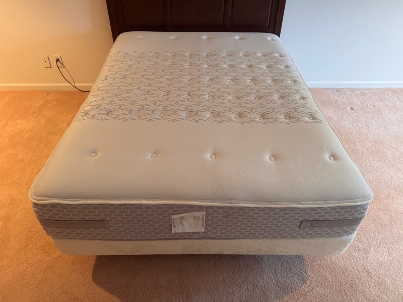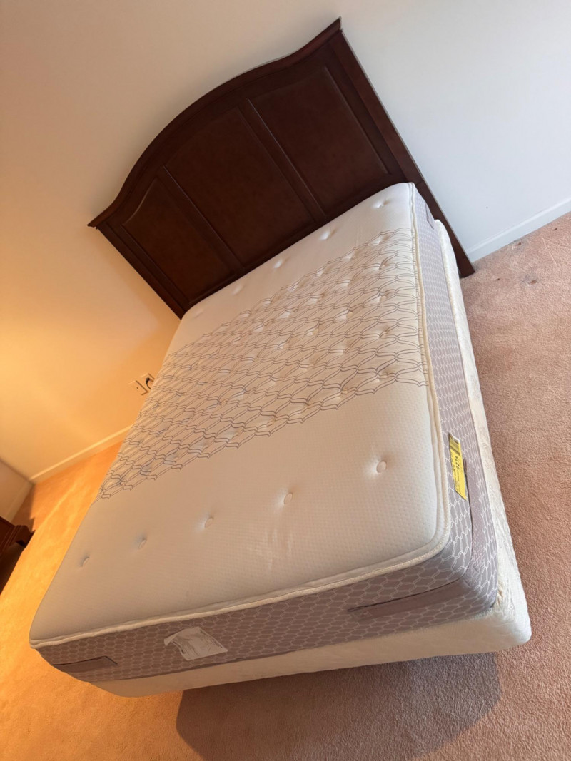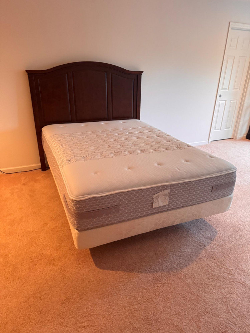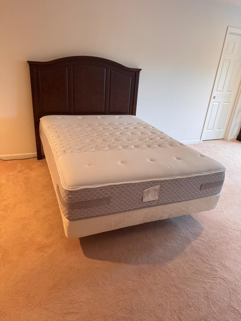 Baker Furniture Headboard + Sealy Mattress + Electric Frame Set. Baker Furniture Queen Headboard Dimensions: 63” W x 3.5” D x 58” H Sealy Queen Mattress Dimensions: 58.5” W x 80.5” L Leggett & Platt Electric Adjustable Frame w/ Attached Box Spring Dimensions: 58.5” W x 80.5” L Includes OKIN motor system by Phoenix Mecano Bidding on this lot is an agreement that: (1.) You will have at least 2 capable, able bodied persons to lift and load at a minimum. (2.) You will bring a hand truck and/or any other tools needed to remove this item. If these steps are not followed your item will be forfeit and no refund given.