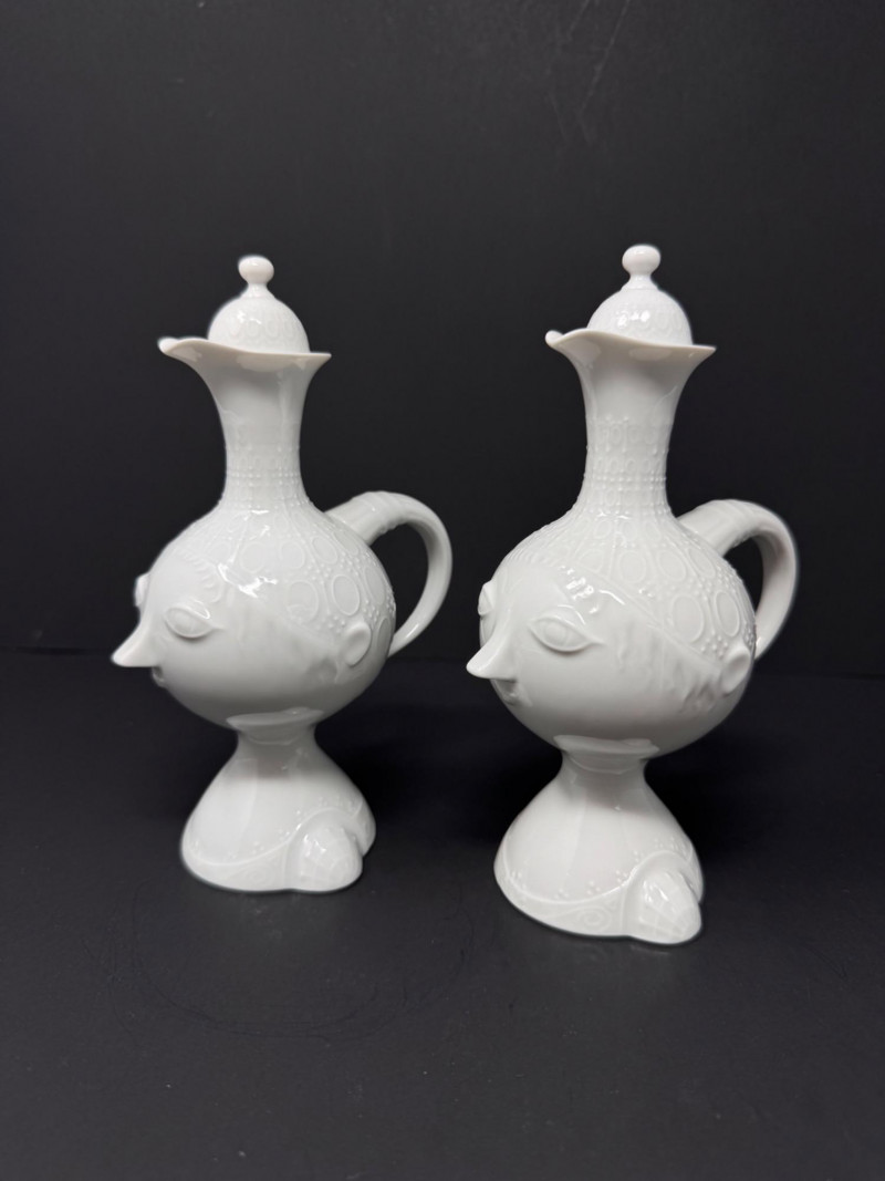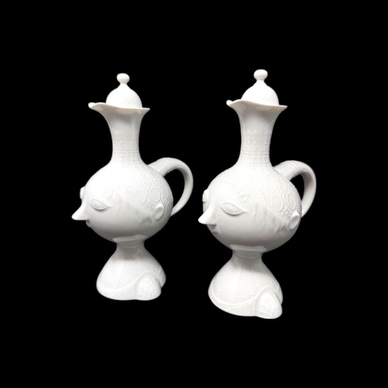 Pair Rosenthal “Romance” Head Jugs White Ceramic.