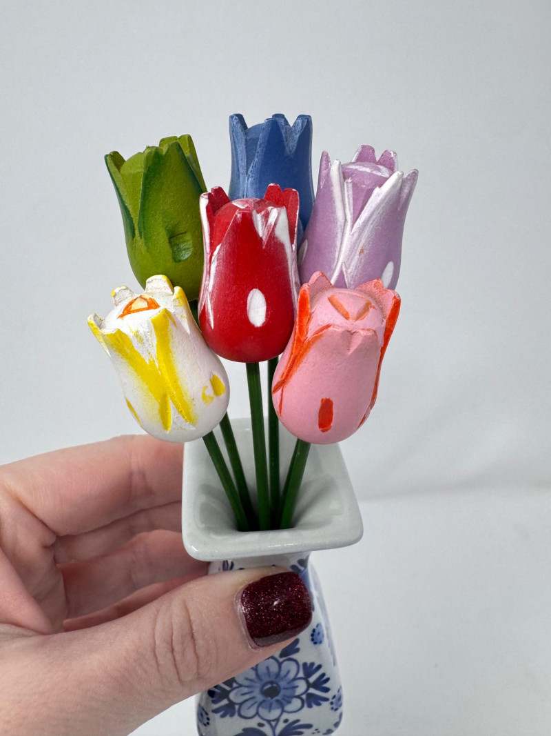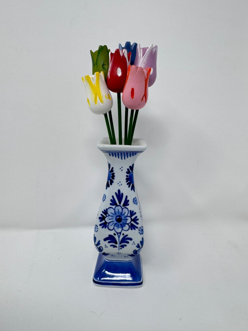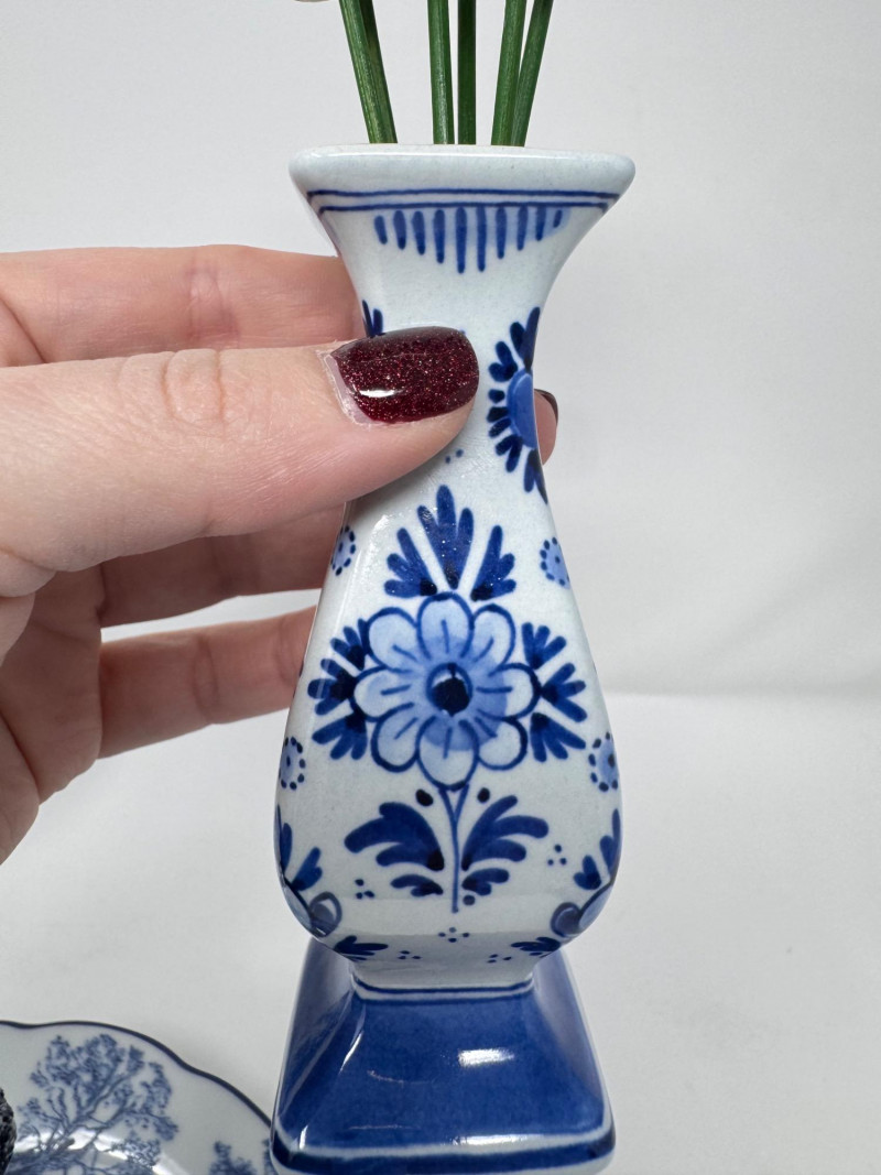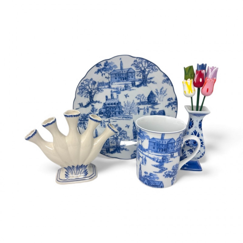 Royal Delft Bud Vase, Andrea by Sadek Blue Multi-Stem Vase, & More. Approx. 4.5" tall (about 7.5" with wooden tulips) Ceramic multi-stem vase marked Andrea by Sadek – Blue in Bloom Approx. 5.5" wide and 5" tall Marked Colonial Williamsburg – Williamsburg Townscape Toile Marked Colonial Williamsburg – Townscape ToileRoyal Delft Bud Vase (Koninklijke Porceleyne Fles)