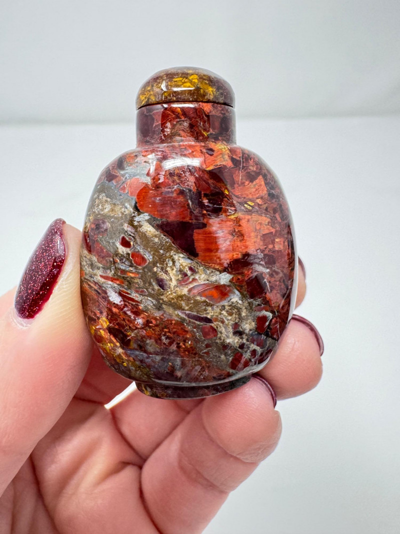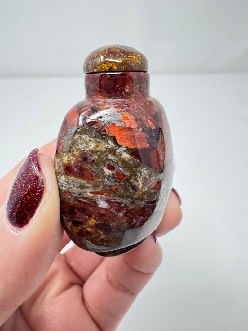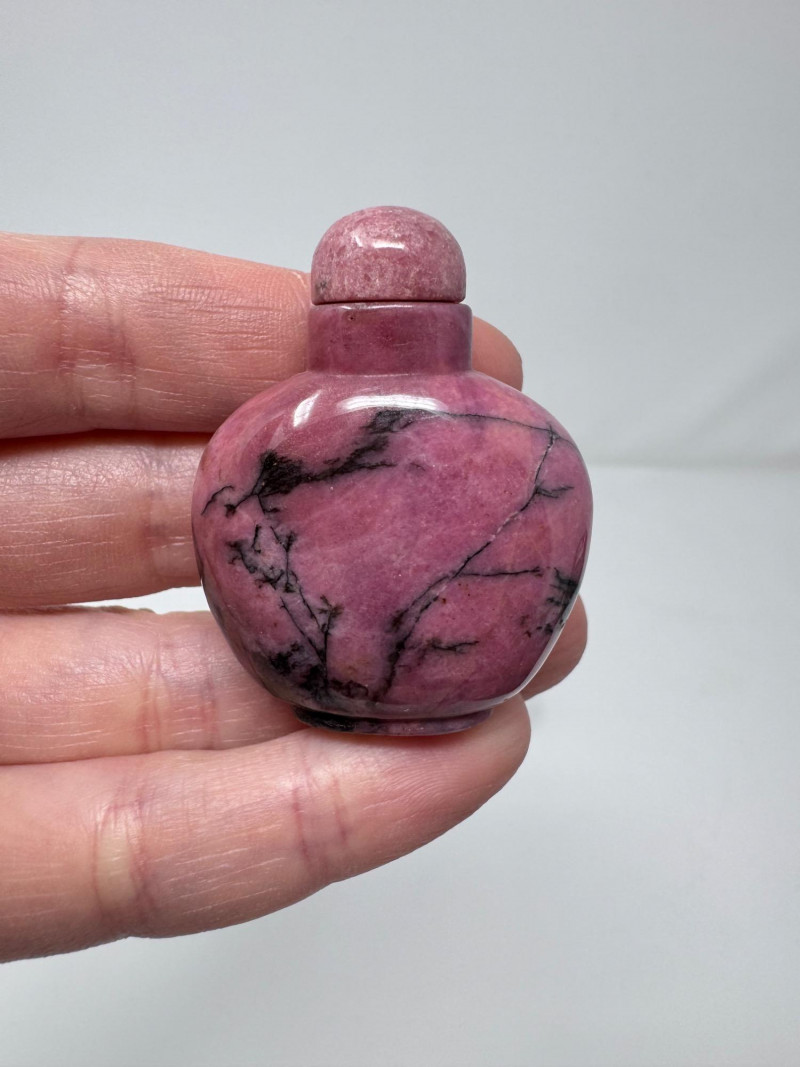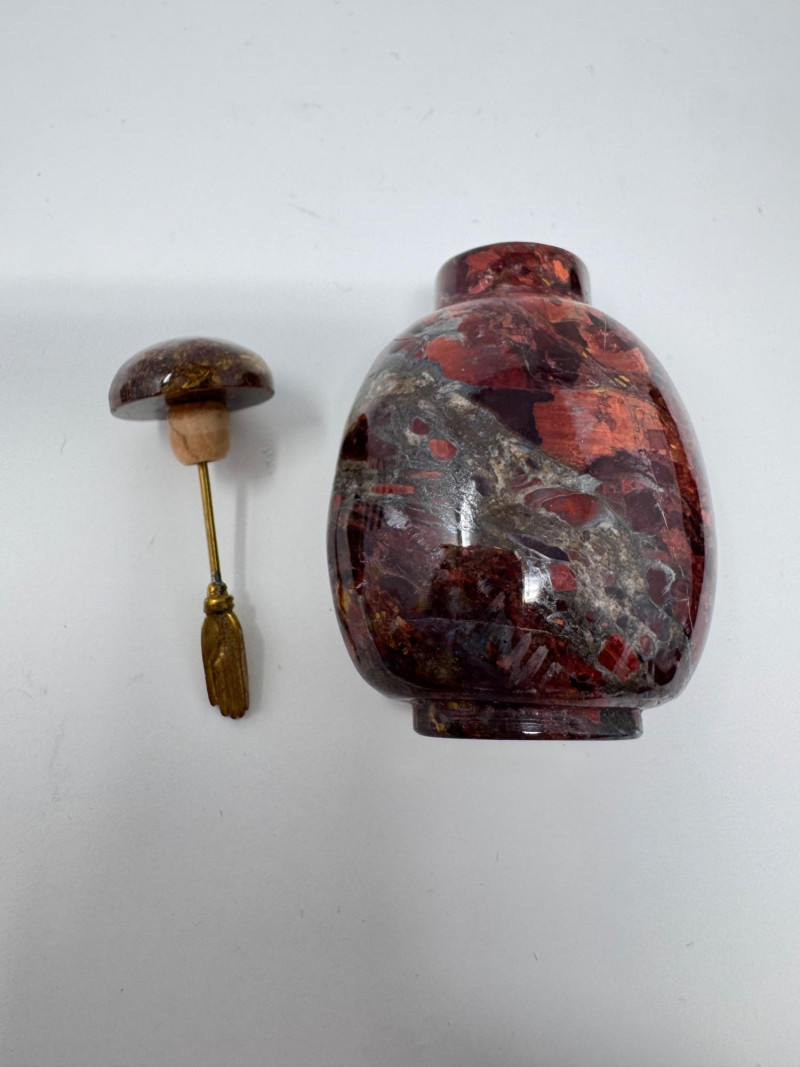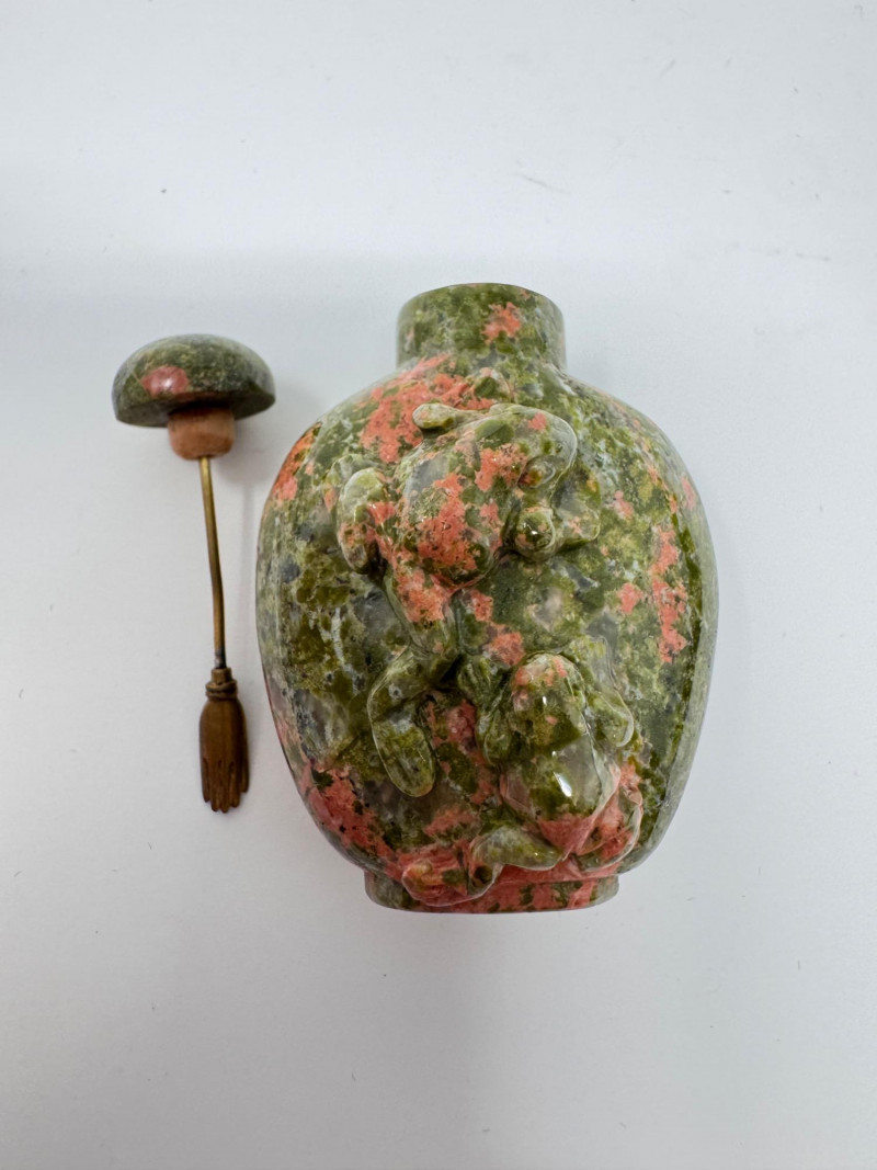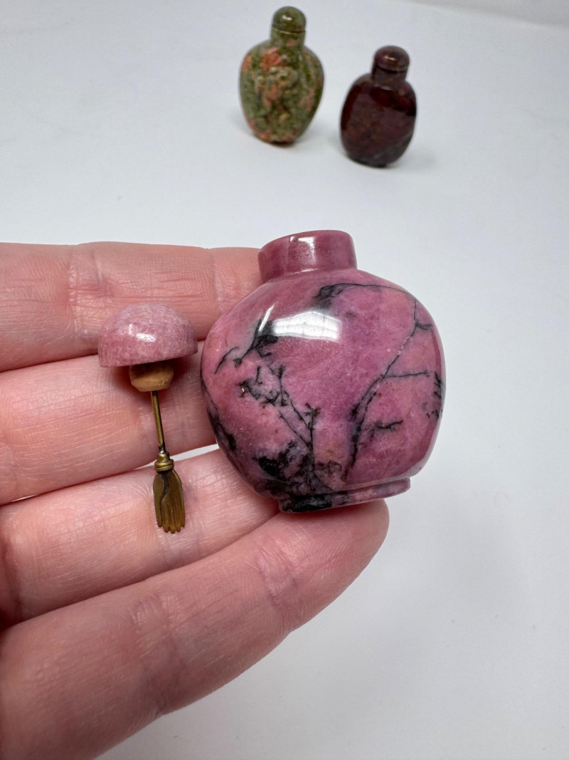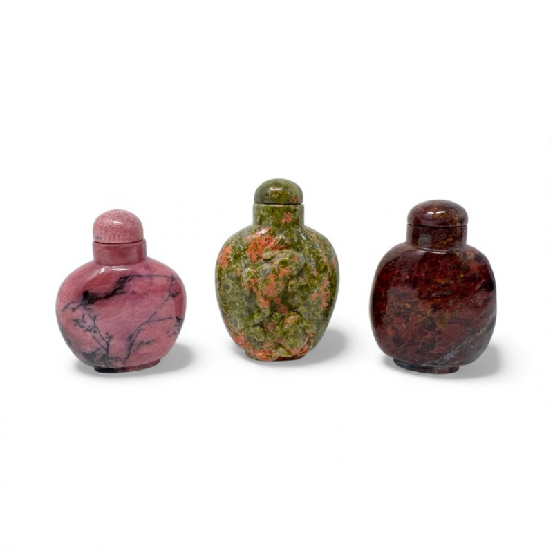 Set of 3 Carved Stone Snuff Bottles w/ Dippers.