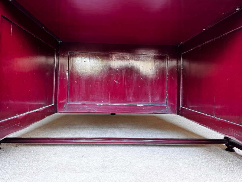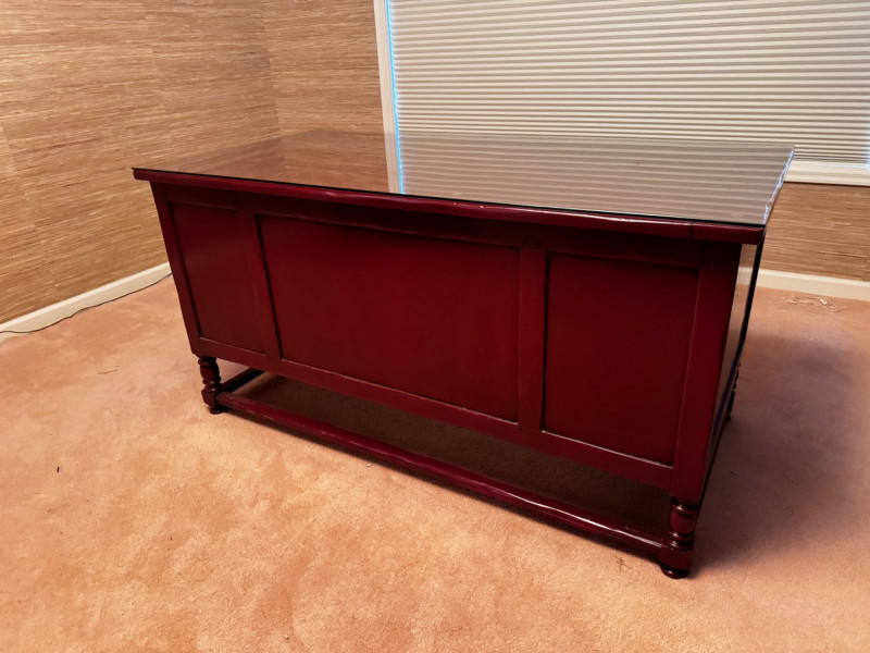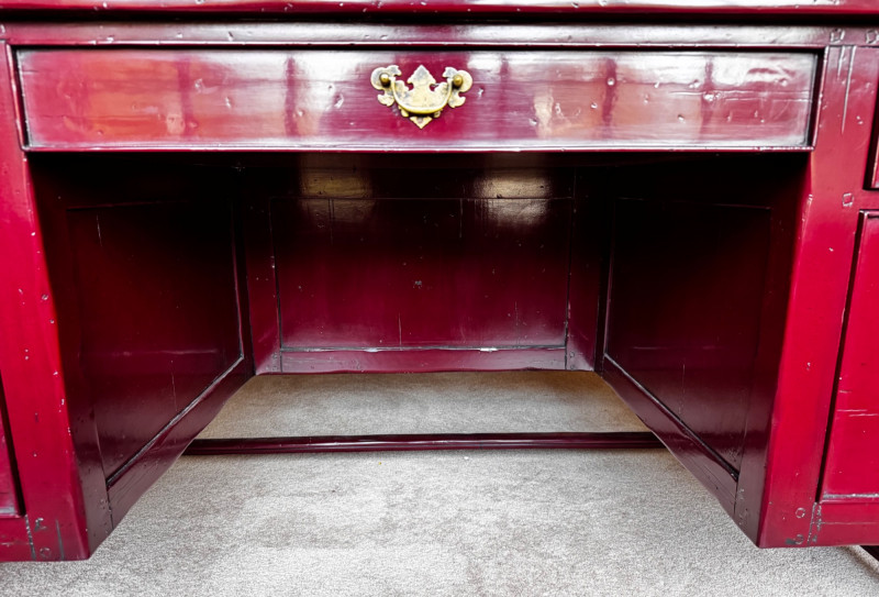 Lot # 83 - Deep Red Lacquered Wood Office Desk w/ Brass Pulls
