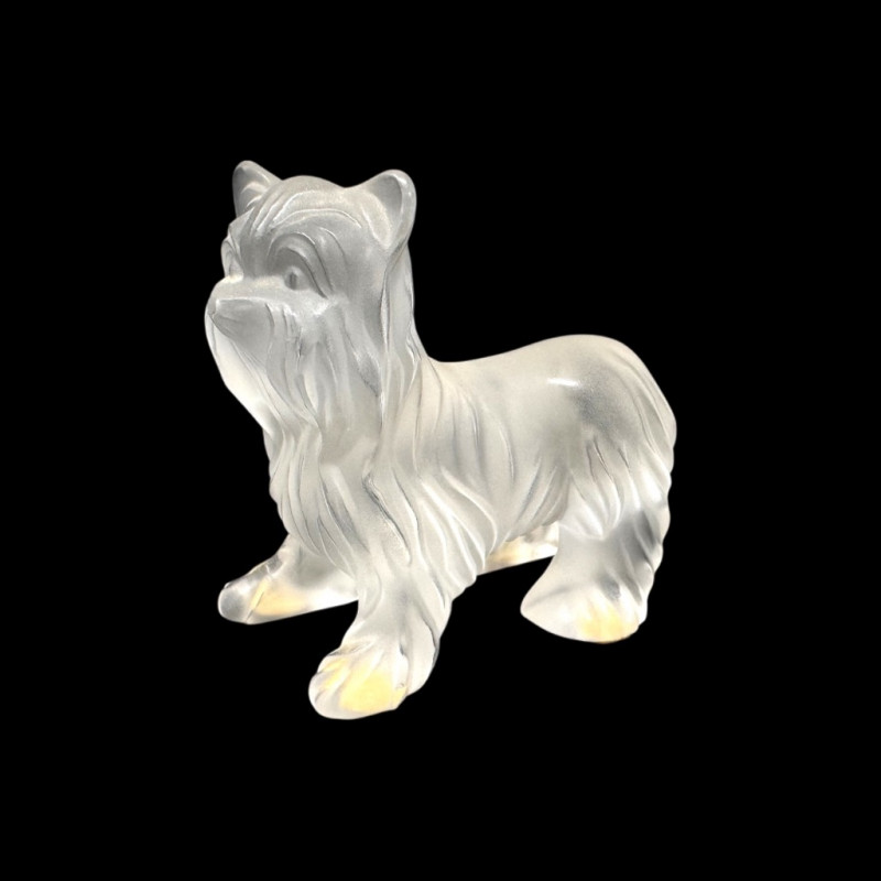 Lalique Frosted Crystal Yorkshire Terrier Figurine, Signed.