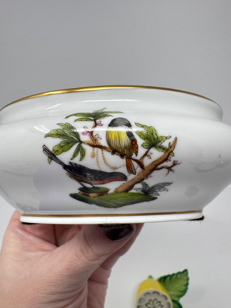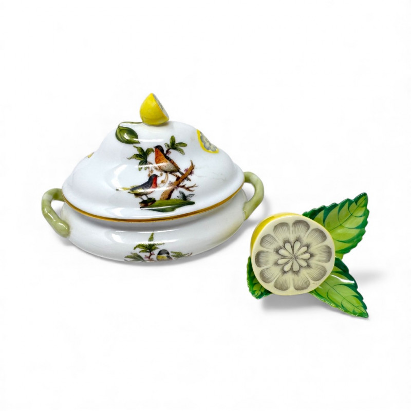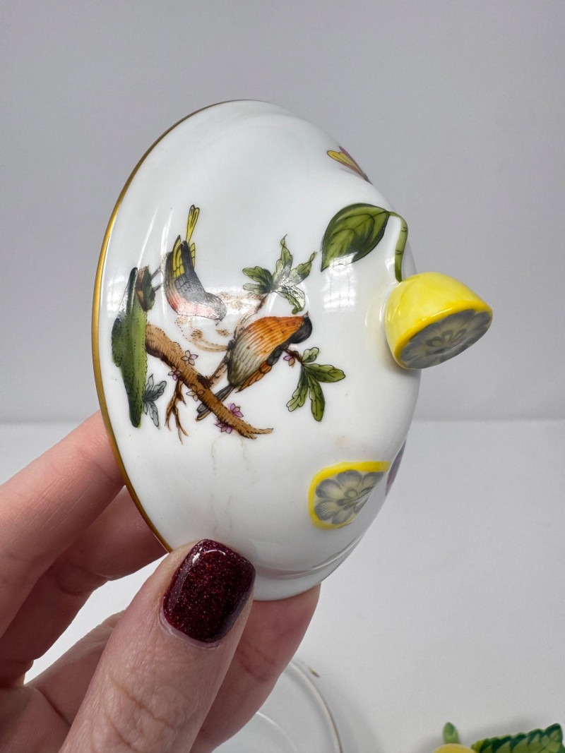 Herend Hungary Hand-Painted Rothschild Bird Tureen & Lemon Figurine. Herend Hungary Miniature Tureen – Rothschild Bird Pattern