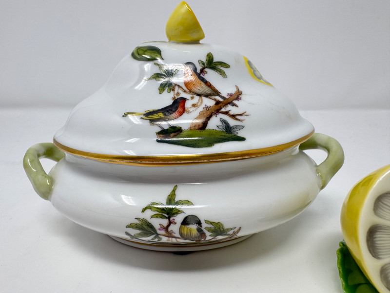 Lot # 91 - Herend Hungary Hand-Painted Rothschild Bird Tureen & Lemon Figurine