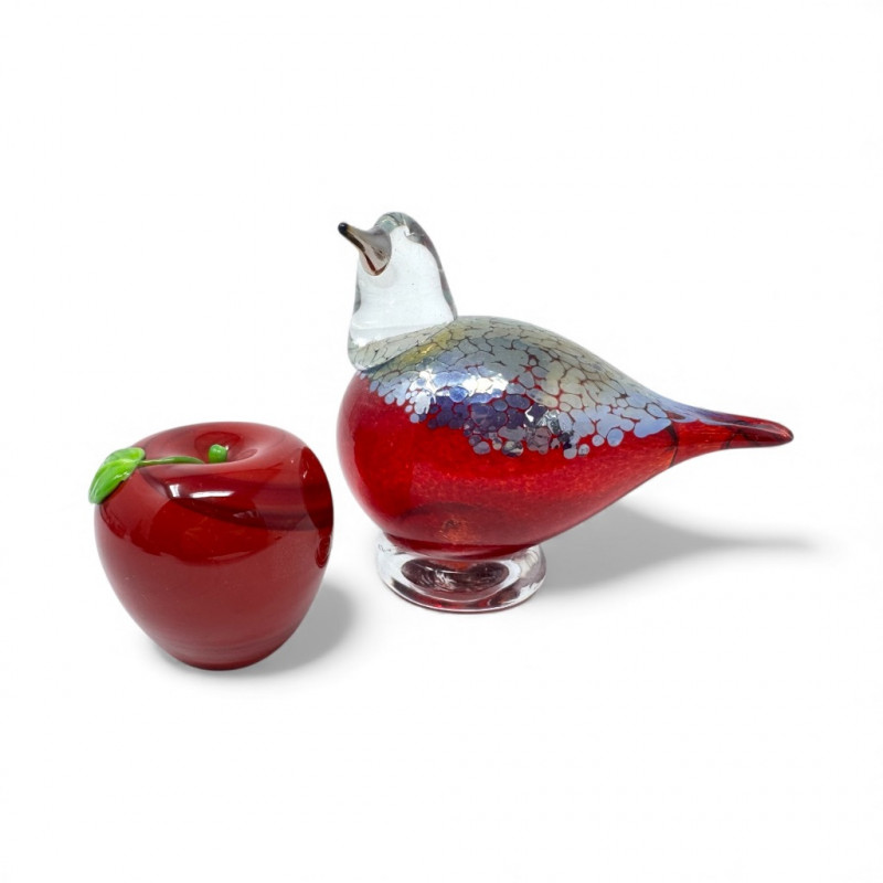 Lot # 94 - Bianco Blu Finland Glass Bird & Grant Randolph Signed Apple