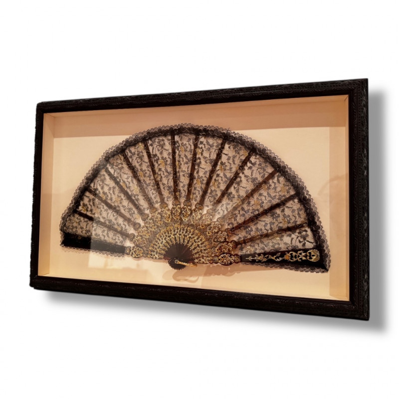Framed Lace & Gilt Filigree Decorative Hand Fan Wall Art.